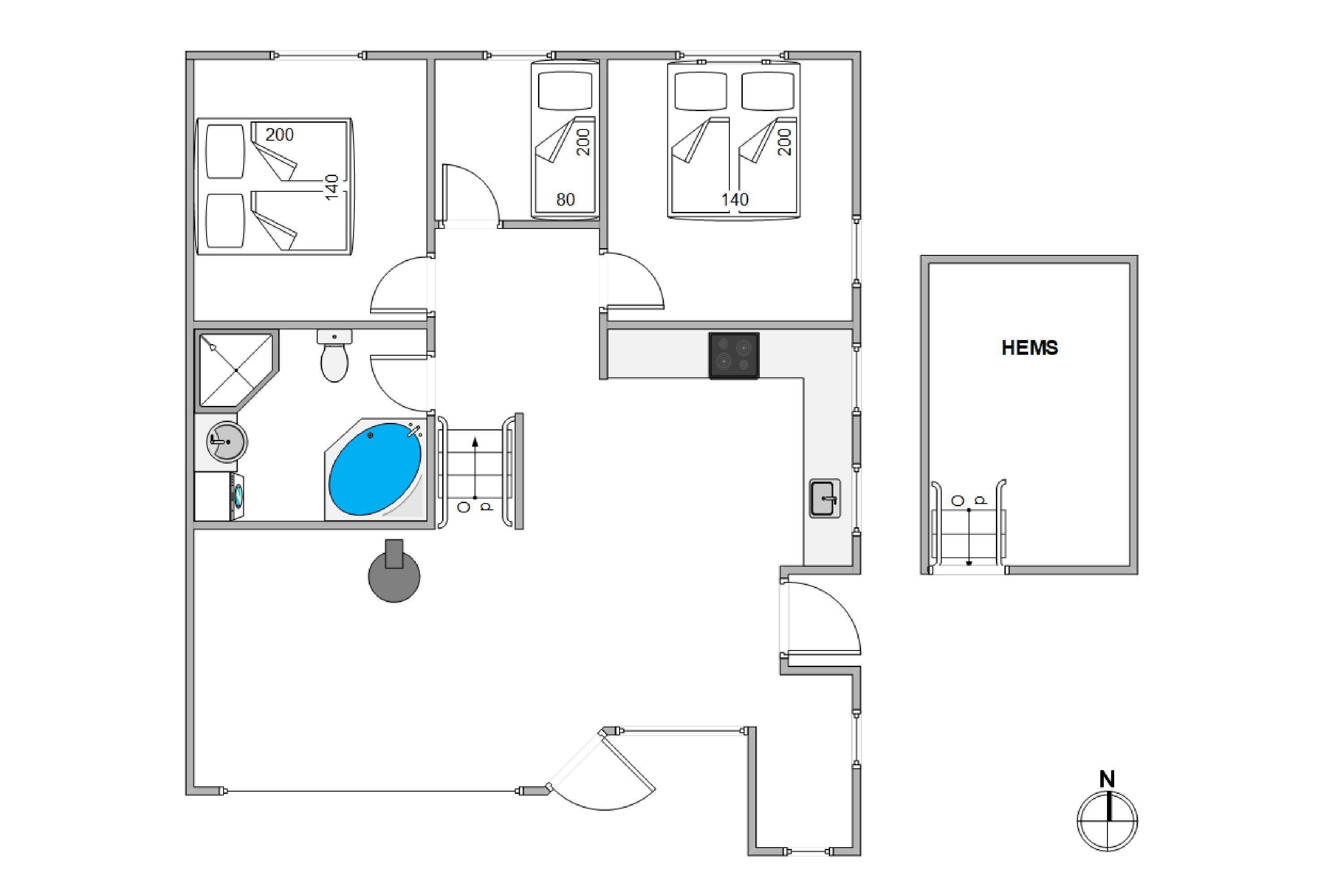 This charming holiday home on Anker Eskildsens Vej 5E in Nr. Lyngvig offers cosy furnishings that will quickly make you feel at home. The holiday home features an open-plan living room with adjoining kitchen and dining area. It also includes three bedrooms and a bathroom with underfloor heating. The bathroom features a two-person whirlpool - perfect for enjoying quality time together after a long beach walk or visiting the small harbour, which is just a few minutes' walk from your holiday home on the Ringkøbing Fjord.