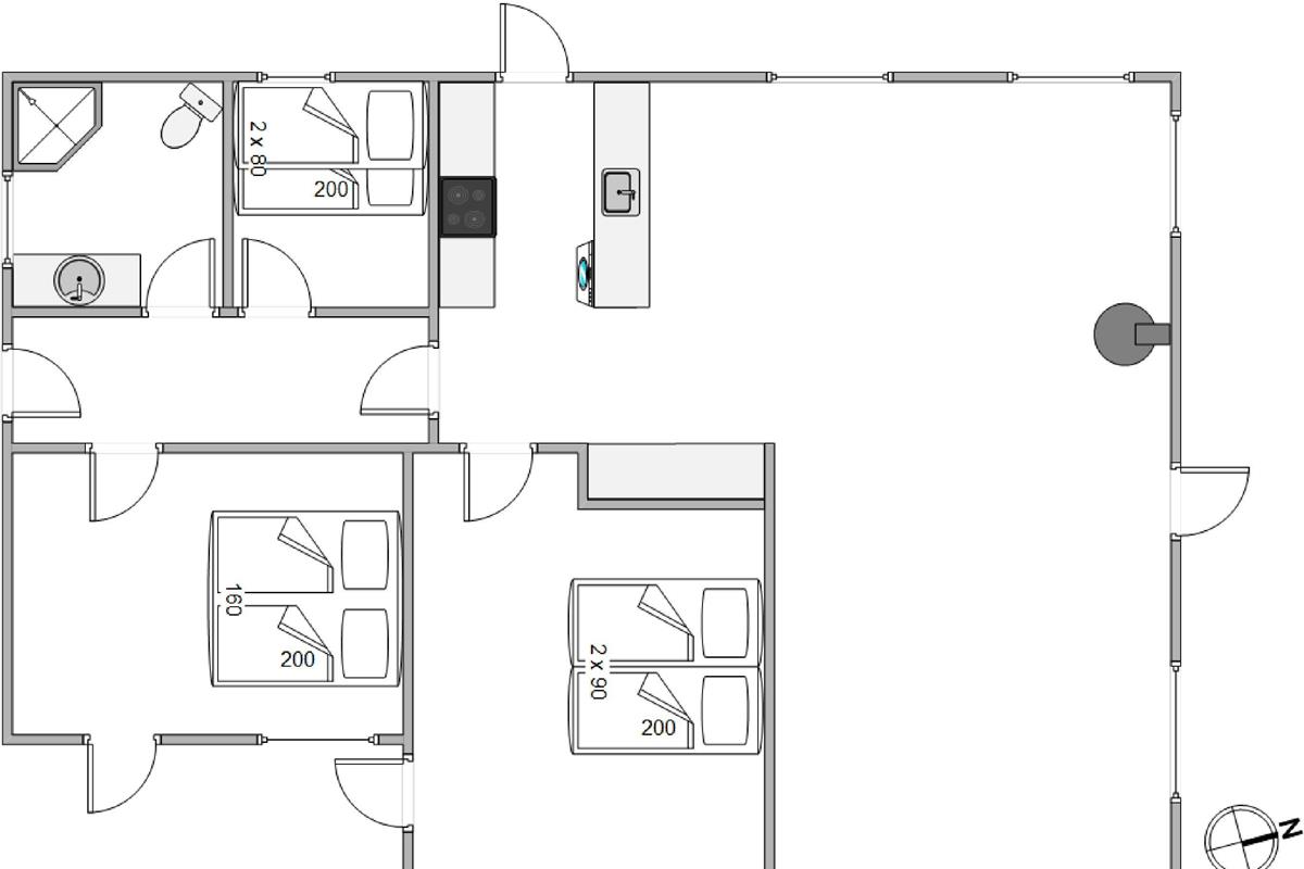 2 großzügige Schlafzimmer bieten neben komfortablen Betten auch direkten Zugang in den Garten. Eines der Schlafzimmer verfügt über einen weiteren Fernseher. Ein weiteres Schlafzimmer ist mit einem Etagenbett ausgestattet, in dem sich eure kleinen Abenteurer besonders wohlfühlen werden. Das Badezimmer ist praktisch eingerichtet und verfügt über eine Fußbodenheizung.