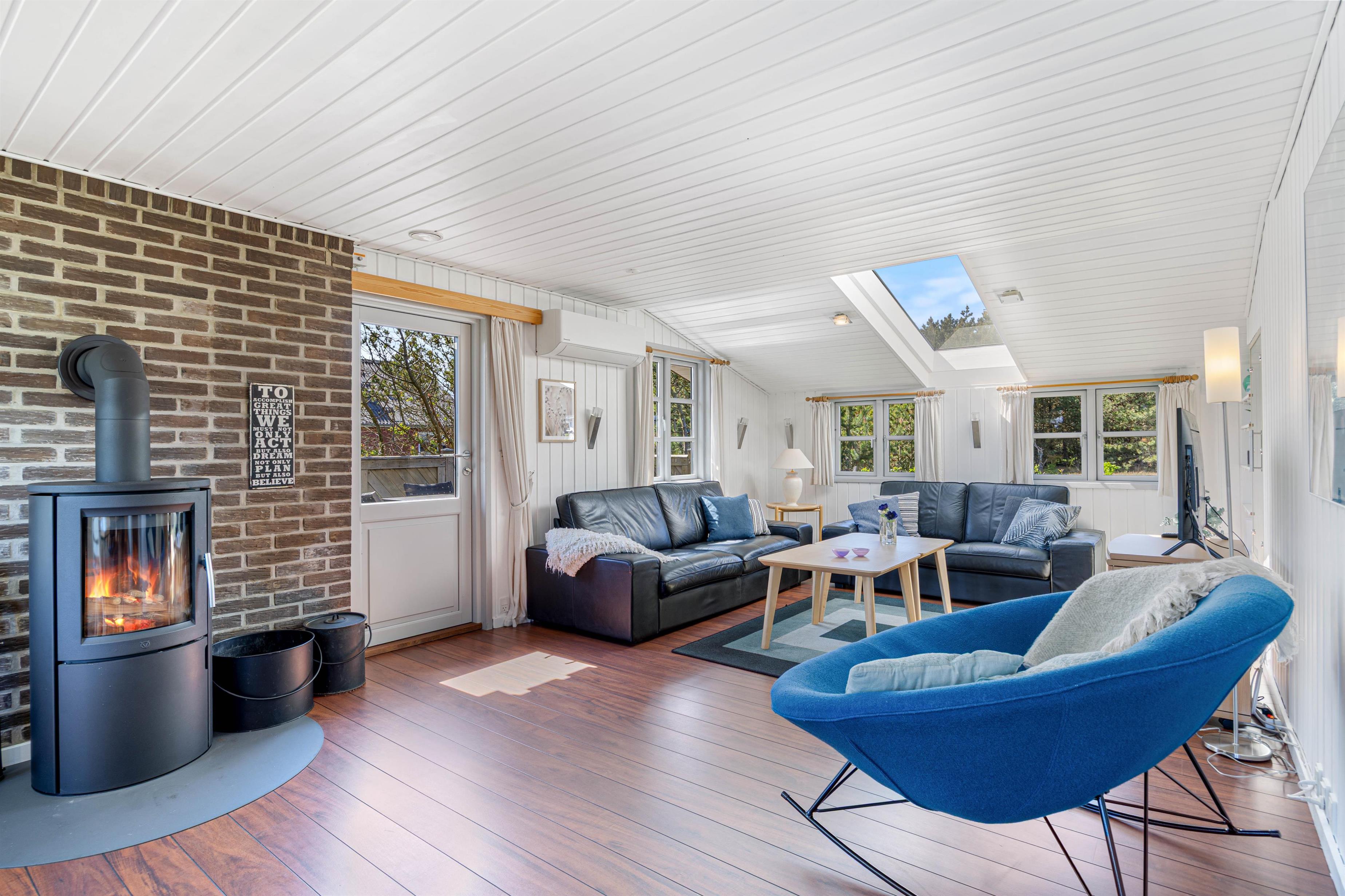 In Fyrmarken 74 in Nr. Lyngvig wartet ein gemütliches Ferienhaus darauf, dir und deiner Familie einen erholsamen Urlaub zu bieten. Mit 91 m2 Wohnfläche bietet es genug Raum für bis zu 6 Menschen, die in 3 behaglichen Schlafzimmern träumen können. Mit einer modernen Wärmepumpe, einem wohligen Kaminofen, einem separaten 80-Liter-Gefrierschrank und einer praktischen Waschmaschine ausgestattet, verbindet das Haus alle Annehmlichkeiten des modernen Lebens. Hier steht euch ein 1.100 m2 großes Rasengrundstück zur Verfügung, das euch und eurem Hund viel Platz zur Entspannung und Entfaltung bietet.