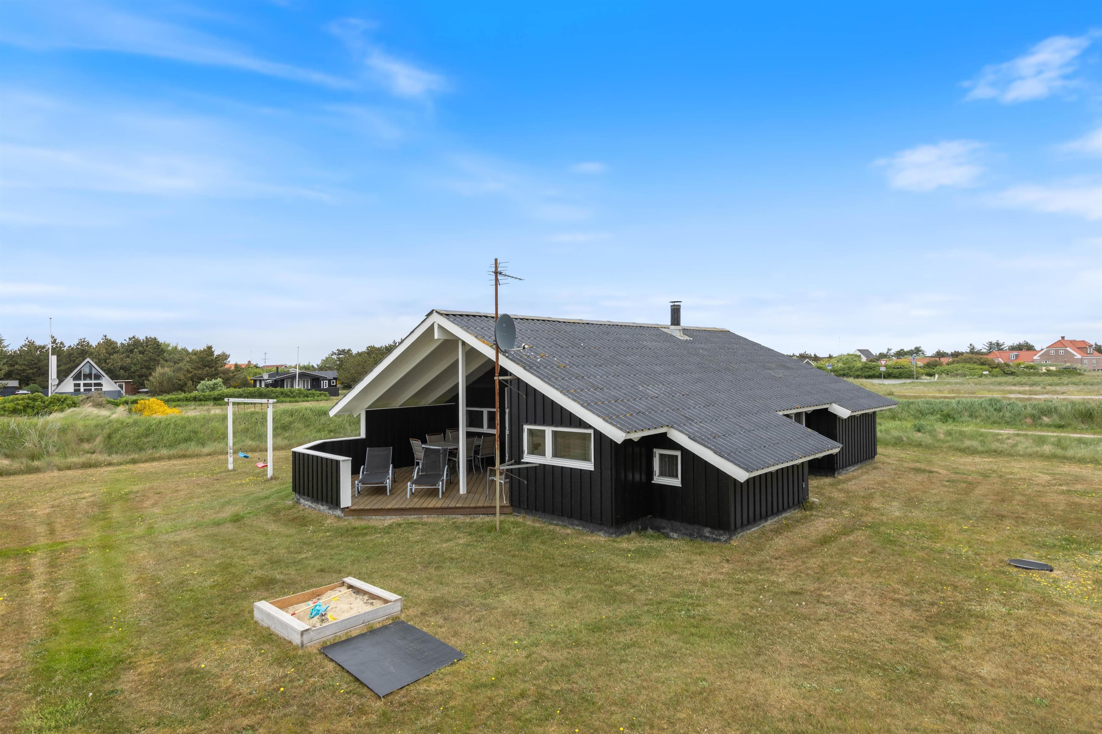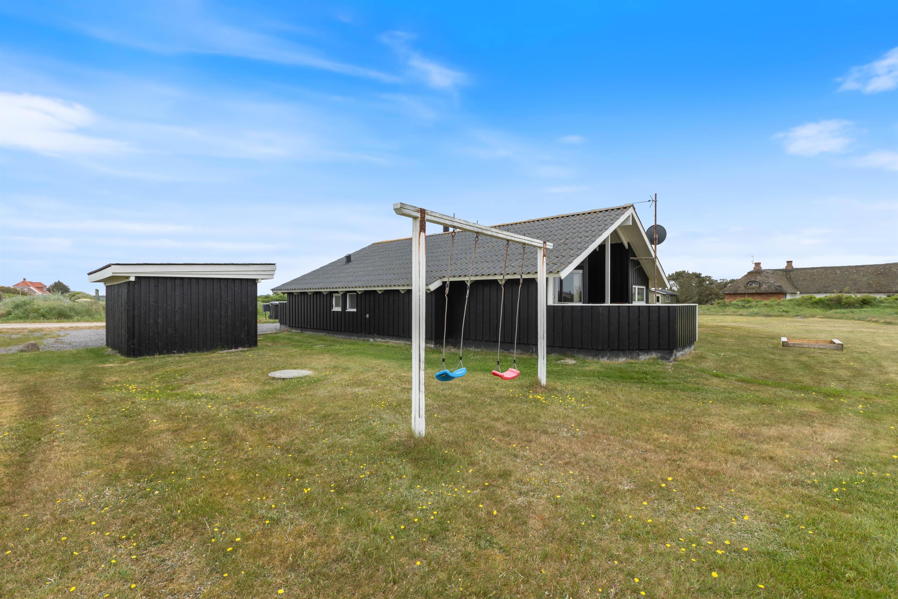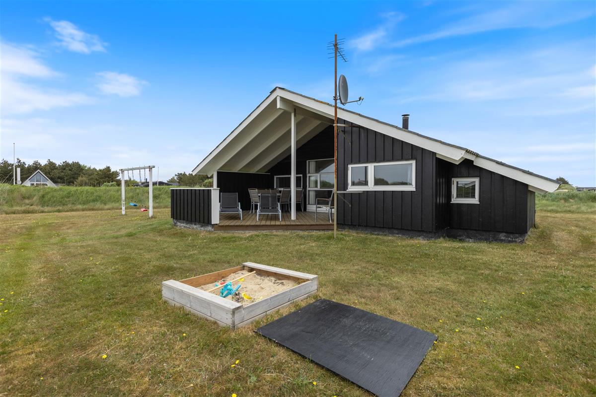 Beautiful and well-maintained holiday home situated in an attractive holiday region just north of Hvide Sande. The holiday home sits on lawned grounds offering excellent play areas, including a sandbox and swing set for younger children.