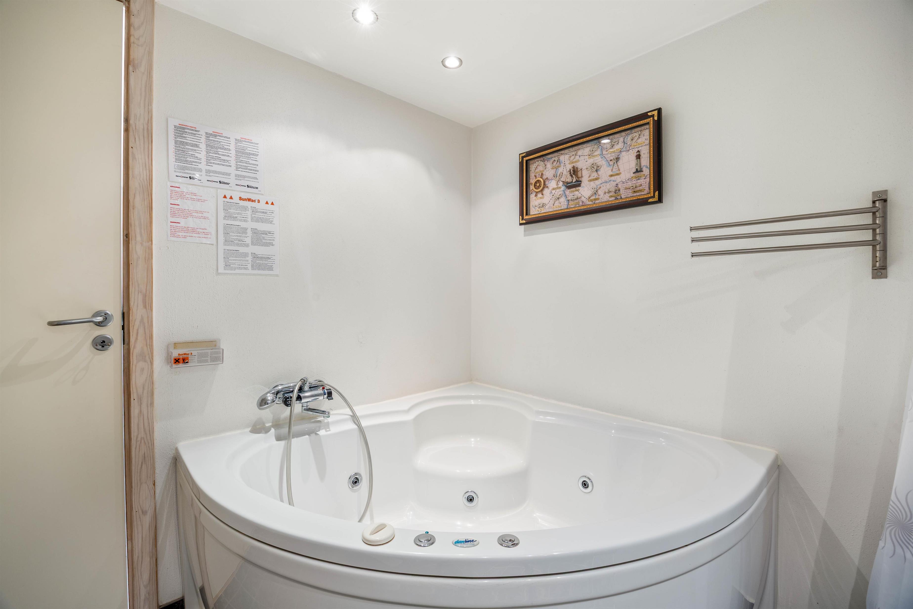 The holiday home also features 3 bedrooms and a bathroom. The bathroom includes a whirlpool where you can lean back and relax in warm, bubbling water. A modern heating system ensures hot water is always available.