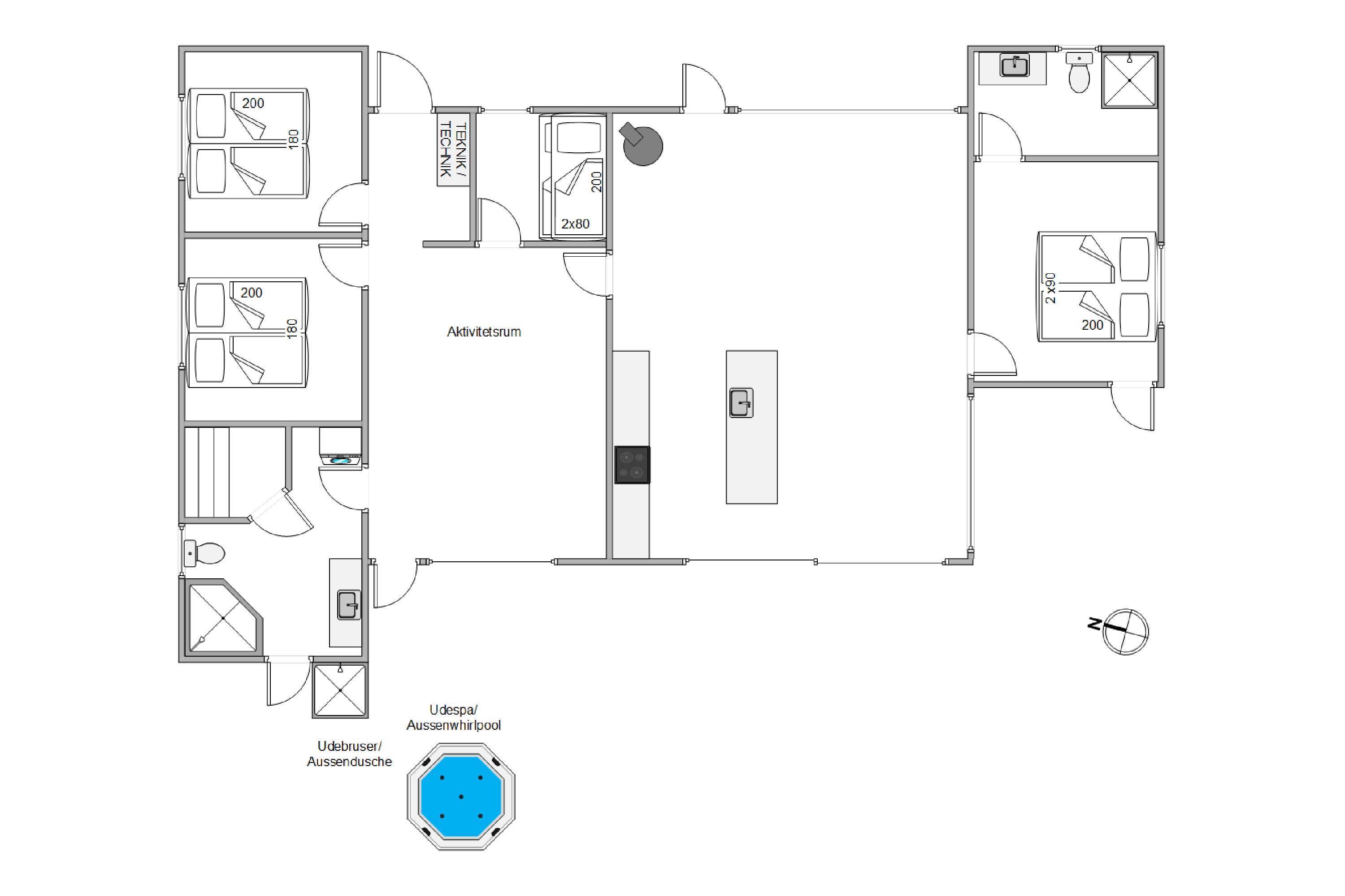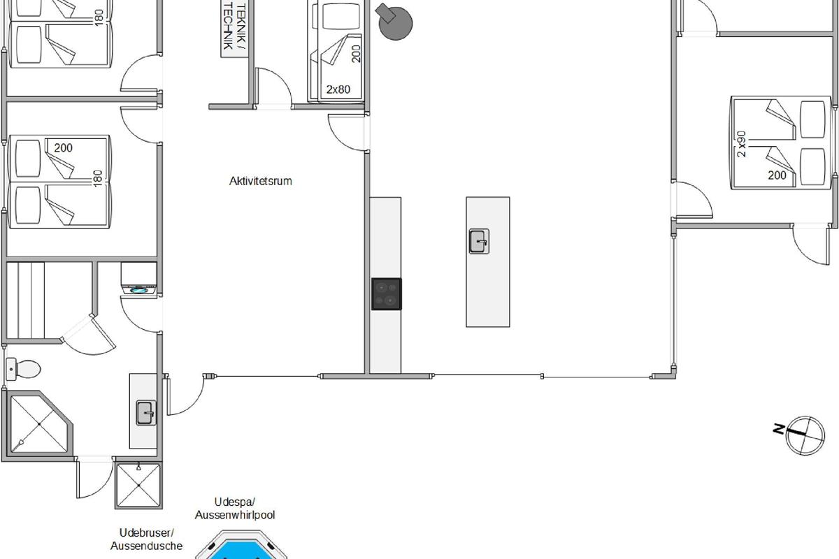 This well-equipped holiday home at Sivbjerg 14 is a fantastic choice year-round. The terrace features an outdoor shower and hot tub, perfect for relaxation. The plot is surrounded by bushes, providing privacy to enjoy your holiday in peace. The North Sea is just 900 metres away - ideal for a swim or a lengthy beach walk.