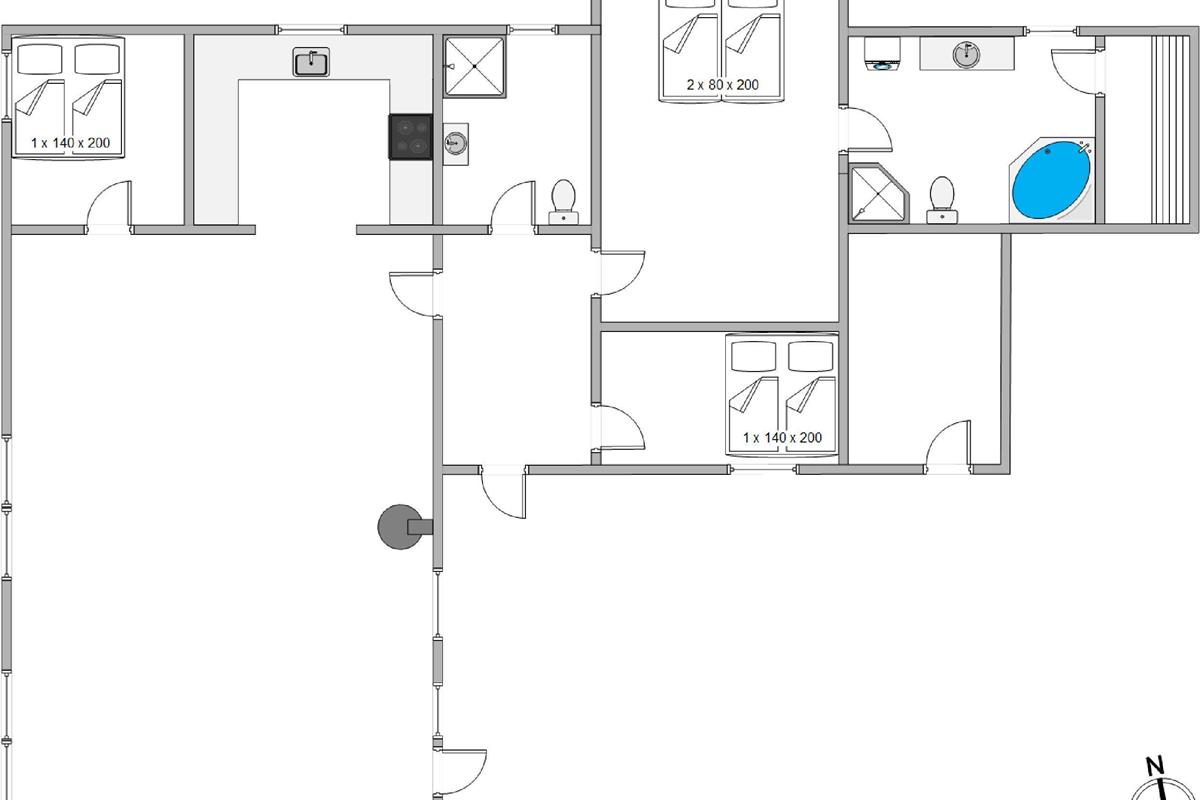 This comfortable and well-equipped holiday home has three bedrooms and two bathrooms. The larger bathroom features a whirlpool and sauna, perfect for unwinding after a day in the fresh air.