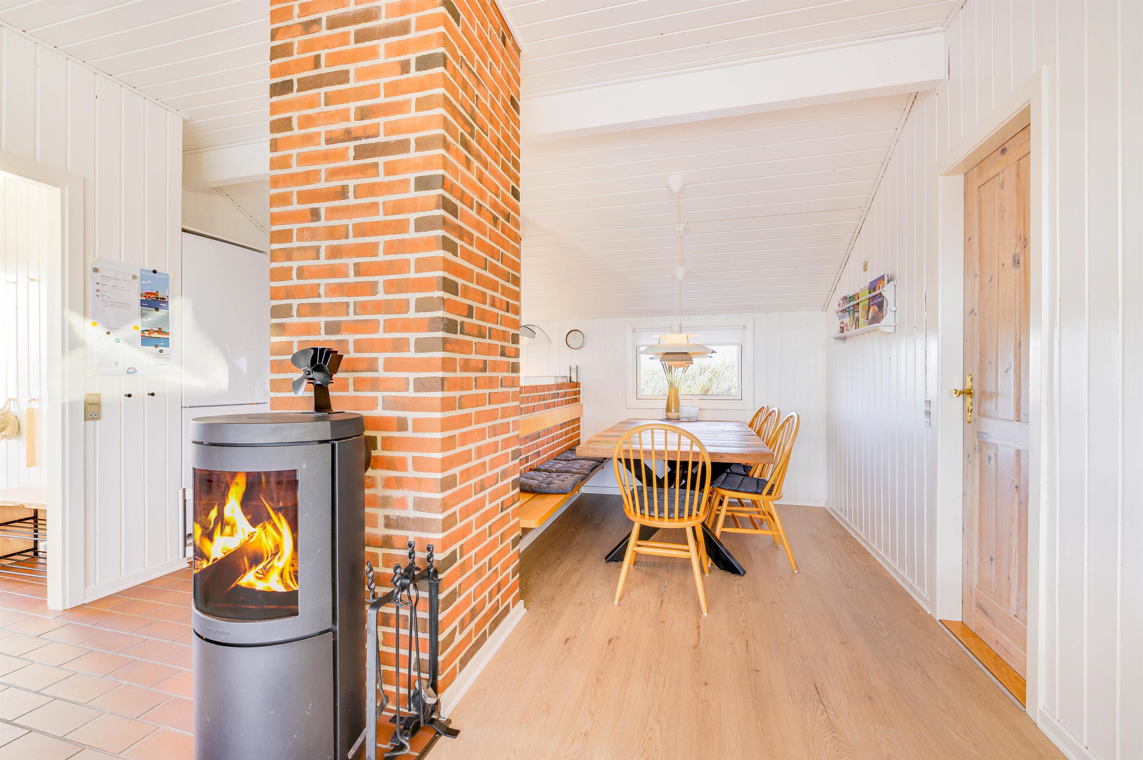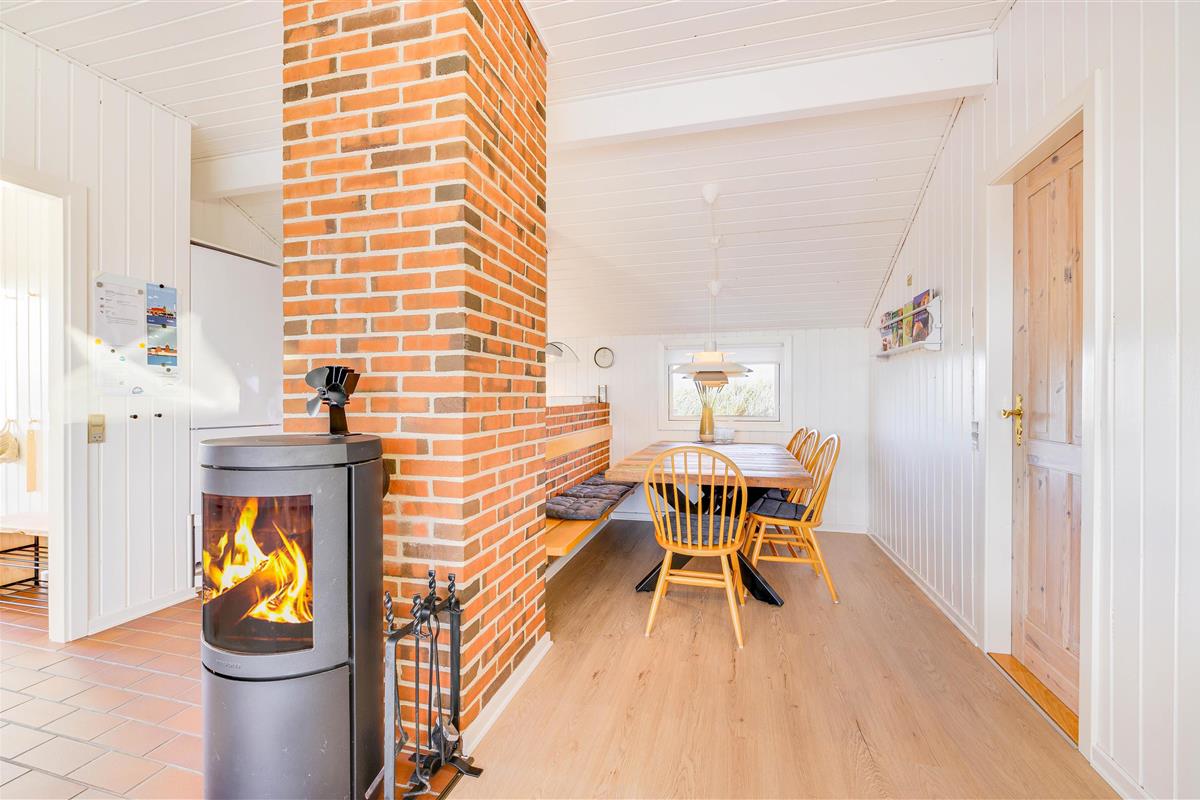 The holiday home includes a washing machine, particularly convenient for families with young children. For cooler evenings, there's an energy-efficient heat pump, and for that classic holiday home atmosphere, you can light the wood-burning stove and enjoy the crackling fire.
