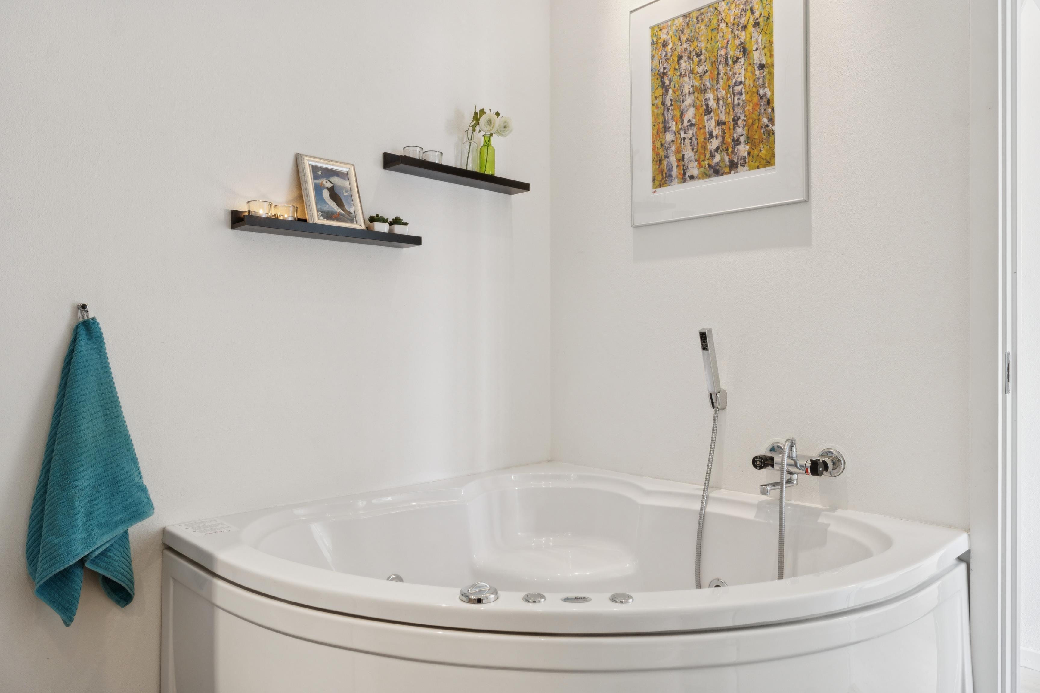 The open-plan living/kitchen combination creates a cosy atmosphere - perfect for socialising with family, friends or just the two of you. Enjoy the warmth of the fireplace on chilly evenings and listen to the crackling of the wood as the flames blaze inside. The holiday home is also equipped with a cost-effective and energy-efficient heat pump. There is also a television with satellite connection and free Wi-Fi for surfing the Internet. The house has a bright bathroom with shower, underfloor heating and a whirlpool to relax in.
