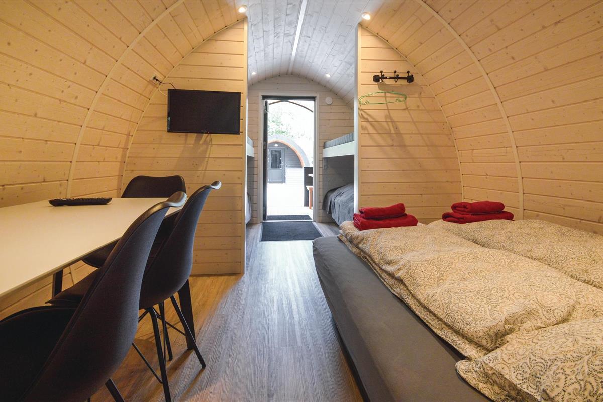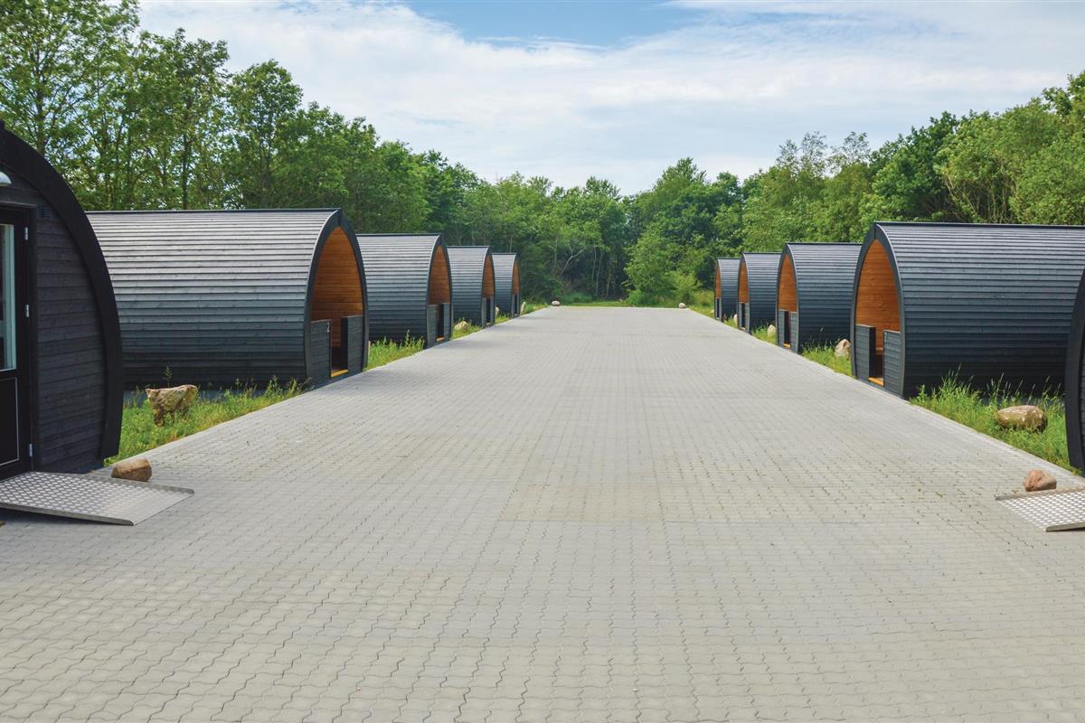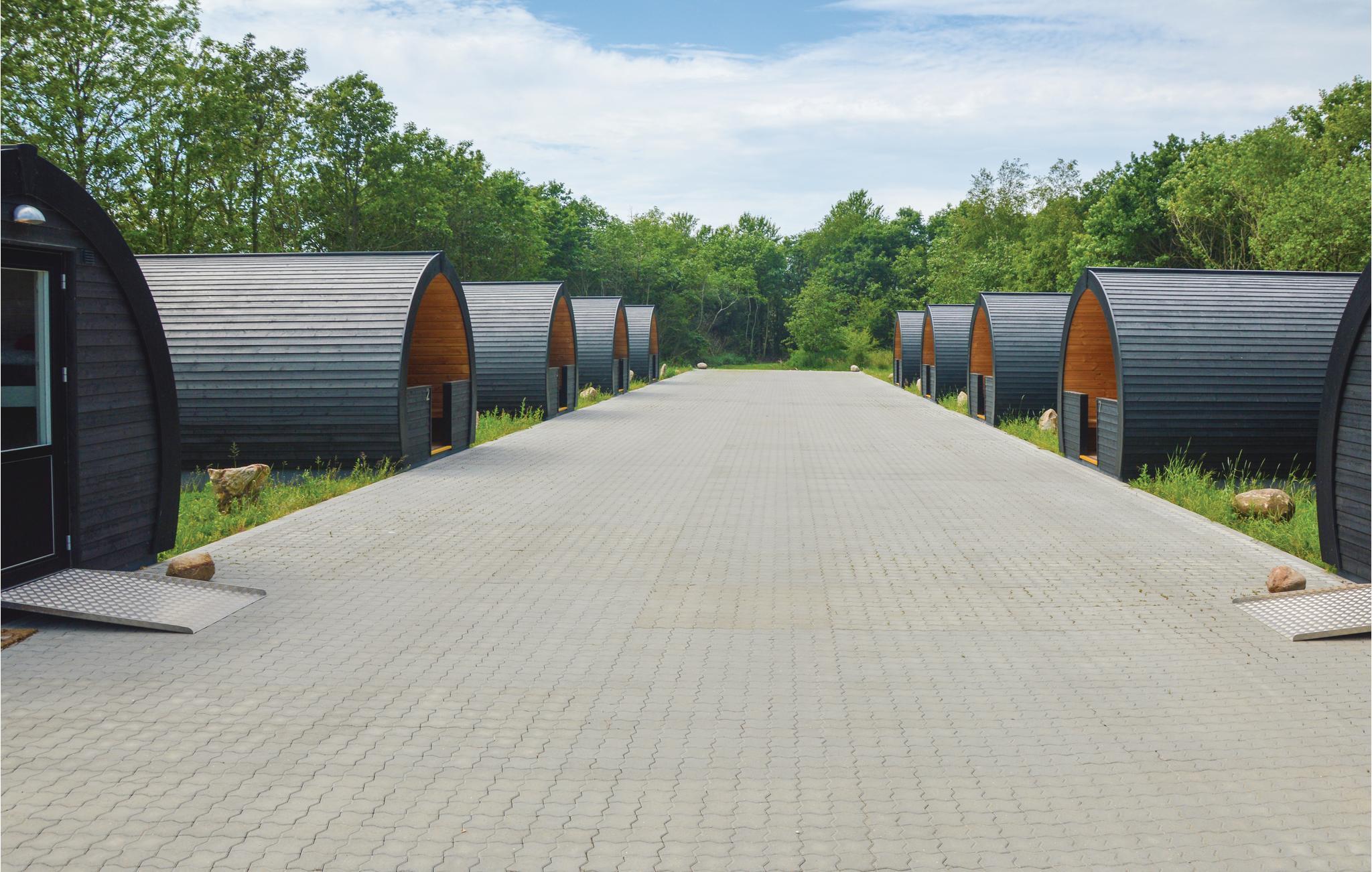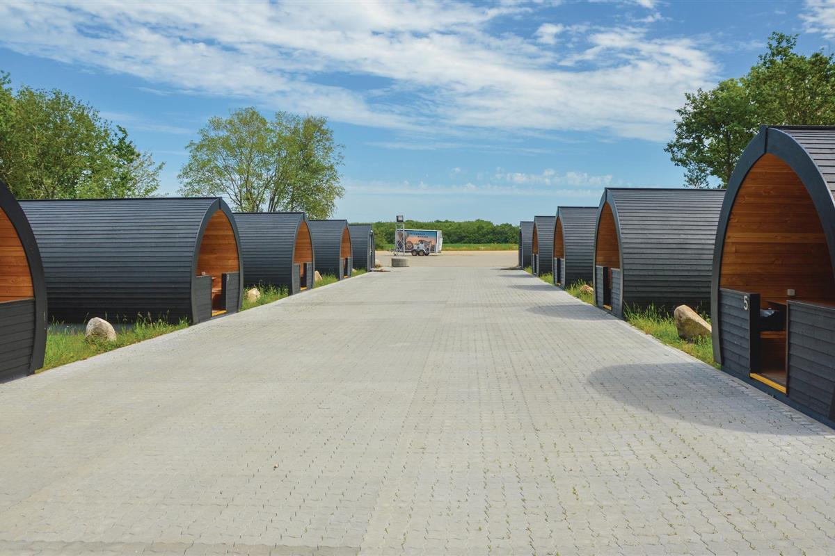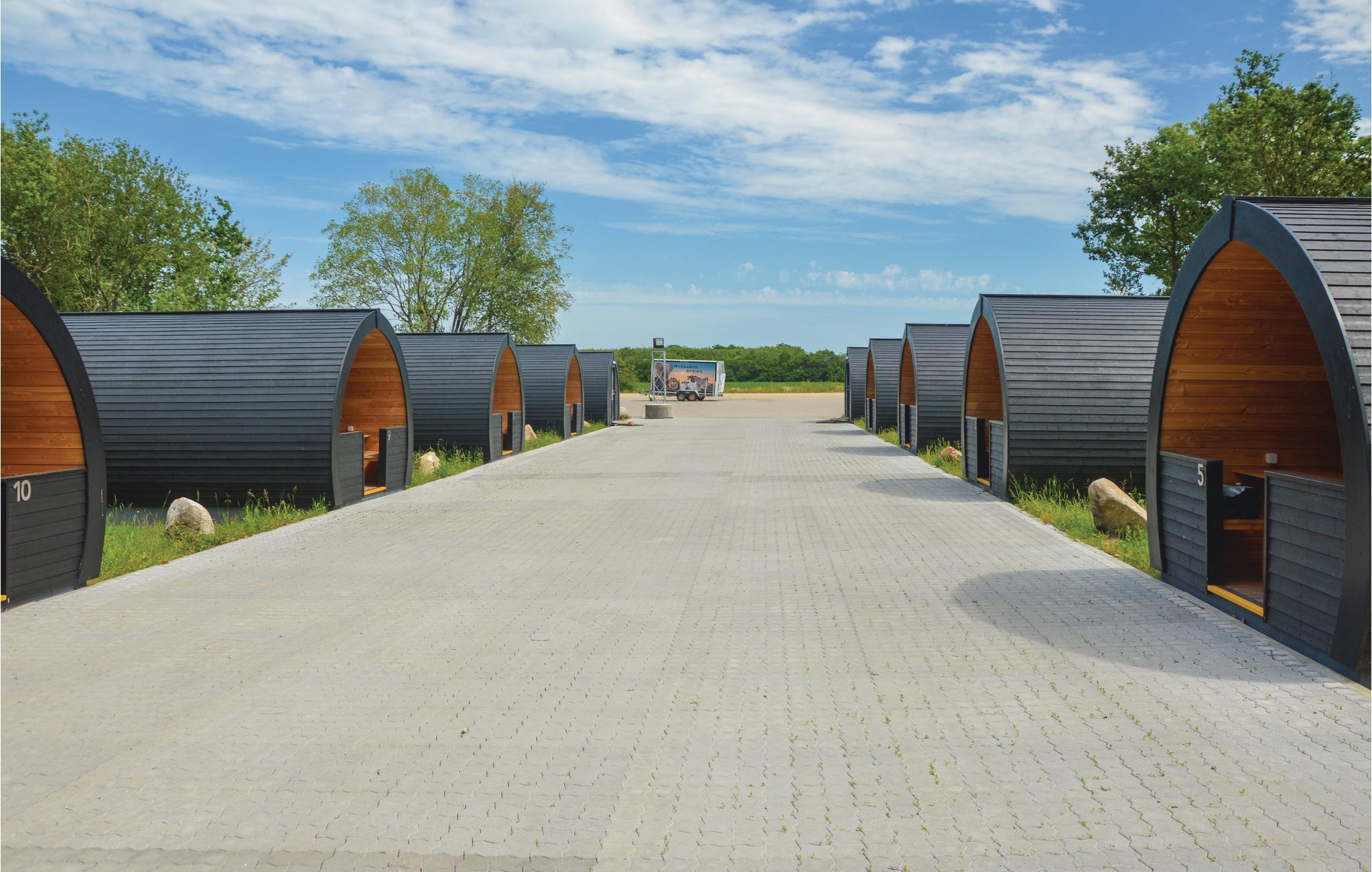 Op korte afstand van No. Nebel ligt dit vakantieoord. De bijzondere huisjes, in een groep van tien, vallen op door hun cilindrische vorm.