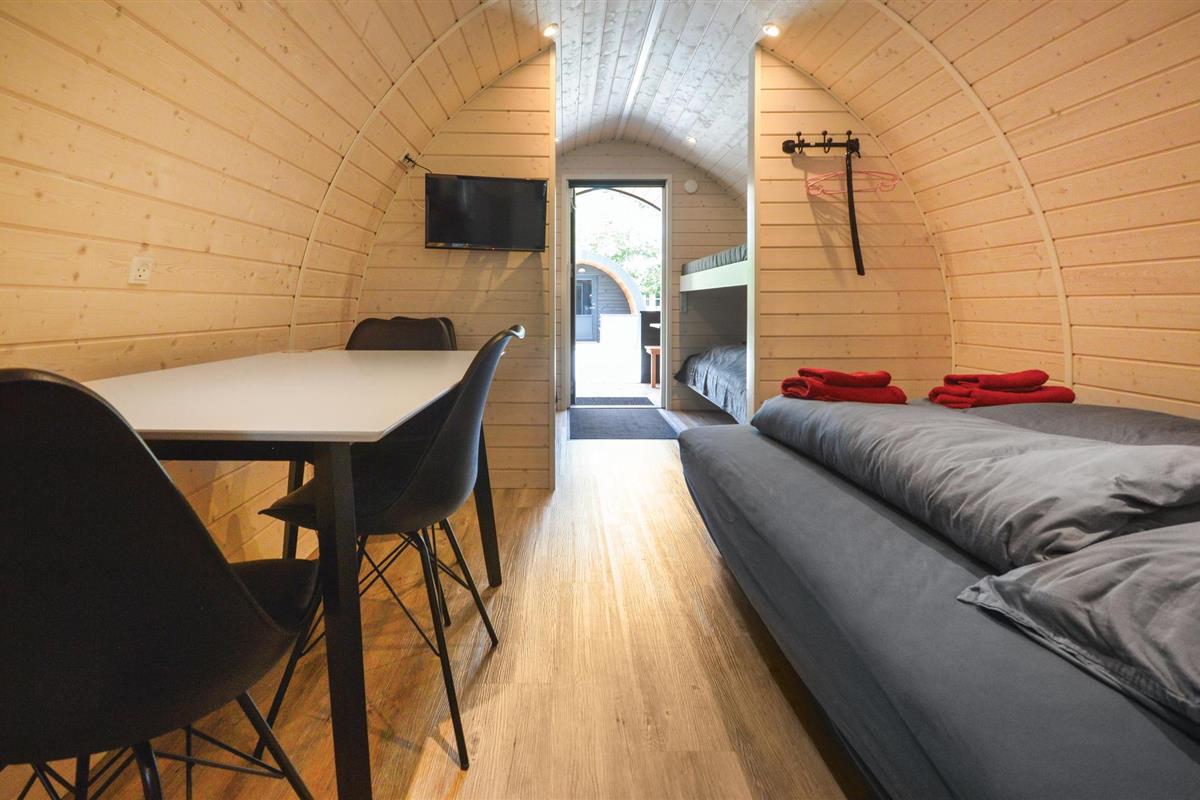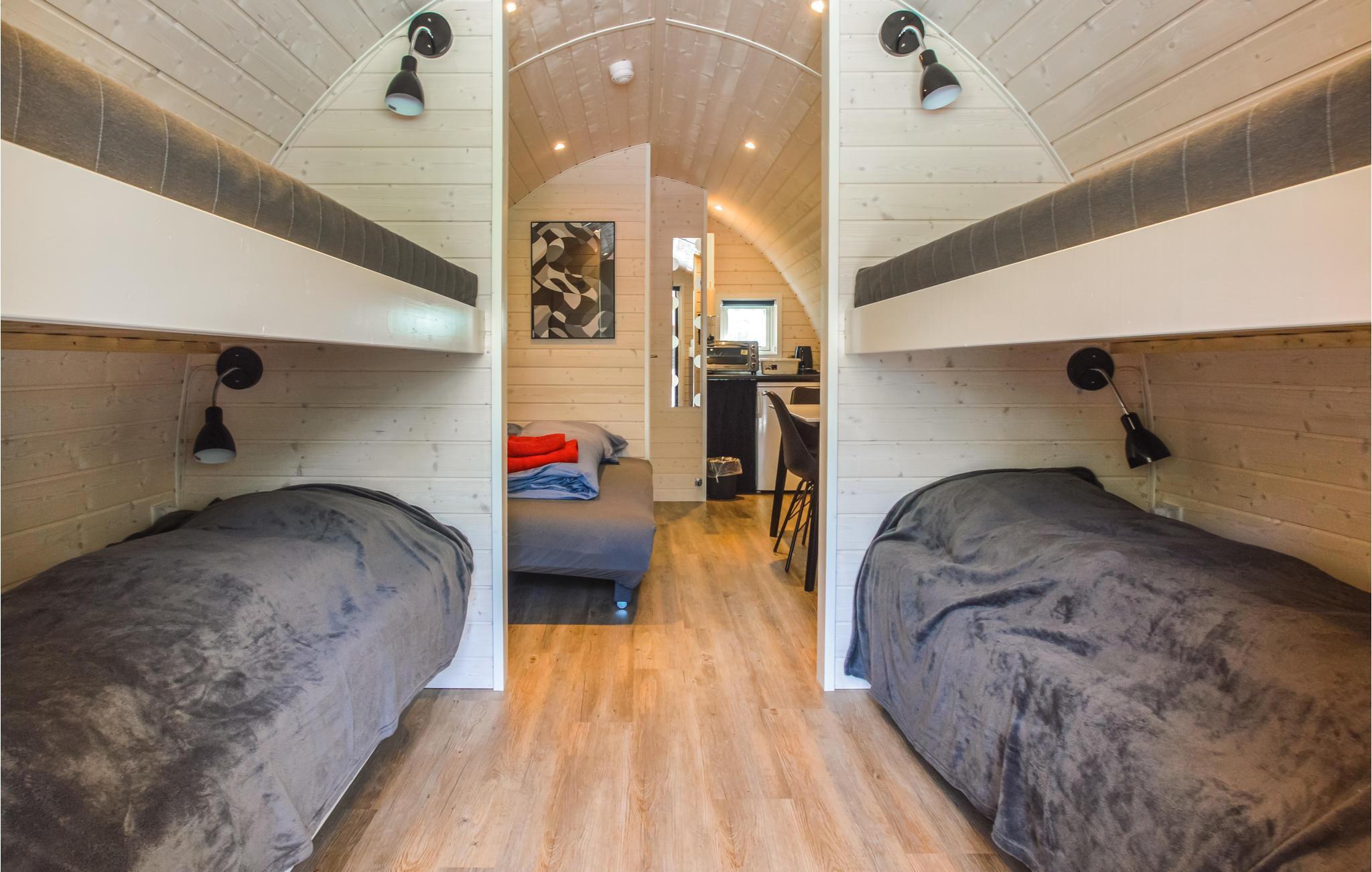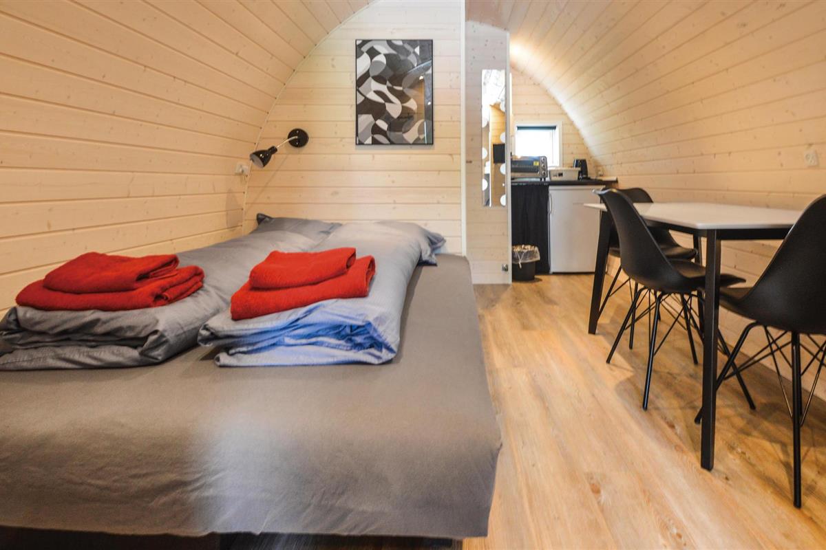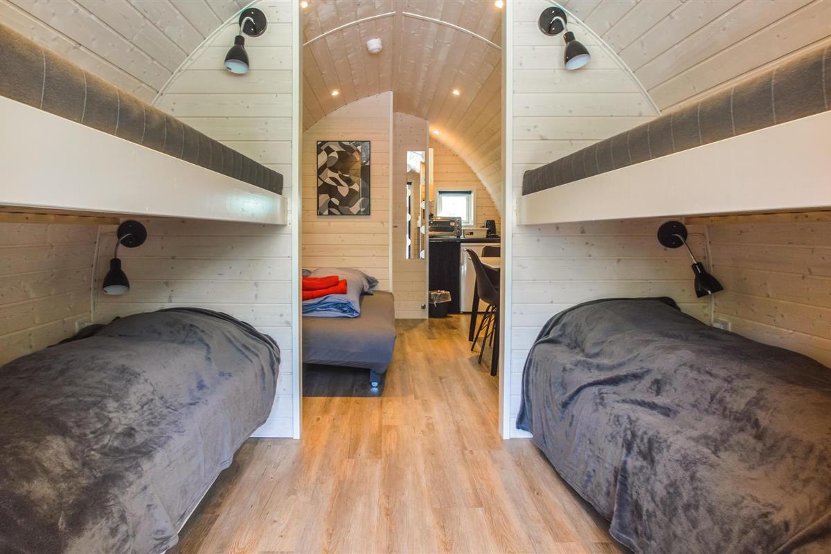 Op korte afstand van No Mist liggen deze spannende tonvormige hutten, opgesteld in een groep van 10.