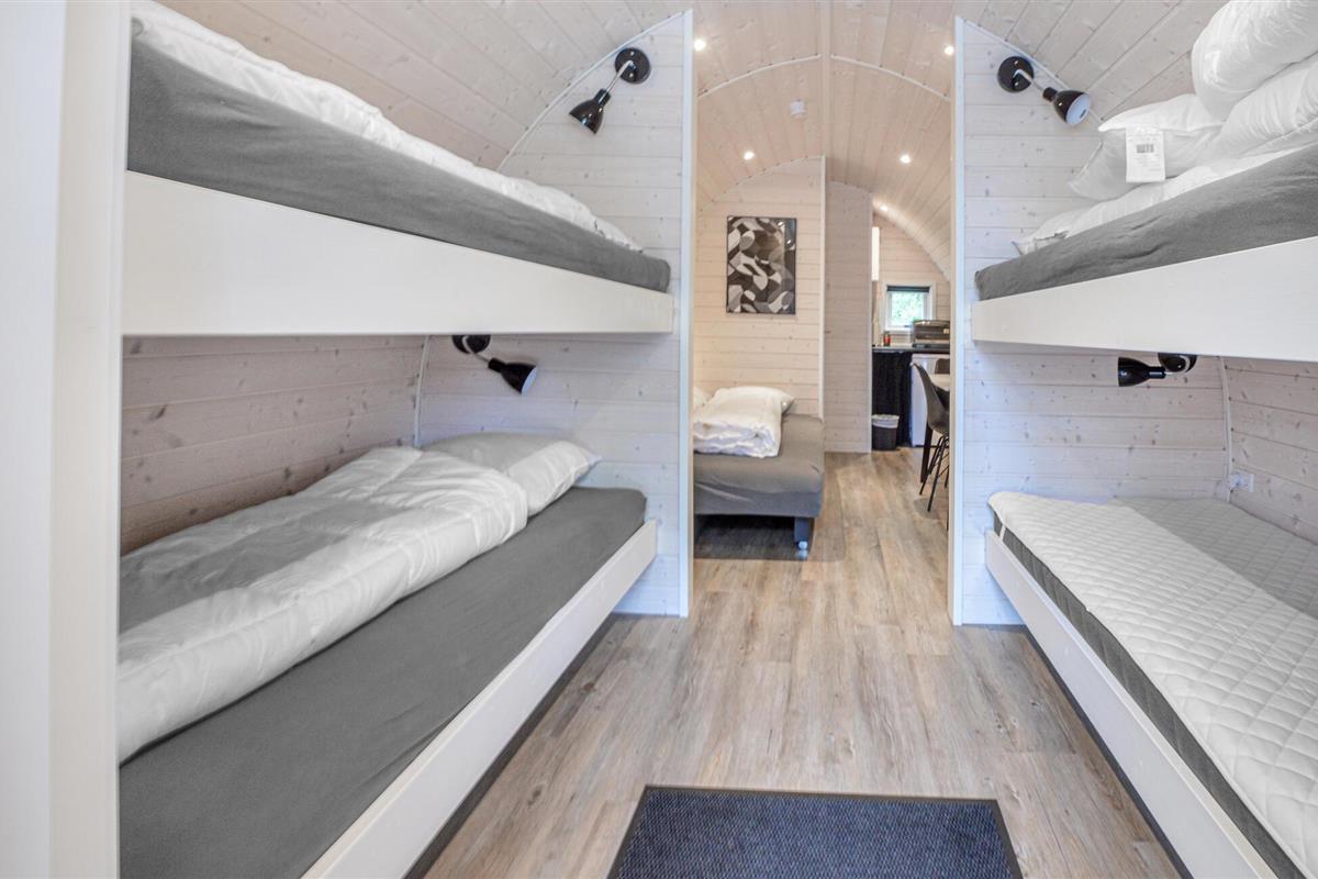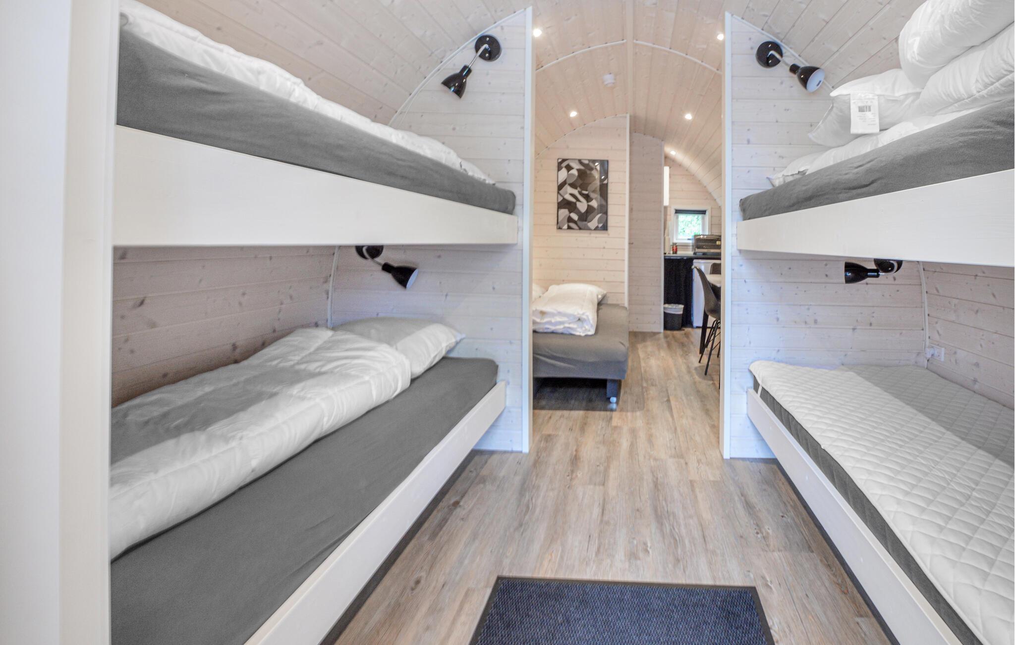 Op korte afstand van No Mist liggen deze spannende tonvormige hutten, opgesteld in een groep van 10.