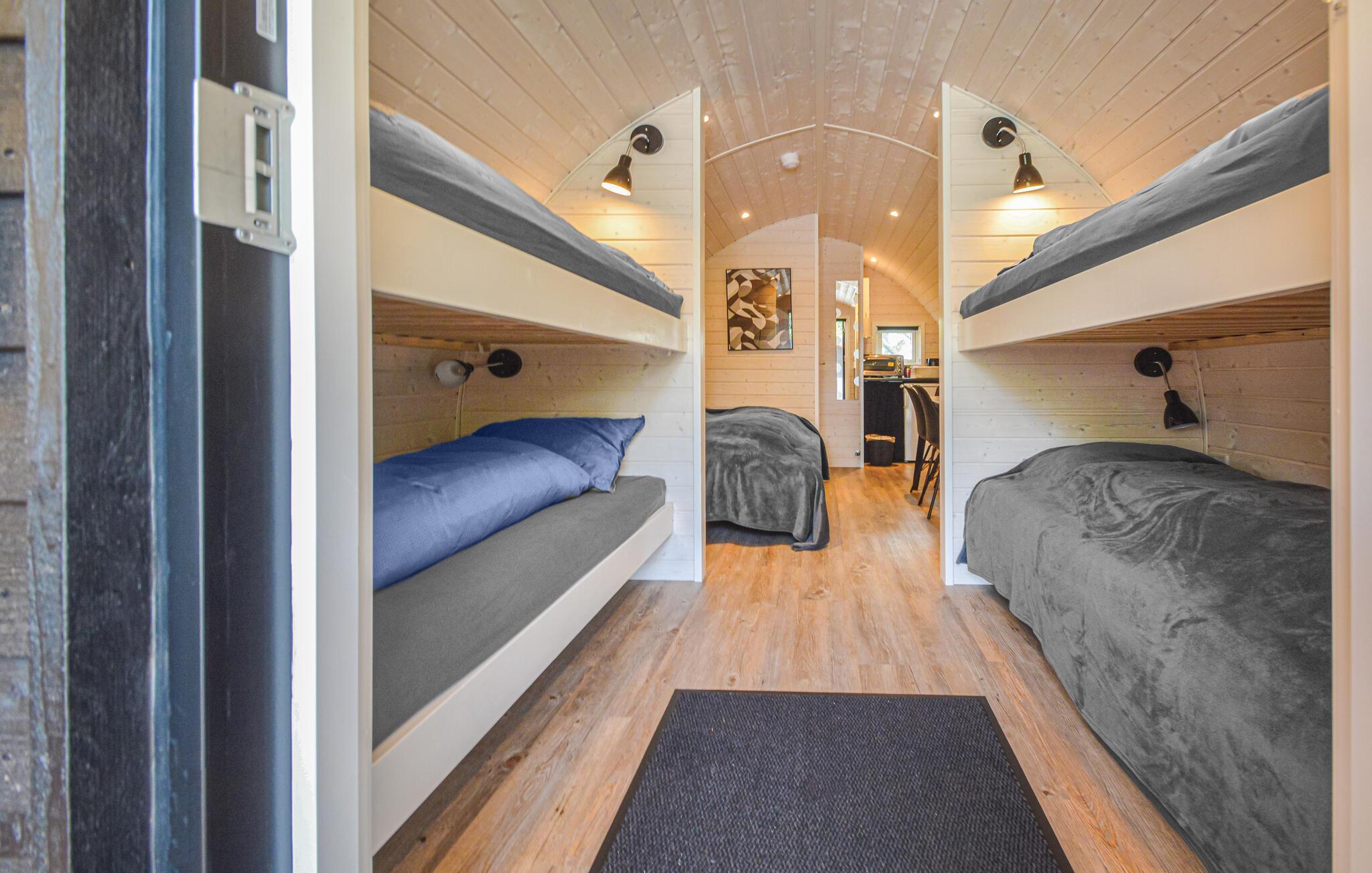 Op korte afstand van No Mist liggen deze spannende tonvormige hutten, opgesteld in een groep van 10.