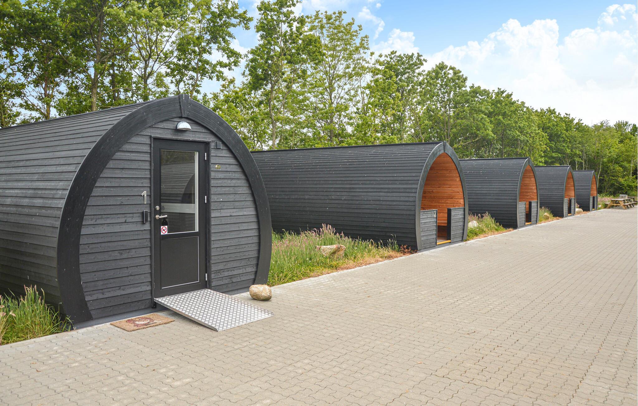 Ervaar unieke tonvormige hutten nabij Nygaard Jachtmuseum, ideaal voor een ontspannen vakantie in Denemarken.