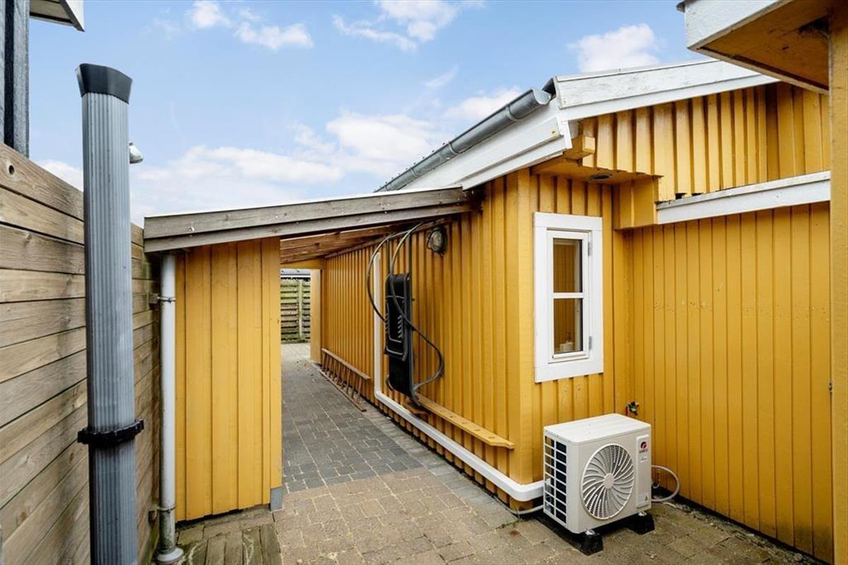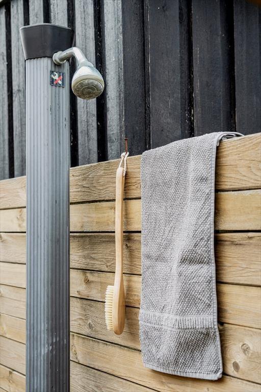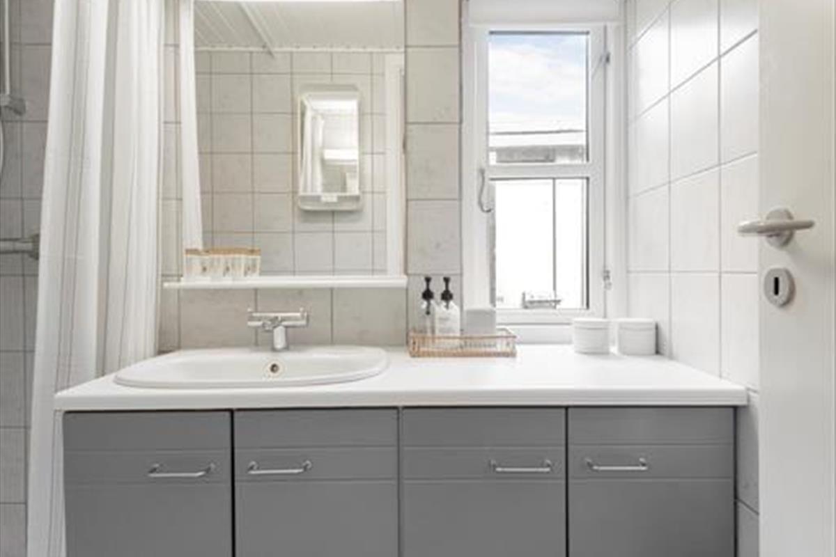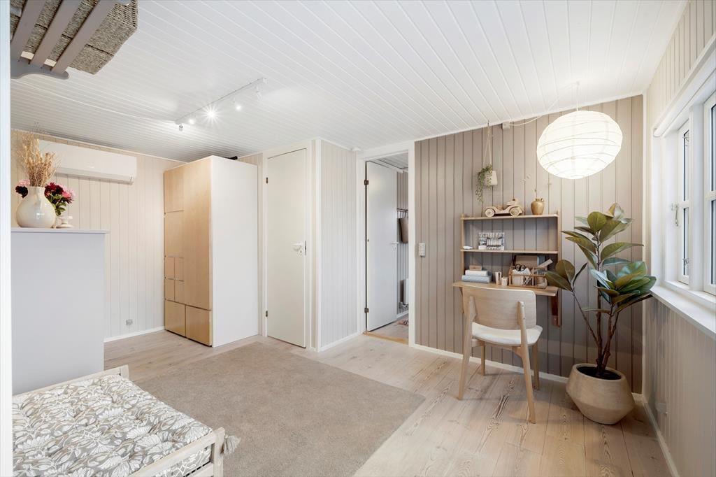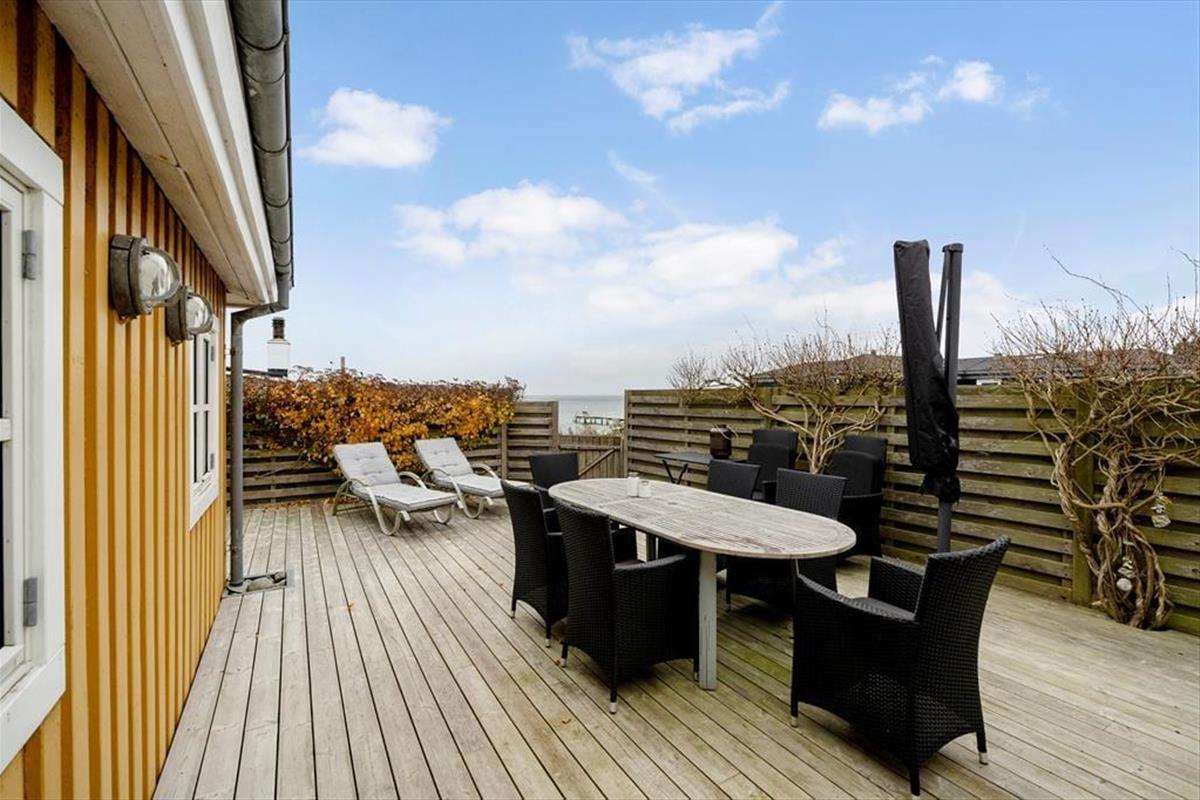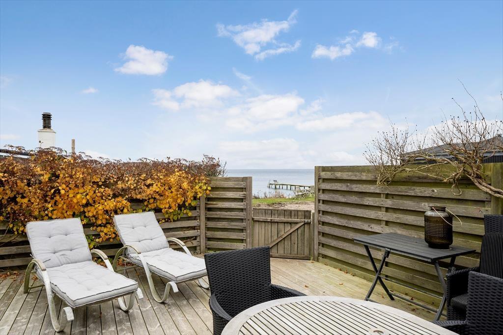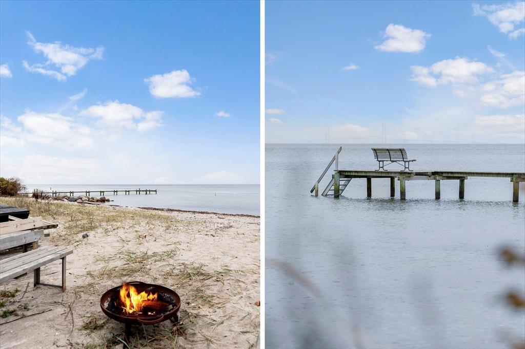 The large wooden terrace is the perfect place to spend time outdoors. Here, you can enjoy both morning coffee and evening meals in the sun, while you observe the sea and the beautiful view. The enclosed garden is a peaceful oasis, where you can relax in peace and enjoy the sea view. If you're in the mood for a refreshing swim, Nordenhuse Strand is only a few steps away, and you can enjoy the shared bathing bridge, which makes it easy and safe to take a swim. The area also offers plenty of space for play and relaxation, and the relaxing atmosphere is perfect for both young and old.