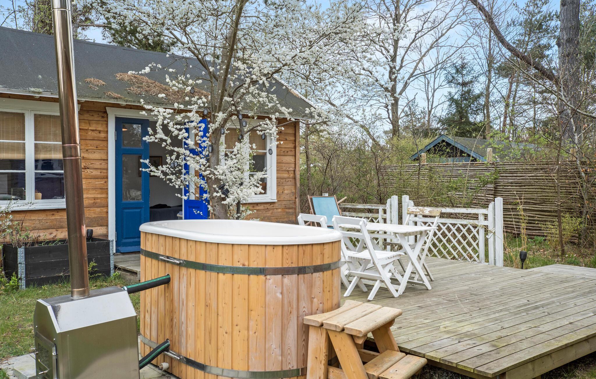 Ontdek dit charmante houten vakantiehuis nabij het strand van Nykøbing Nordstrand, met een verkwikkend vildmarksbad en een prachtige natuurlijke omgeving.