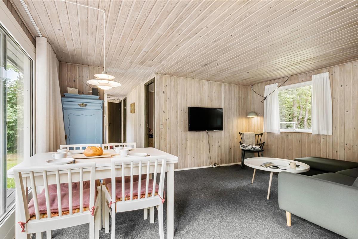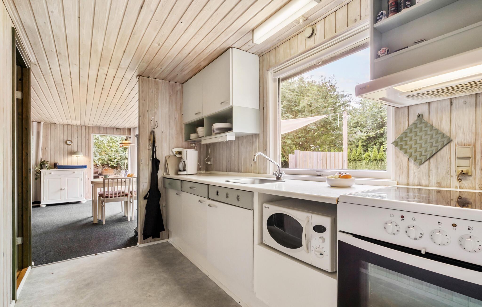 Welkom in je vakantiehuis op Nykøbing Nordstrand, genesteld in een schilderachtige omgeving. Dit gezellige huis, omgeven door weelderig groen, biedt je een oase van rust. De woonkamer met zijn houten sfeer straalt warmte en rust uit en nodigt je uit om te ontspannen en te lezen. Maak het jezelf gemakkelijk in de gezellige zithoek en geniet van het uitzicht op de tuin door de grote ramen. Begin je dag met een ontbijt op het zonnige, deels overdekte terras en adem de frisse lucht van de natuur in.