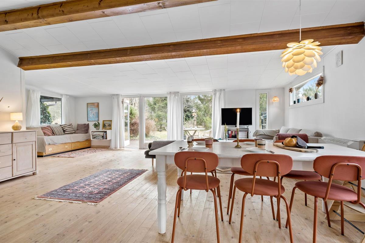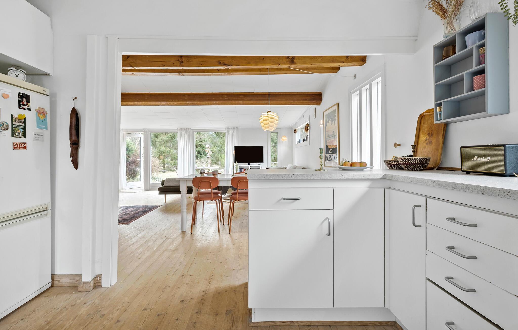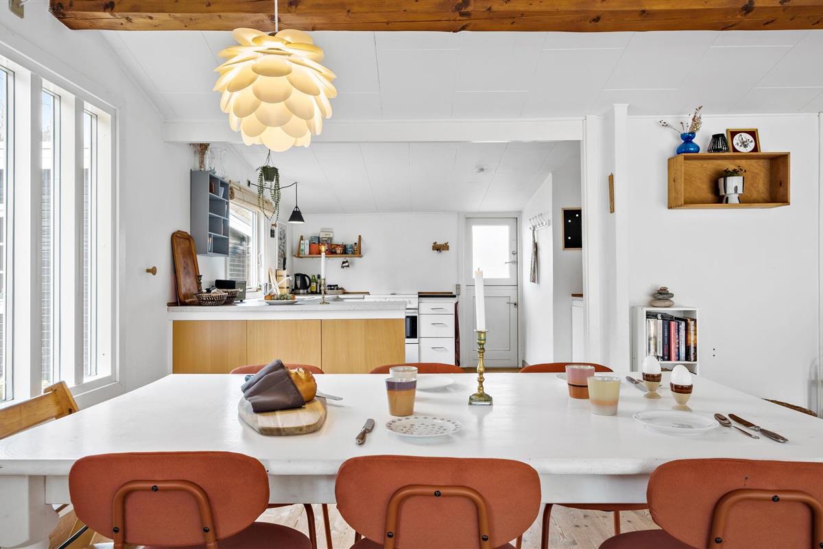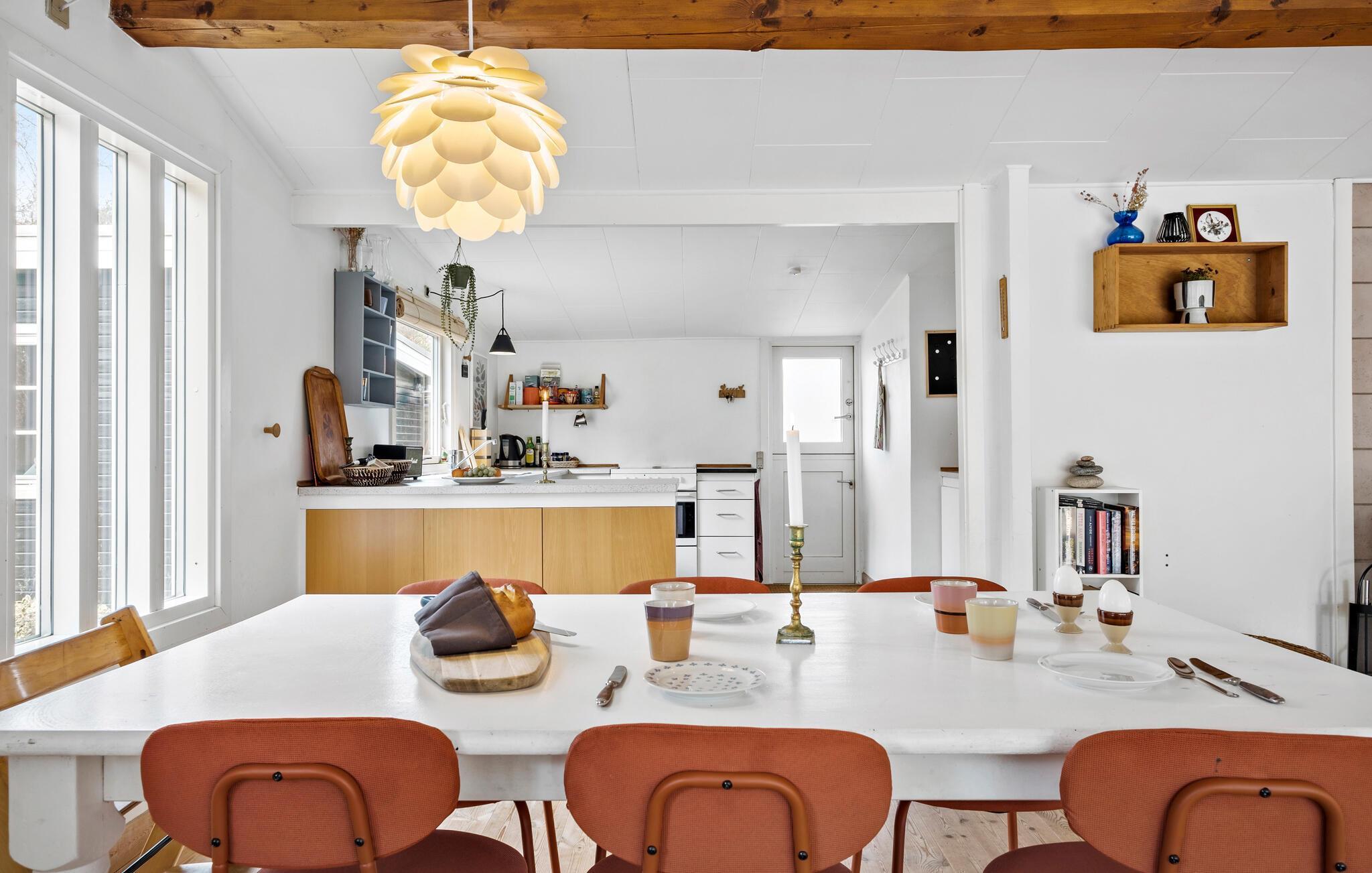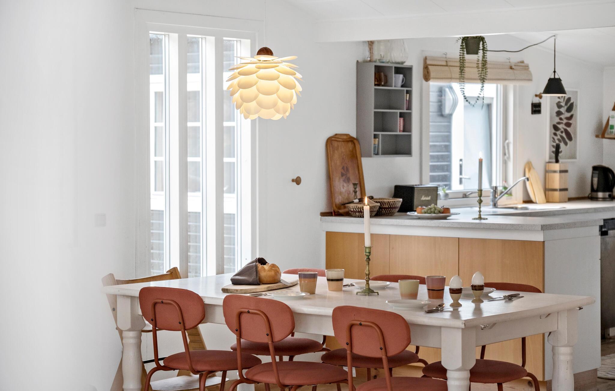 Je vakantiehuis ligt op een prachtig natuurperceel en verwelkomt je voor pure ontspanning en Deense hygge. Het huis maakt indruk met een mix van eenvoudige Scandinavische esthetiek en gezellige houten accenten. s Ochtends kun je je verheugen op een gezamenlijk ontbijt met het gezin aan de eettafel, dat je in alle rust kunt bereiden in de ruime keuken. Verschillende banken in de woonkamer nodigen je uit om gezellig samen te zijn. Knuffel met een goed boek, schilder met je kinderen of los een lastige kruiswoordpuzzel op. Je hebt hier alle tijd van de wereld. Het natuurlijke licht dat door de grote ramen naar binnen valt, benadrukt de rustige sfeer.