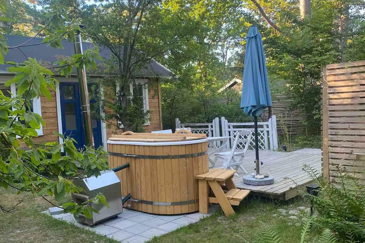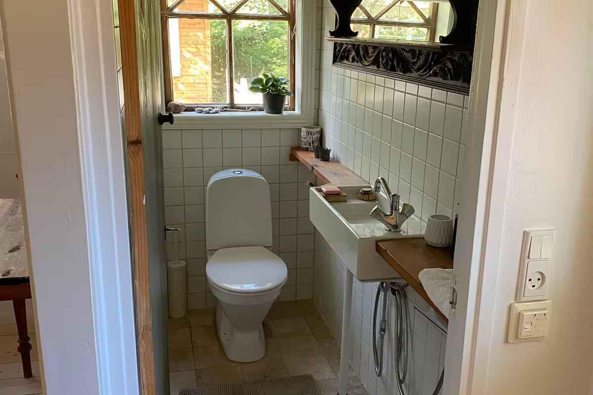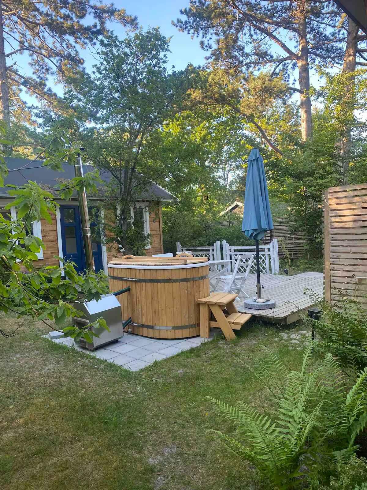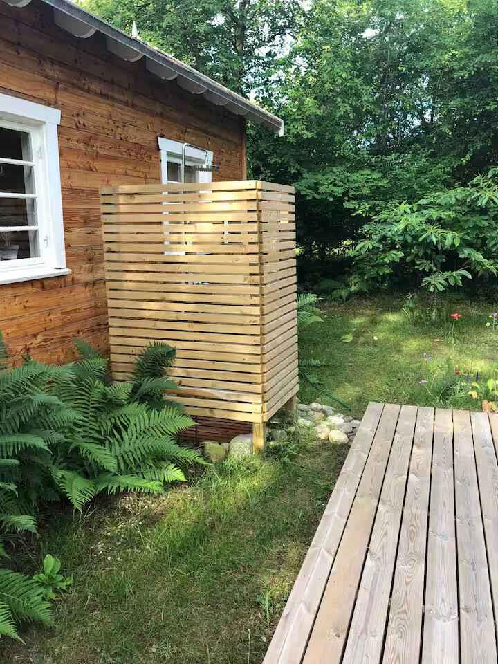 dejligt og hyggeligt nordisk sommerhus, vildmarksbad (mod betaling), københavnerbad indendørs med 15 liter varmvandsbeholder, udendørs bruser, internet,