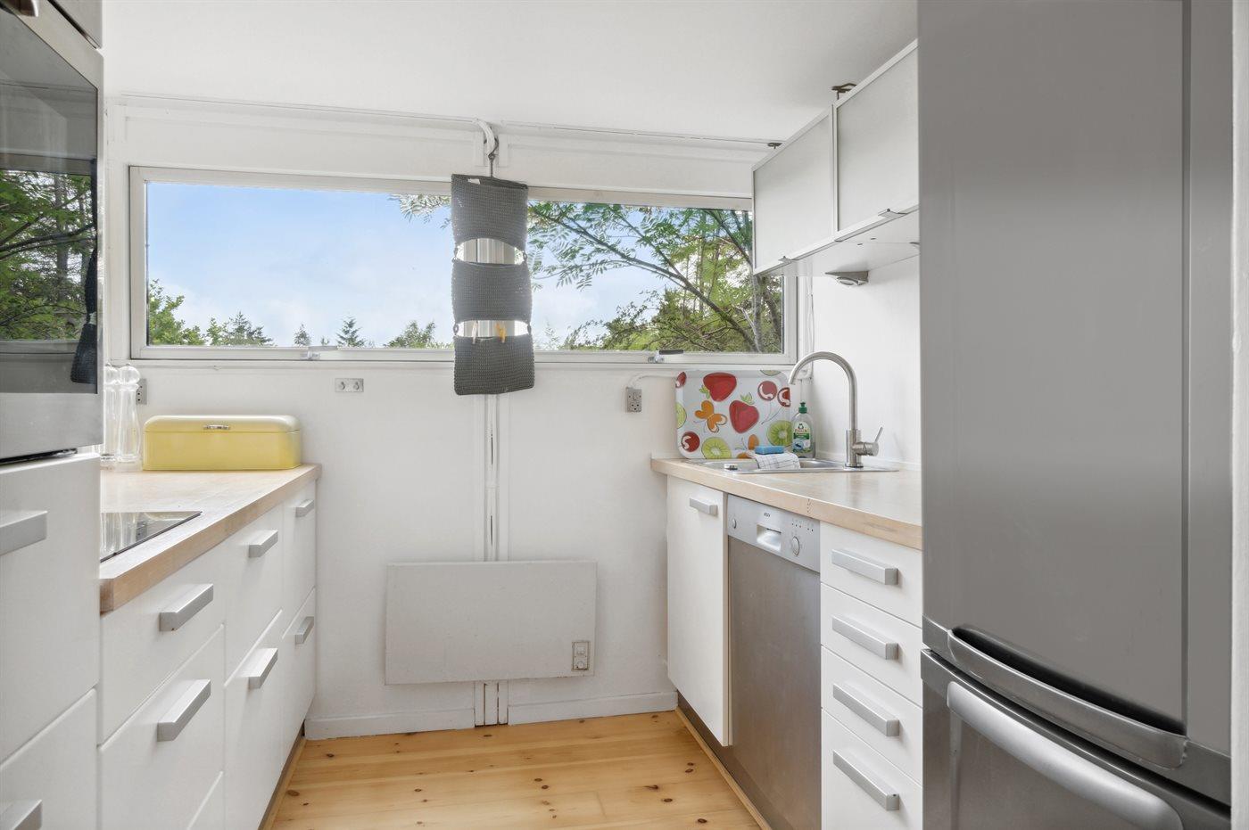 De keuken is uitgerust met koelkast Er zijn 4 keramische kookplaten, heteluchtoven en vaatwasser.