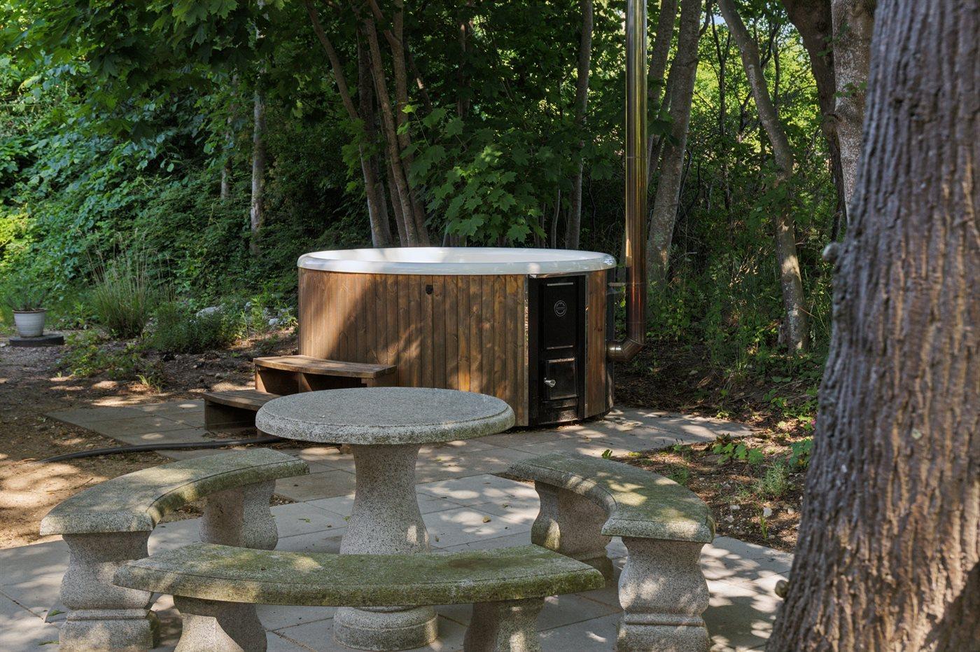Het buiten hot tub biedt ontspanning aan 6 personen.