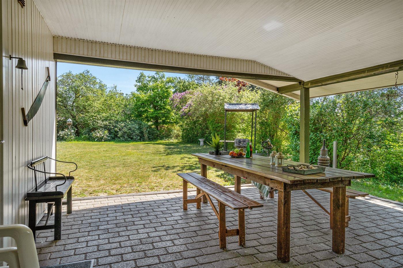 De vakantiewoning is gelegen op een 1183 m² groot aangelegde tuin. Afstand tot de zee 225 m. Er is een zwemsteiger in de buurt. Dichtstbijzijnde winkel 2200 m. Er is een golfbaan op een afstand van 4700 m. Daarnaast is er een 35 m² groot overdekt terras. Schommel. Zandbak. Afstand tot speelplaats 325 m. Barbecue. Carport ter beschikking. Het huis heeft een stopcontact voor het opladen van een elektrische auto. Oplaadstekker type 2. Met 11 kW-laadvermogen. Parkeerplaats bij het huis.