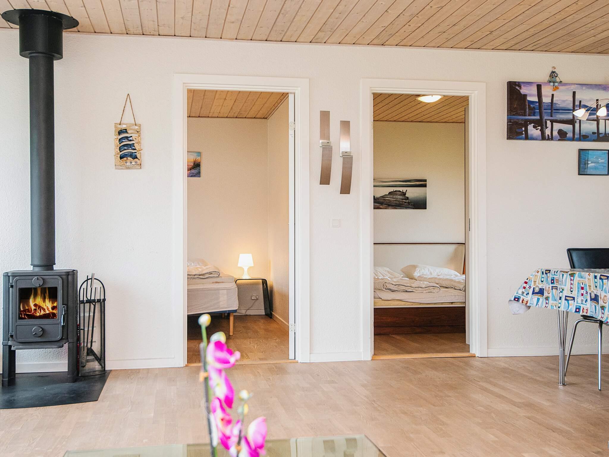Dieses charmante Ferienhaus bietet einen gemütlichen und komfortablen Rückzugsort mit zwei geräumigen Schlafzimmern, die jeweils mit einem Doppelbett für einen erholsamen Schlaf ausgestattet sind. Im Wohnzimmer sorgen ein Holzofen, ein Radio und ein CD-Player für eine warme und einladende Atmosphäre. Die elektrische Heizung und eine Luft/Luft-Wärmepumpe sorgen das ganze Jahr über für ein angenehmes Klima.