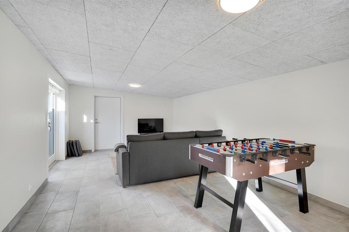 Comfortabel vakantiehuis met activiteitenruimte en open terras nabij strand en fjord.