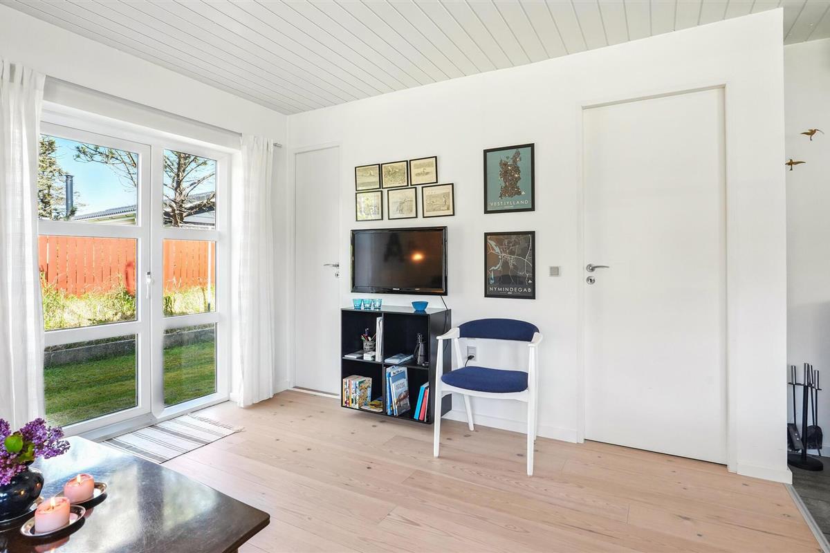 Een lichte leefruimte met mooie details en een duidelijk ontwerp wacht op je in dit vriendelijke vakantiehuis. De grote ramen laten veel licht binnen en creëren een open, luchtige sfeer. Maak het jezelf gemakkelijk op de hoekbank met een boek of een kopje thee of geniet van een filmavond.