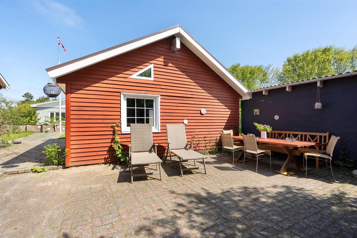 Ontdek dit charmante houten vakantiehuis nabij de duinplantage Blåbjerg in Nymindegab, perfect voor een ontspannen gezinsvakantie.