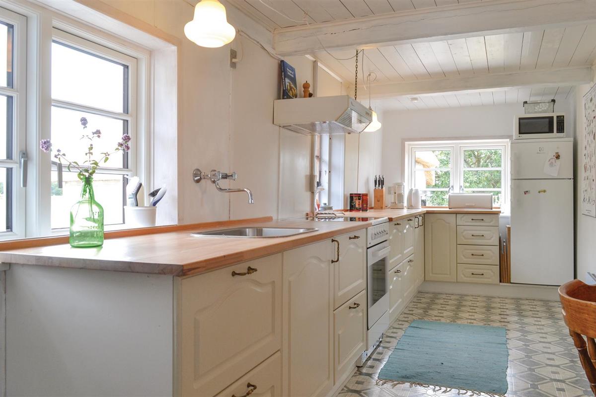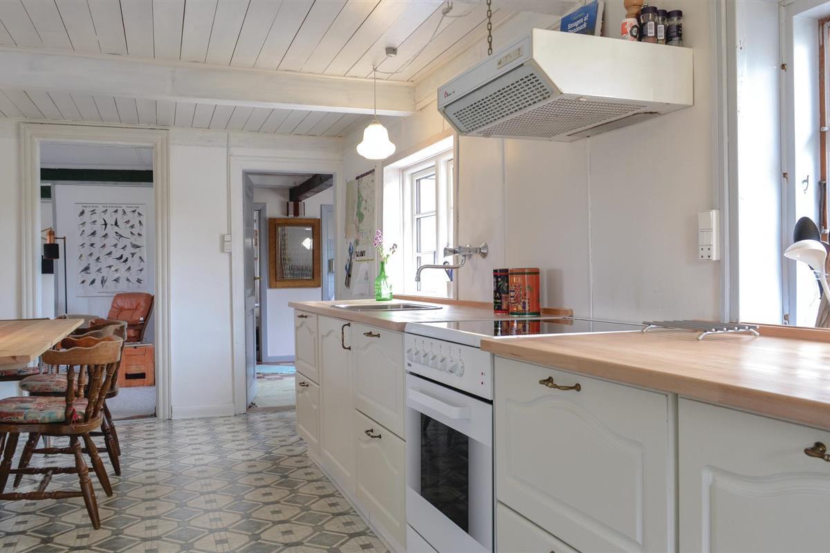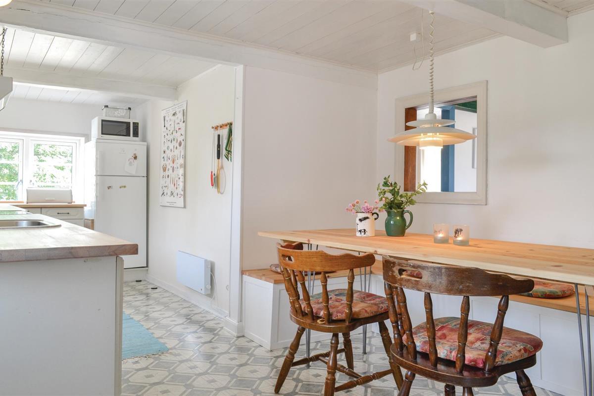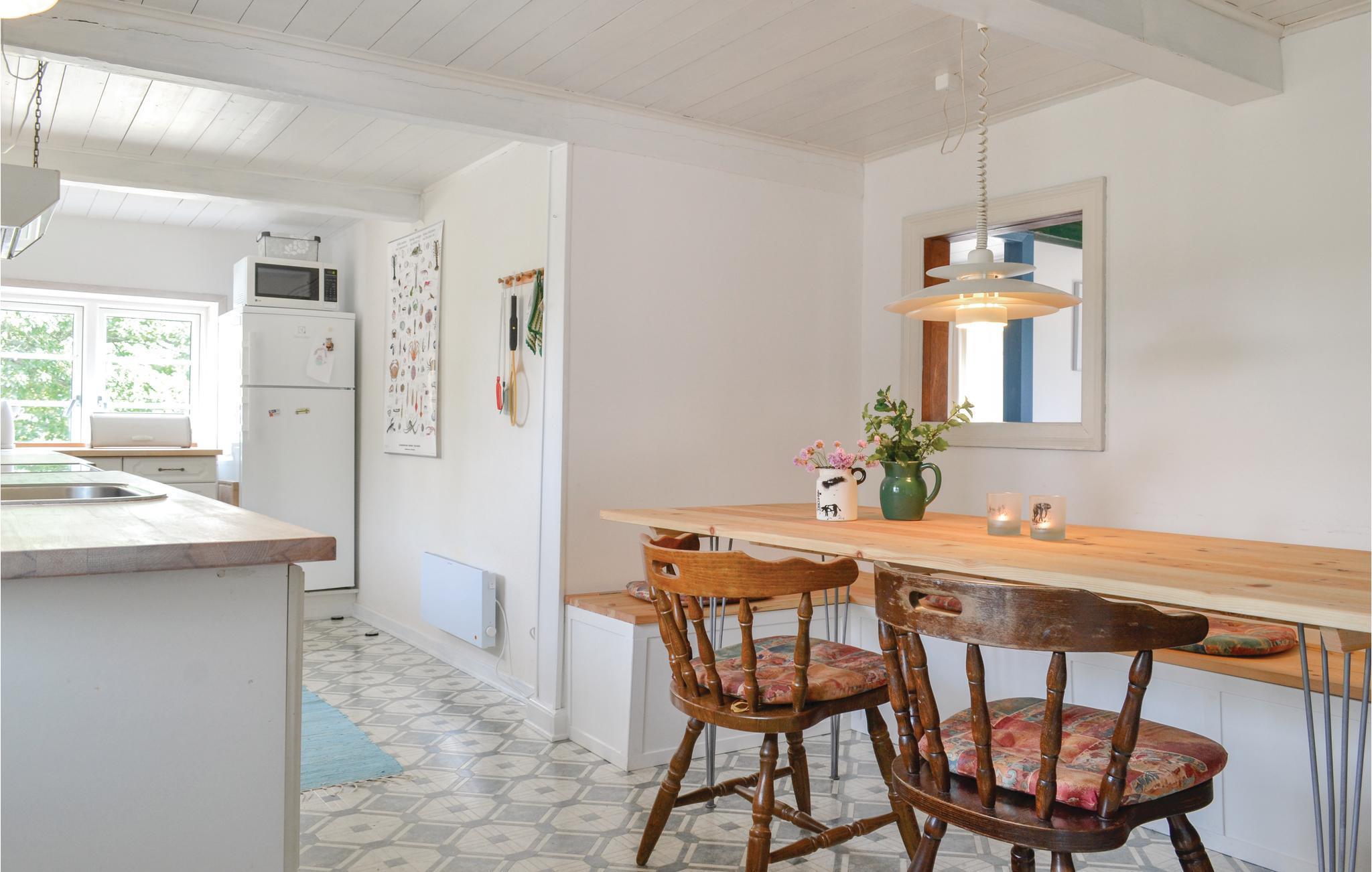 Dit eenvoudige maar gezellige vakantiehuis in Nymindegab nodigt je uit om volop te genieten van de rust en de omliggende natuur. De woonkamer is mooi ingericht en biedt een warme sfeer met een traditionele houtkachel. Bereid je maaltijden in de lichte, ruime keuken en geniet ervan in de uitnodigende eethoek. De combinatie van houten balken en klassieke meubels geeft het huis een rustieke charme die perfect past bij de natuurlijke locatie.