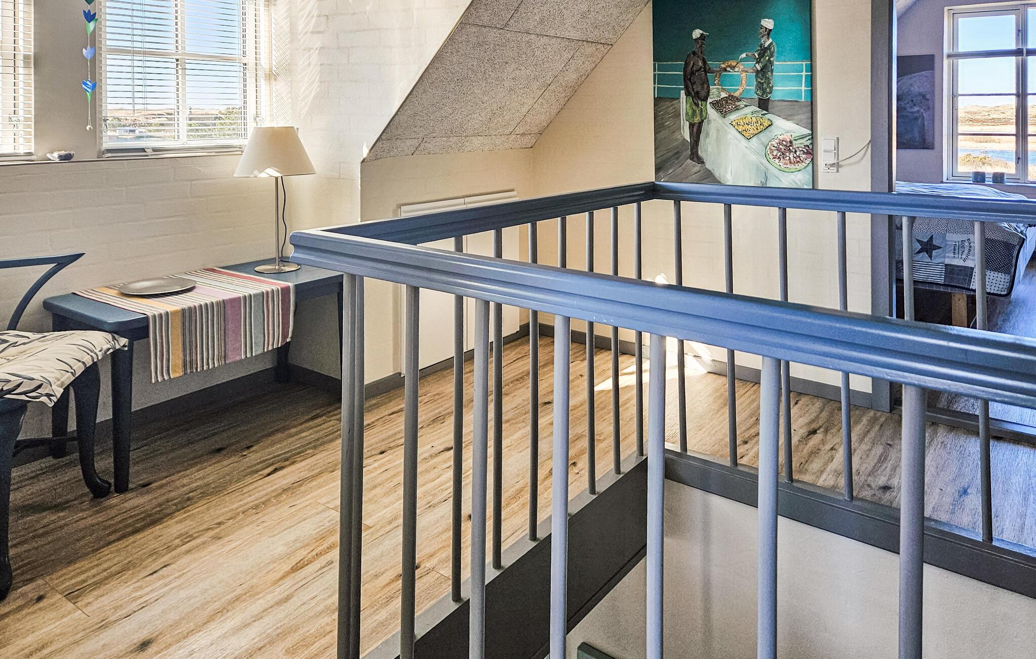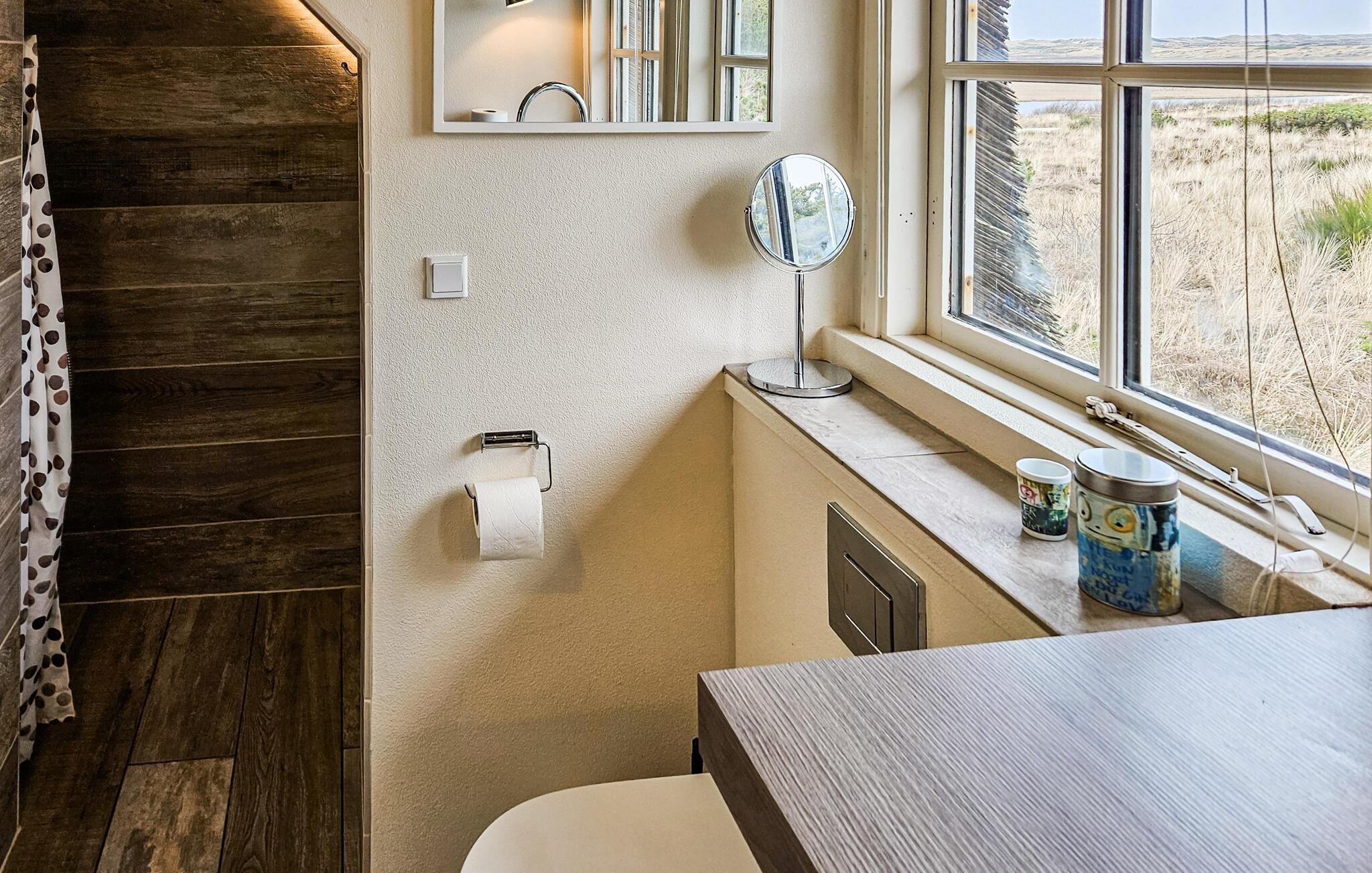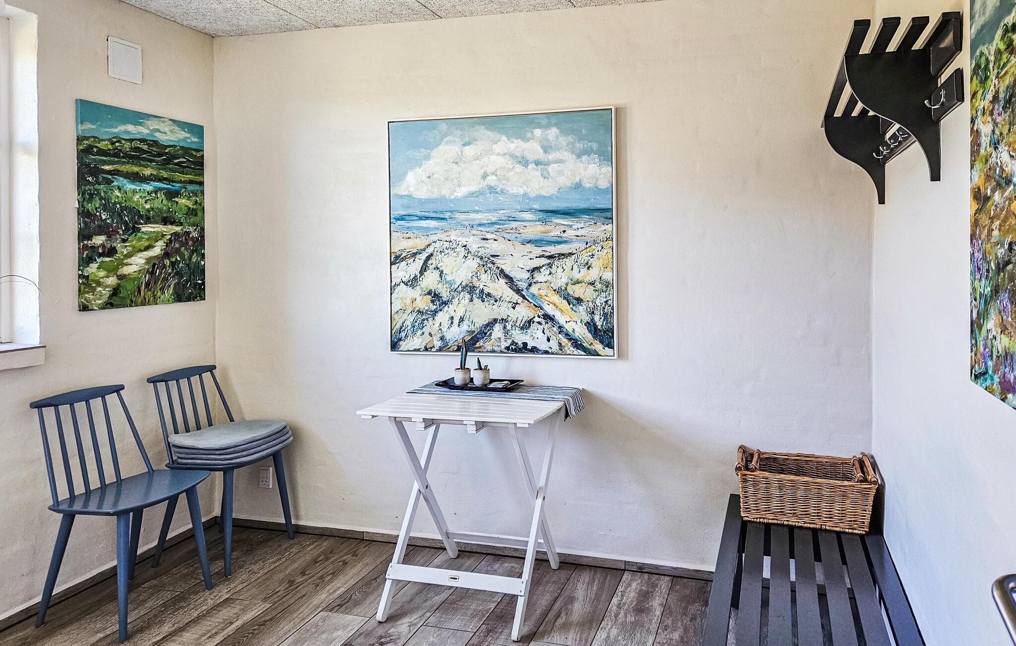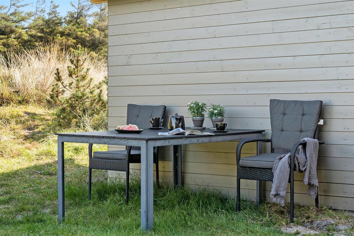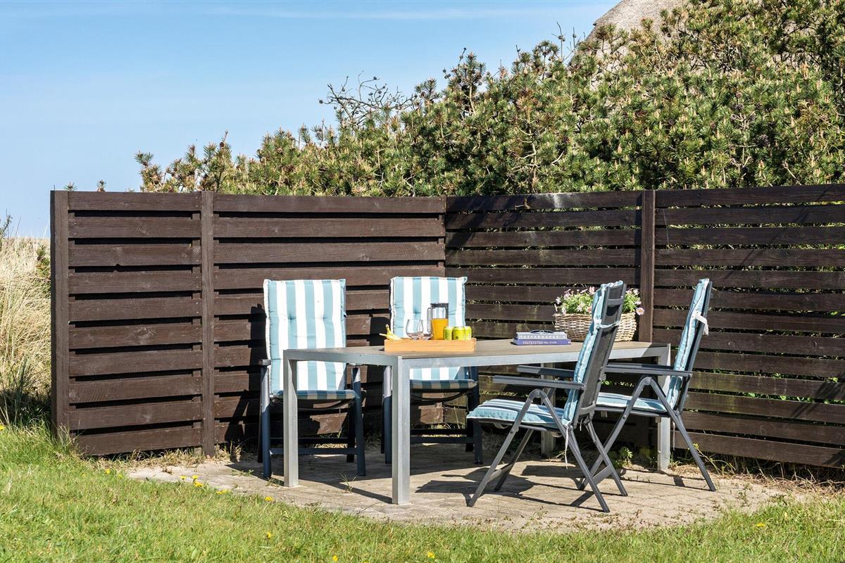 Het charmante huis met rieten dak, idyllisch gelegen in de duinen, nodigt je uit om even uit het dagelijkse leven te stappen en te genieten van de schoonheid van de Deense westkust. Kom binnen in de gezellige woonkamer met zijn mooie decoraties en geniet van de warme, uitnodigende sfeer. De grote ramen bieden overdag een uniek uitzicht aan de eettafel, en 's avonds kun je genieten van de bijzonder mooie avondlucht boven Nymindestrømmen. Maak het jezelf gemakkelijk in de gezellige fauteuils of op de bank en geniet van het uitzicht. De praktische keuken staat tot je beschikking om heerlijke maaltijden te bereiden. De aangrenzende eethoek met panoramische ramen biedt een heerlijke plek om samen te eten terwijl je uitkijkt over de duinen.