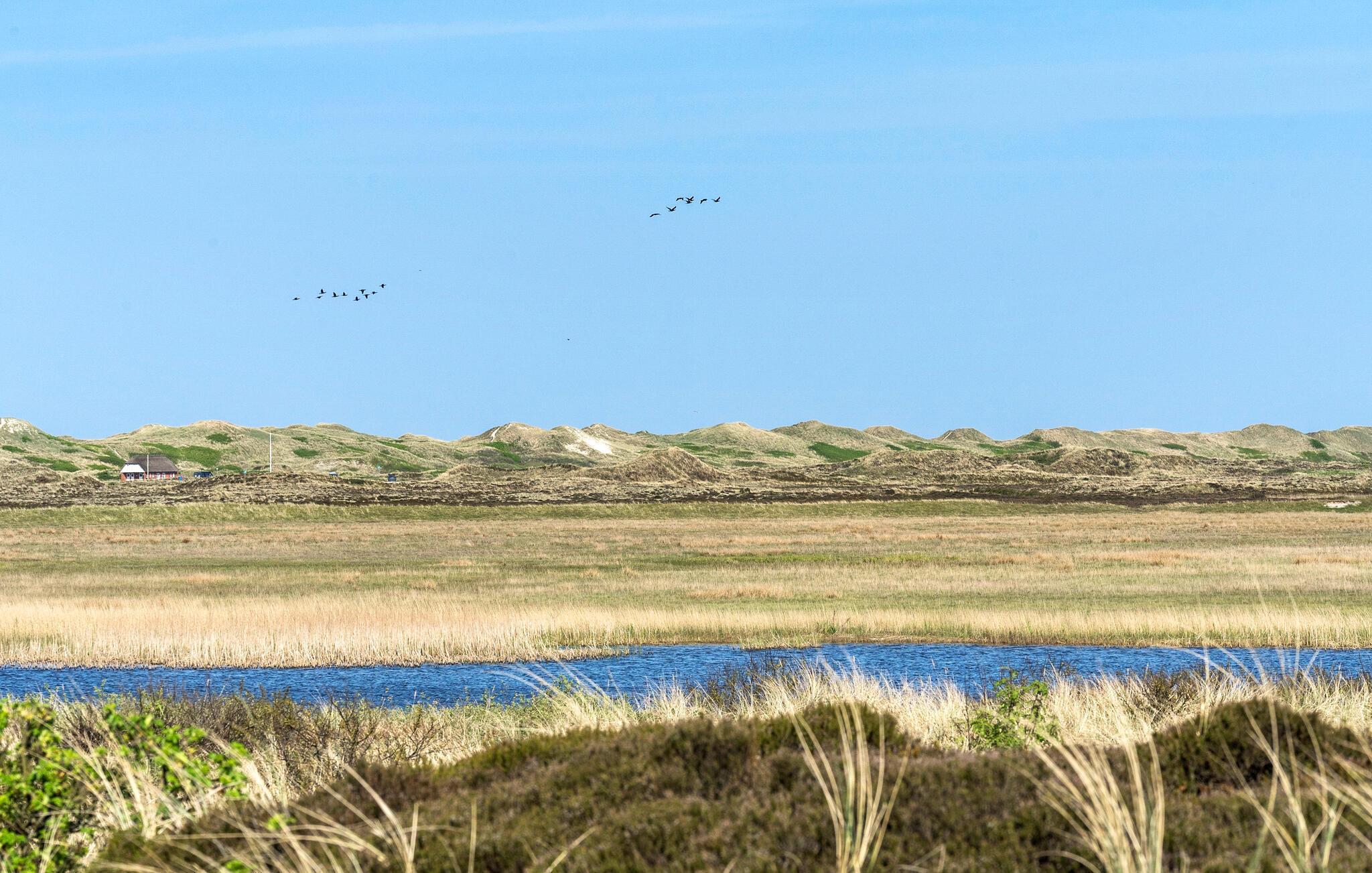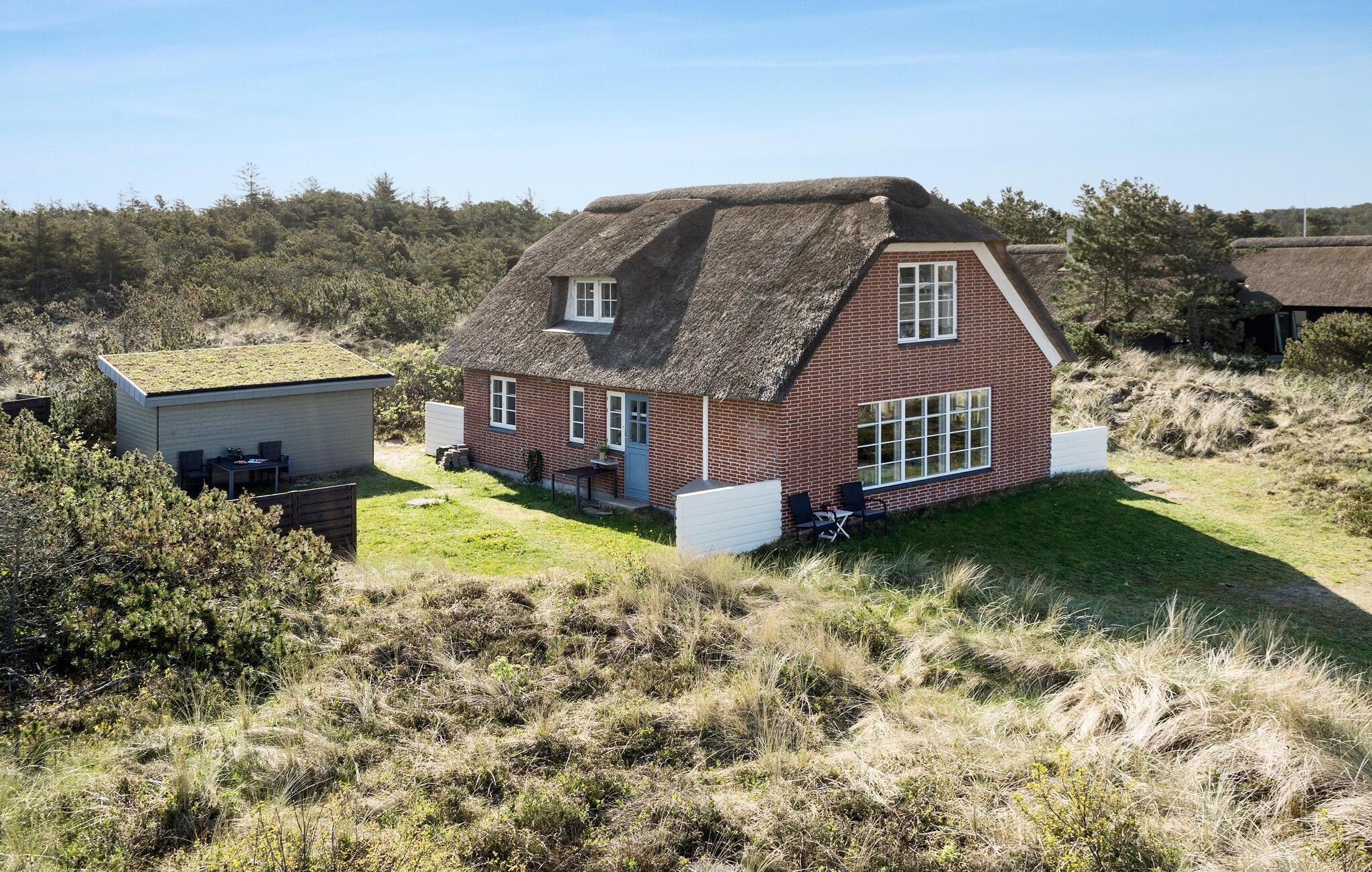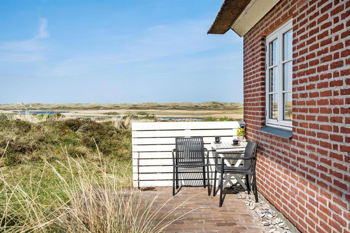Charmant vakantiehuis met rieten dak in natuurgebied bij Nymindegab, met uitzicht op fjord en nabij de Noordzee.