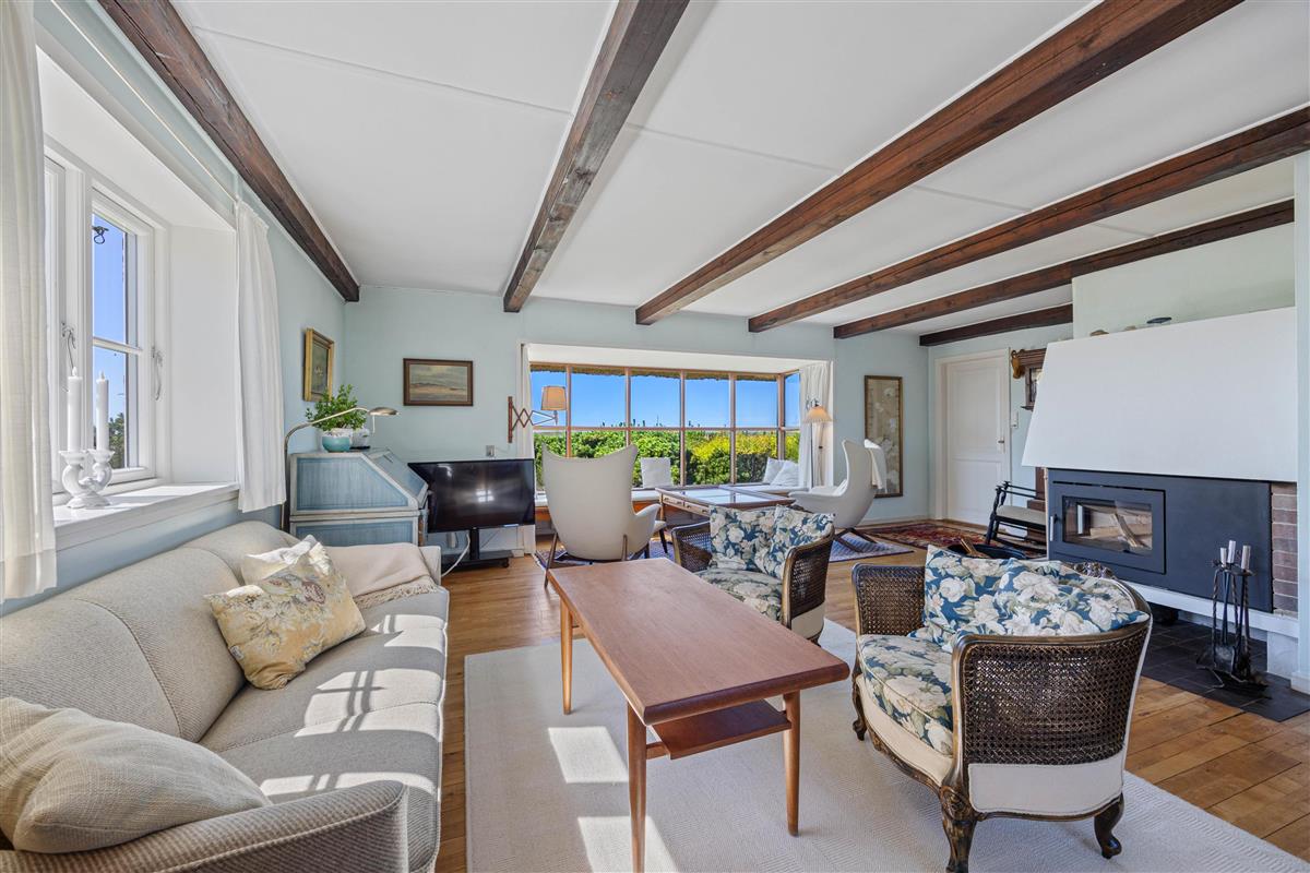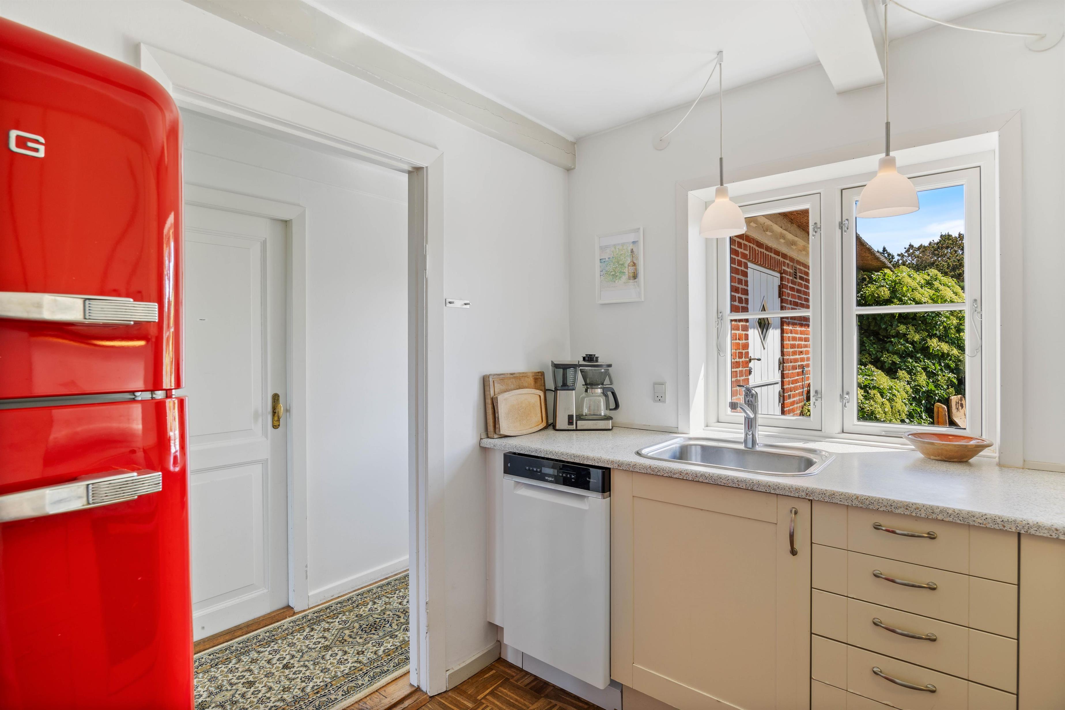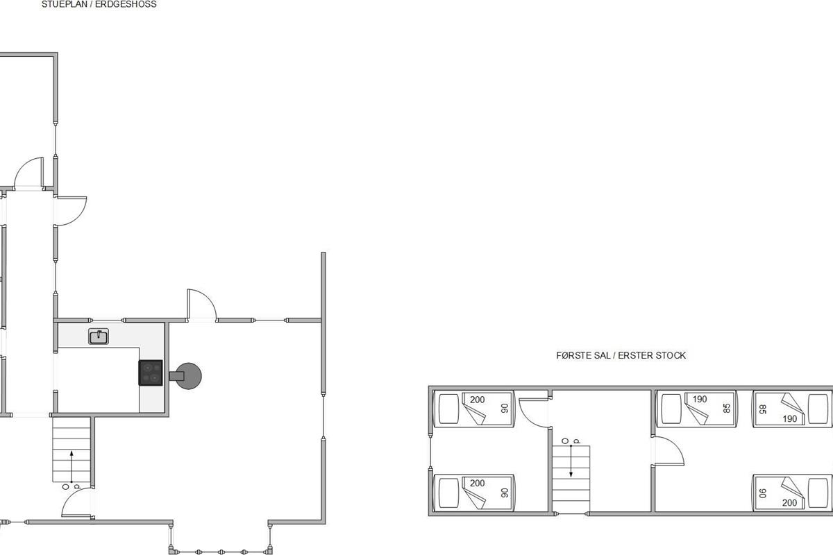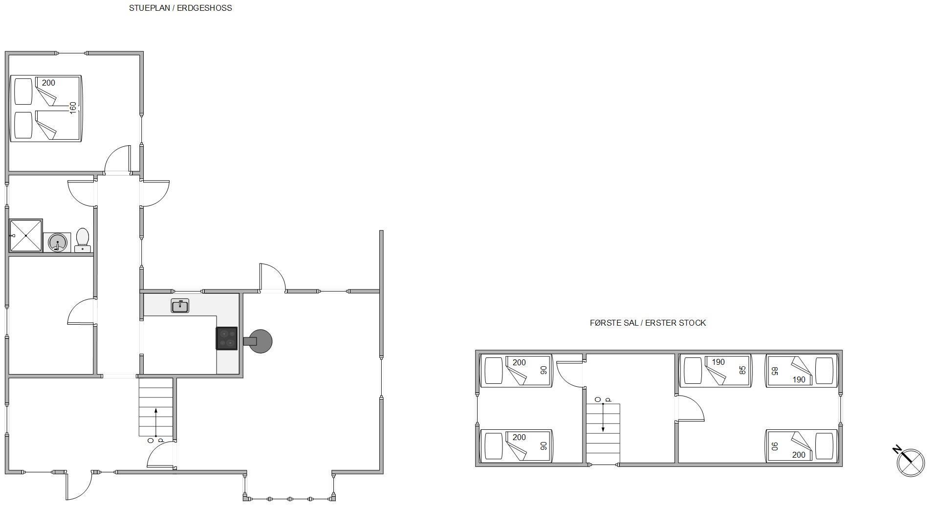 The 125 square metres of living space are spread across two floors, featuring exposed ceiling beams throughout. Please note that the first floor has low ceiling heights. The ground floor comprises separate kitchen, dining room and living room. The dining room offers a perfect gathering spot for meals and perhaps some puzzle-solving afterwards.