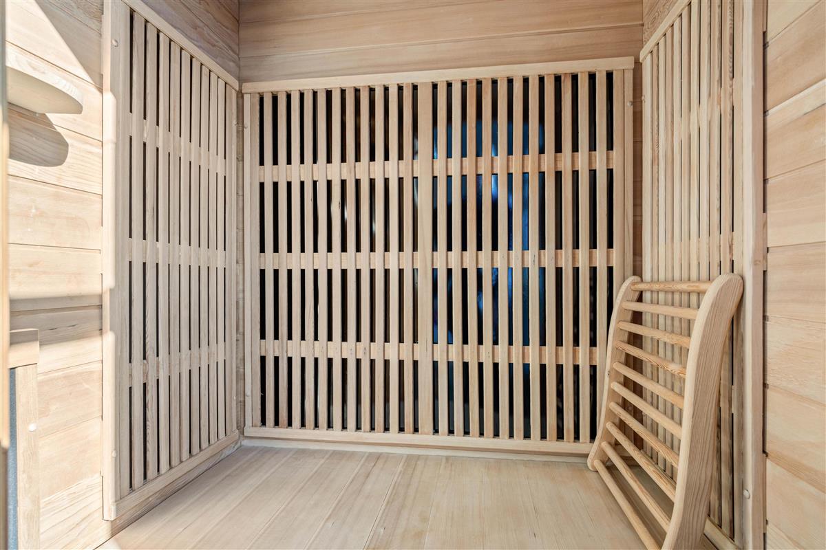 Von einem der Doppelbettschlafzimmer aus habt ihr zudem Zugang zur Infrarotsaune, die euch Entspannung nach einem langen Strandspaziergang verspricht.
