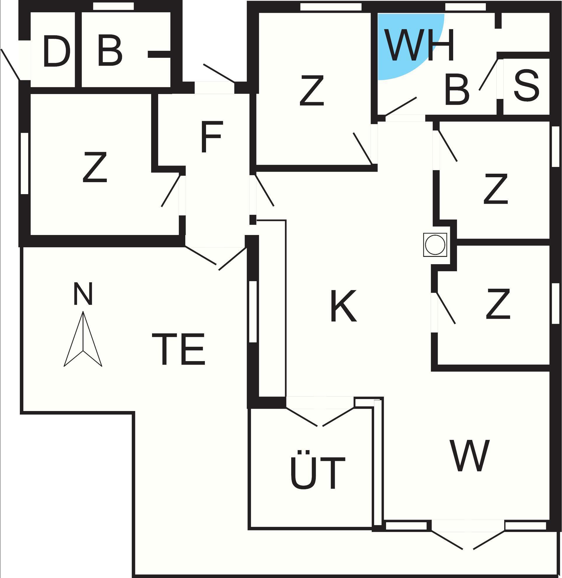 4 Schlafz.: (1DB)+(1DB)+(1DB)+(2B), Kinderbett