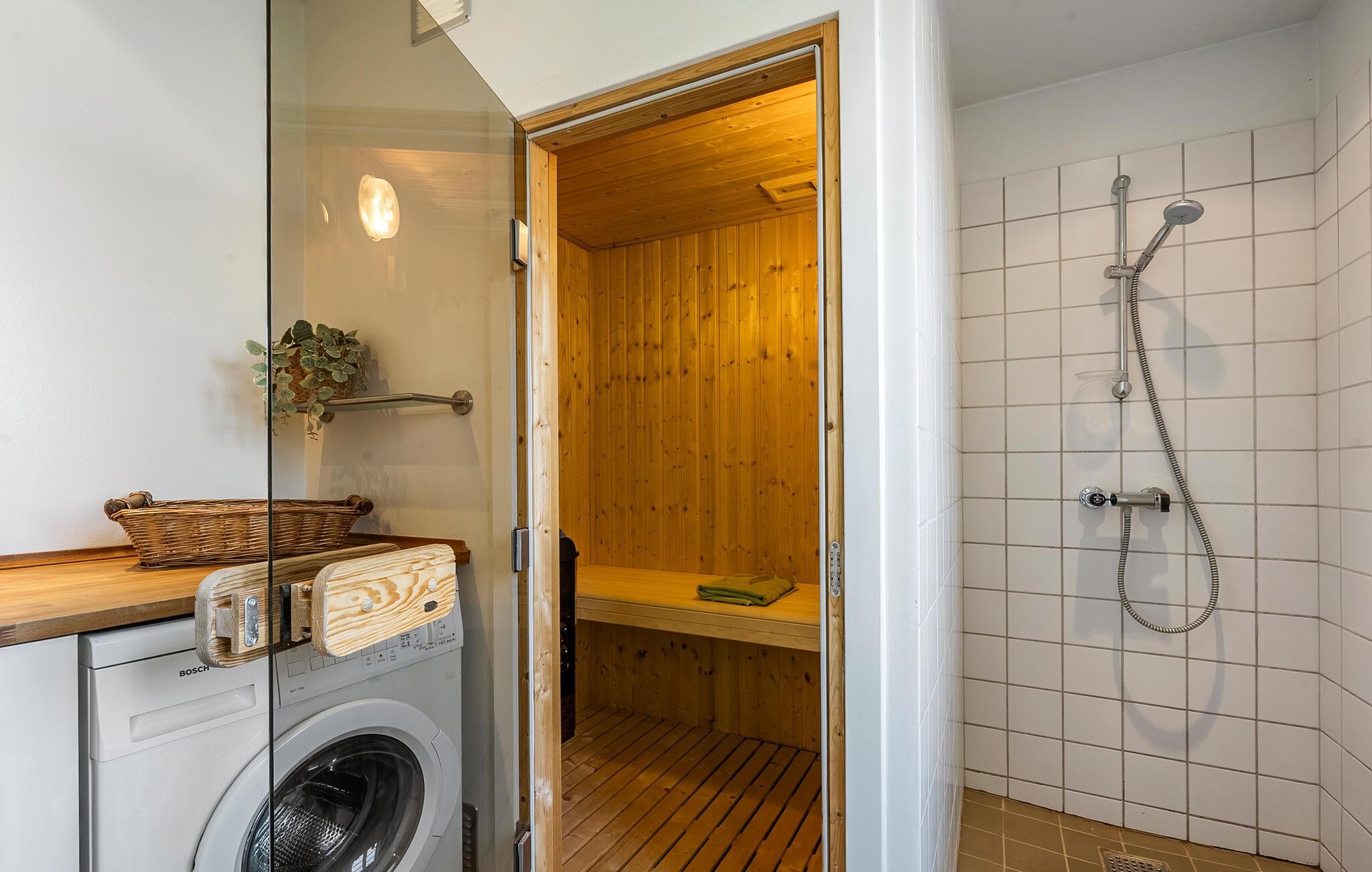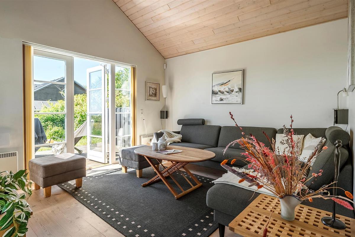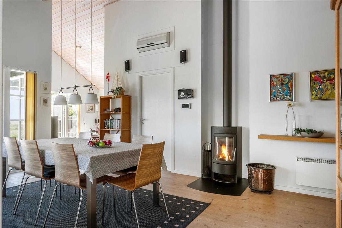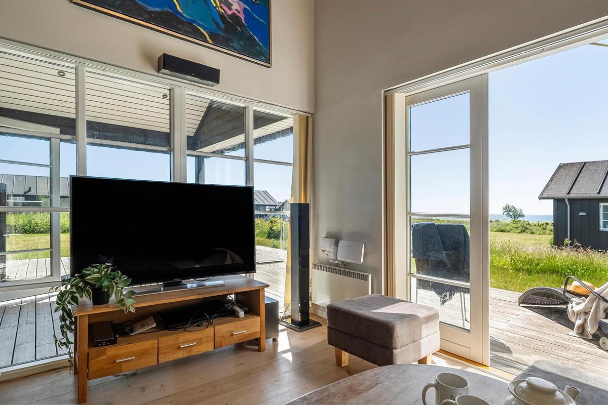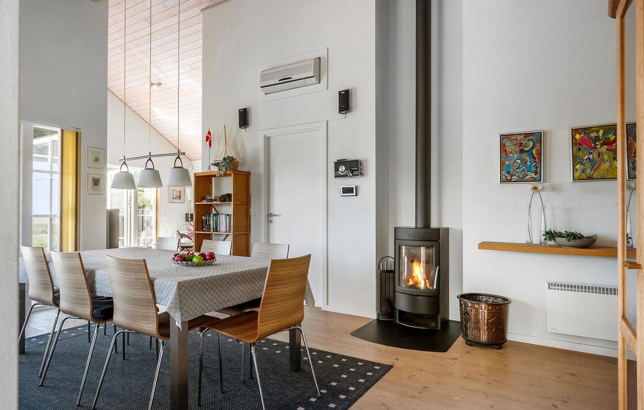 Breng je vakantie door in dit stijlvolle vakantiehuis met prachtig uitzicht op zee en rustgevende stilte. Hier wachten je ideale omstandigheden om te ontspannen, nieuwe energie op te doen en volop te genieten van het leven aan het water. Stap binnen in het lichte, open interieur met hoge plafonds, vriendelijk meubilair en veel natuurlijk licht. Ontspan in de woonkamer met gezellige bank, tv en directe toegang tot het terras. De houtkachel zorgt voor gezellige warmte op koelere dagen. Kook samen in de ruime eetkeuken met houten werkblad en modern design en geniet van je maaltijden aan de eettafel.