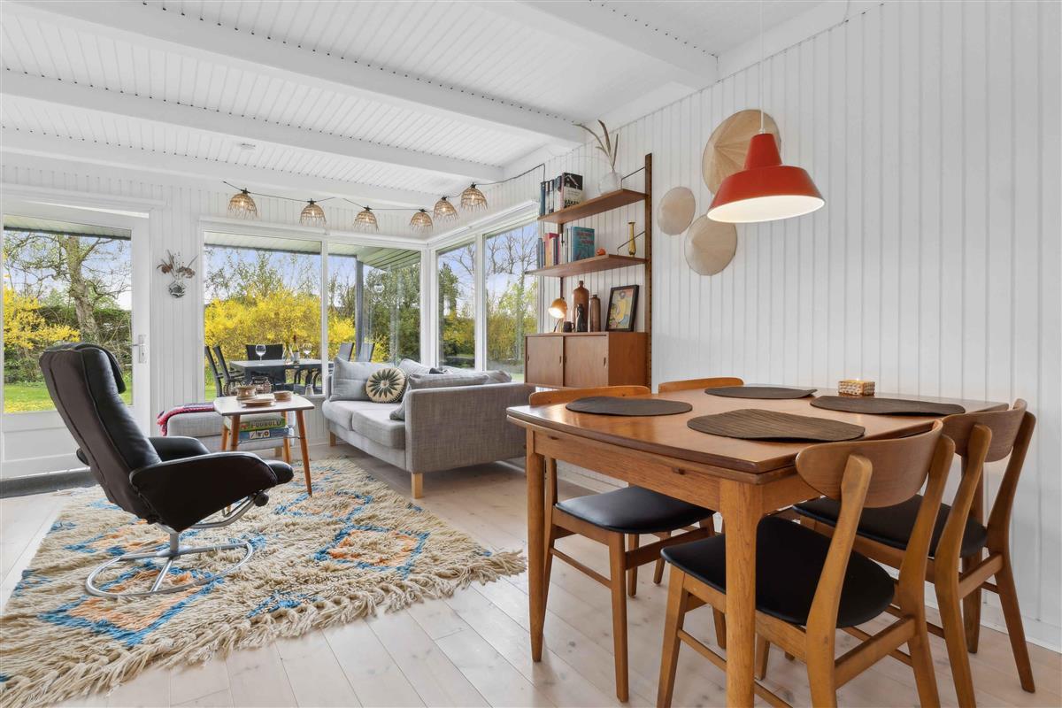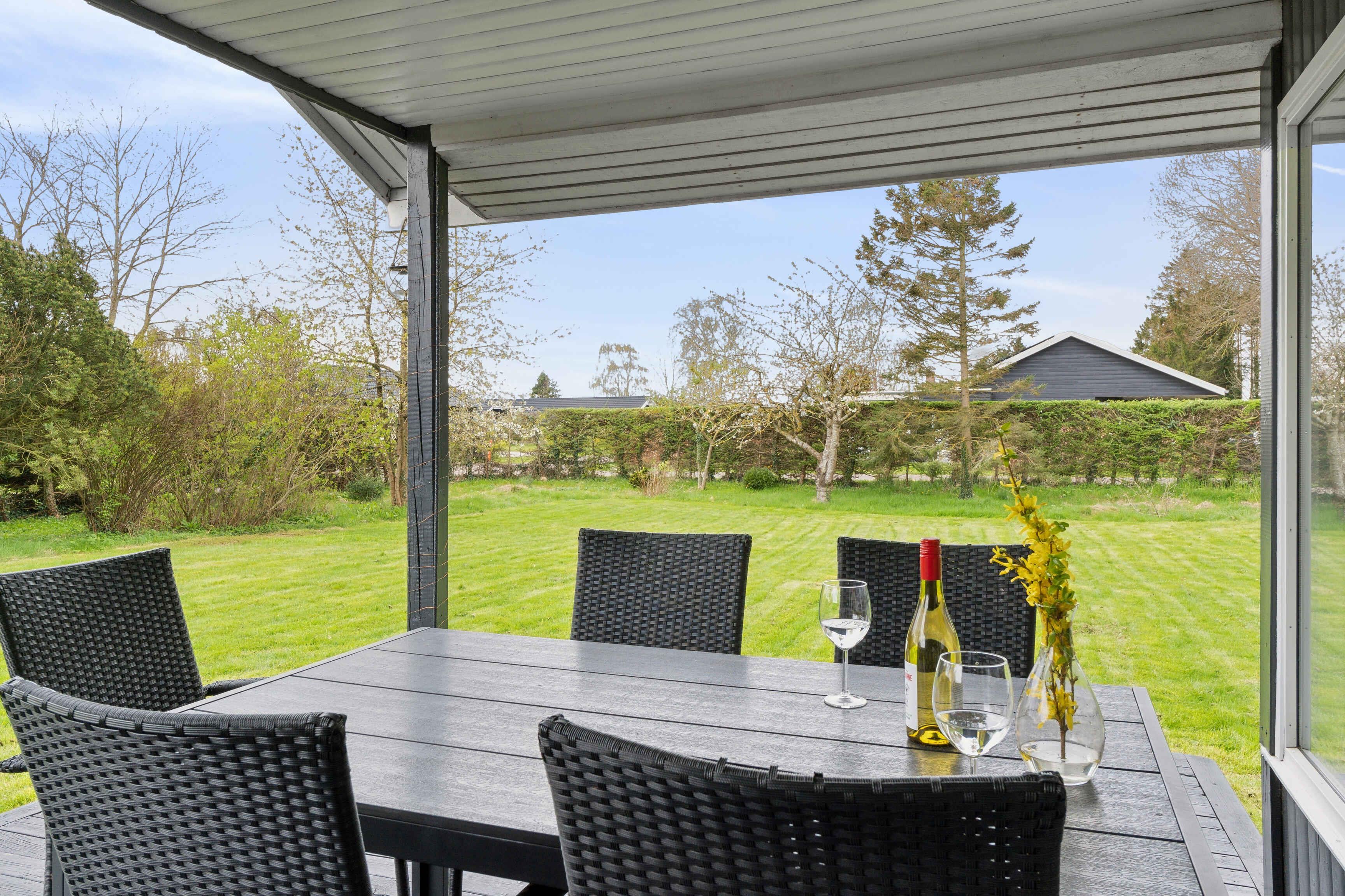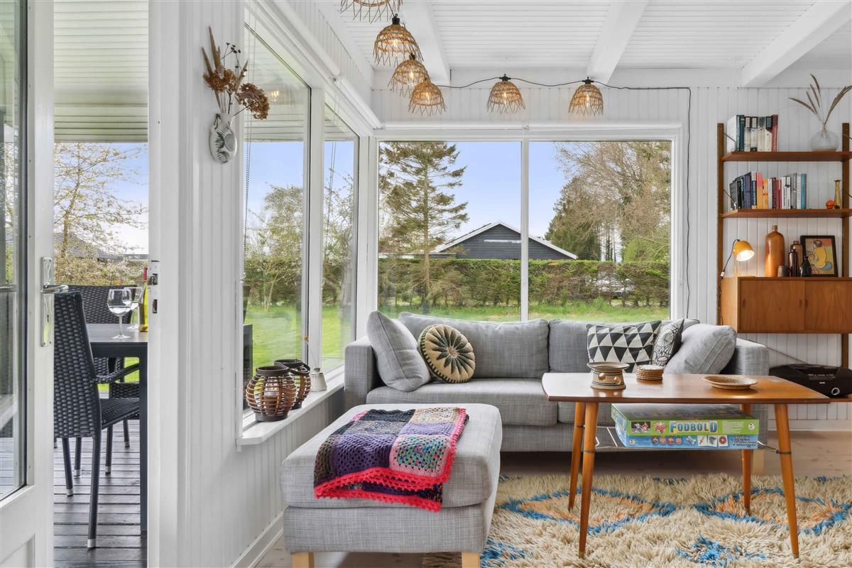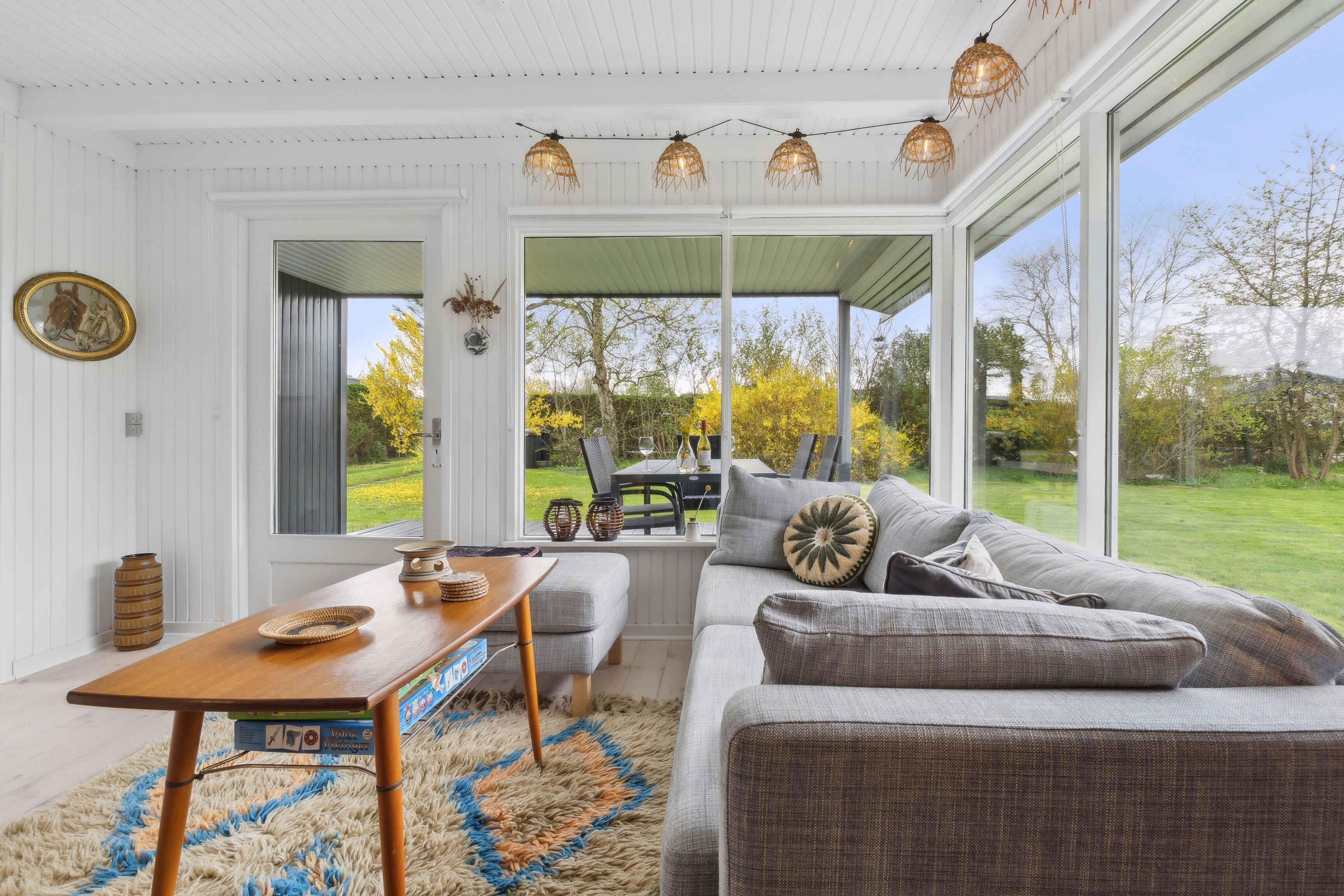 Licht en gezellig vakantiehuis op 300 m van Dyngby Strand met groot terras en tuin, perfect voor rust en natuur.