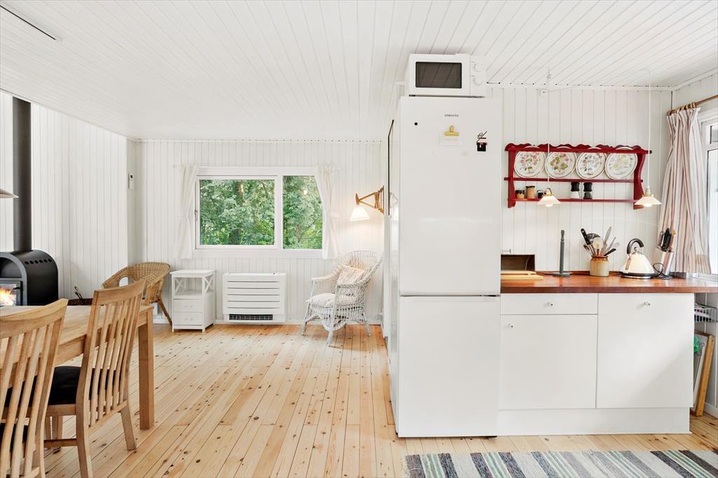 Vakantiehuis in Oddermose Strand , Sydsjælland, met plaats voor 5 volwassenen en 1 kinderen. De woning heeft een gezellig interieur met o.a. een houtkachel, en beschikt daarnaast over een vaatwasser.