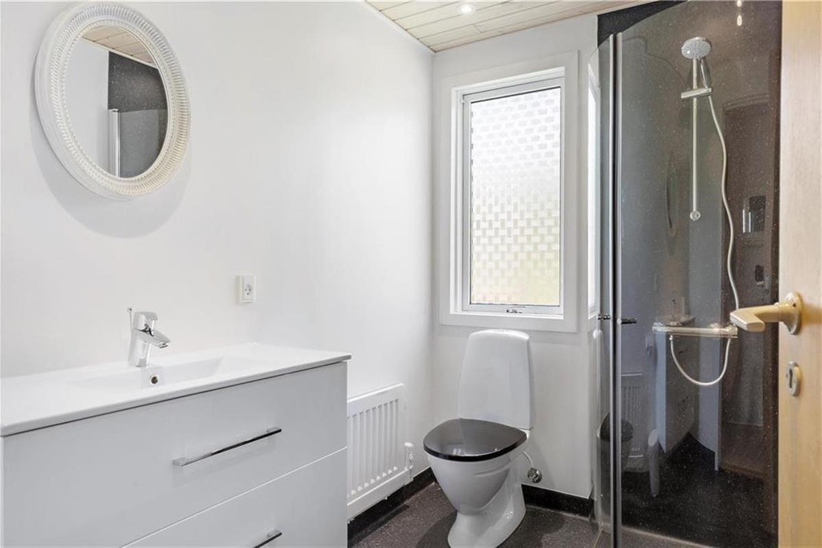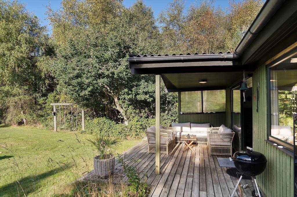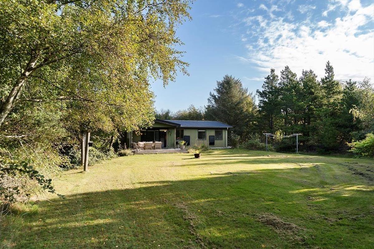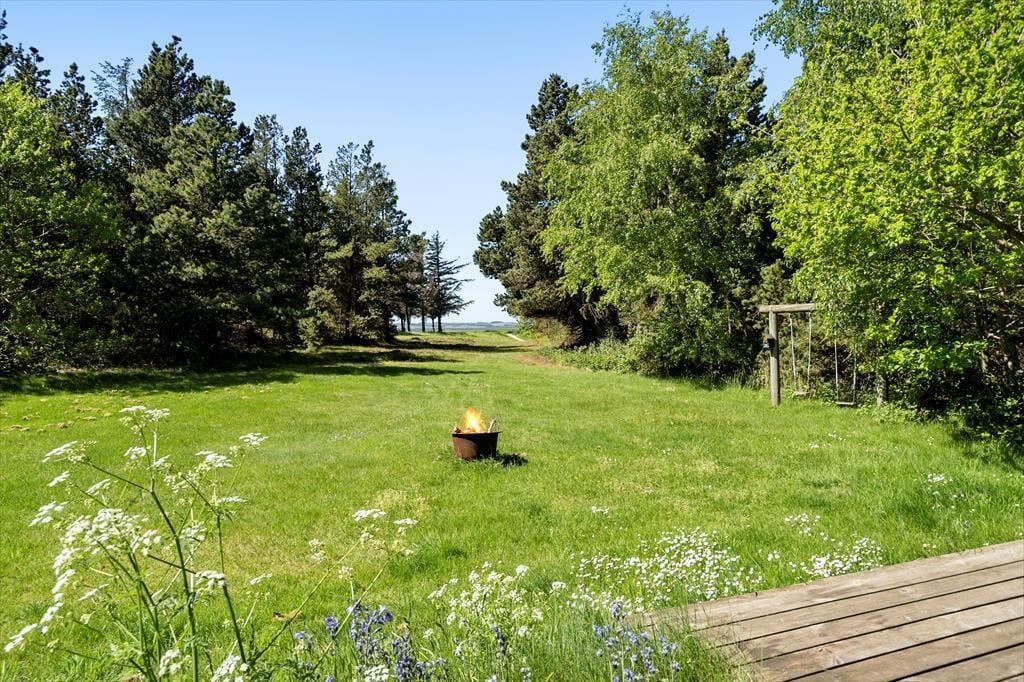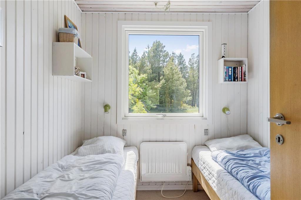 Lediglich 100 Meter trennen dieses Urlaubsdomizil vom Limfjord. Im Hausinneren blicken Sie zwischen hohen Bäumen hindurch in Richtung Wasser. Es ist etwas ganz Besonderes, unmittelbar nach dem Erwachen am Morgen diesen Blick zu genießen und dabei den singenden Vögeln in den Baumwipfeln zu lauschen. An einem Ende des 87 m² großen Ferienhauses treffen Sie auf drei Schlafräume mit insgesamt sechs Schlafplätzen und auf das Badezimmer, das mit einer Dusche, einer Waschmaschine und einem Wäschetrockner ausgestattet ist. Die andere Hälfte des Hauses ist dem schönen Wohnraum und der offen integrierten Küche gewidmet. Der Wohnraum besticht mit hohen Decken und einem direkten Zugang zu Terrasse und Garten. Behagliche Temperaturen garantieren hier der Kaminofen und die Wärmepumpe. An sommerlich warmen Tagen verwöhnt die Wärmepumpe mit ihrer zusätzlichen Kühlfunktion.