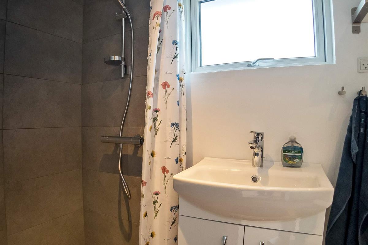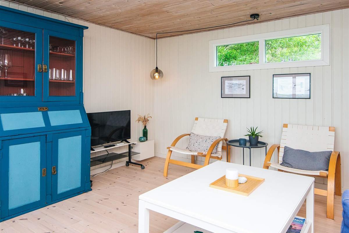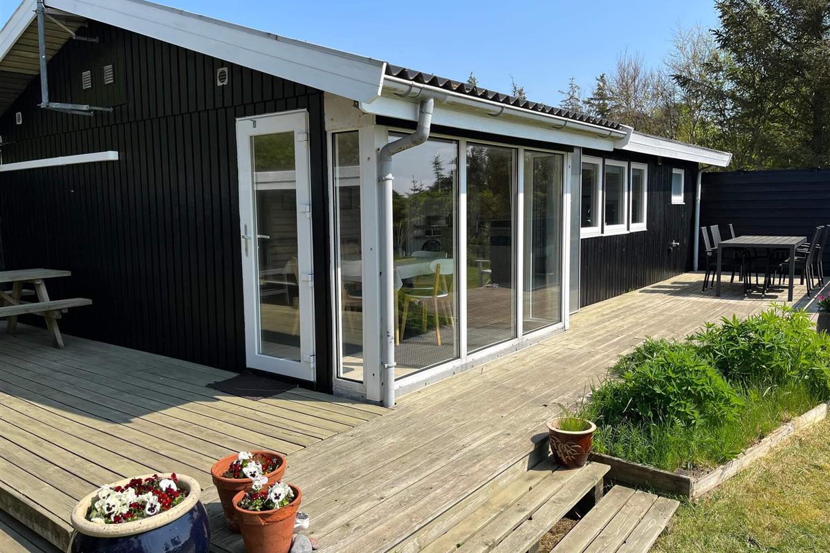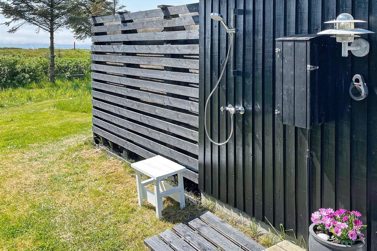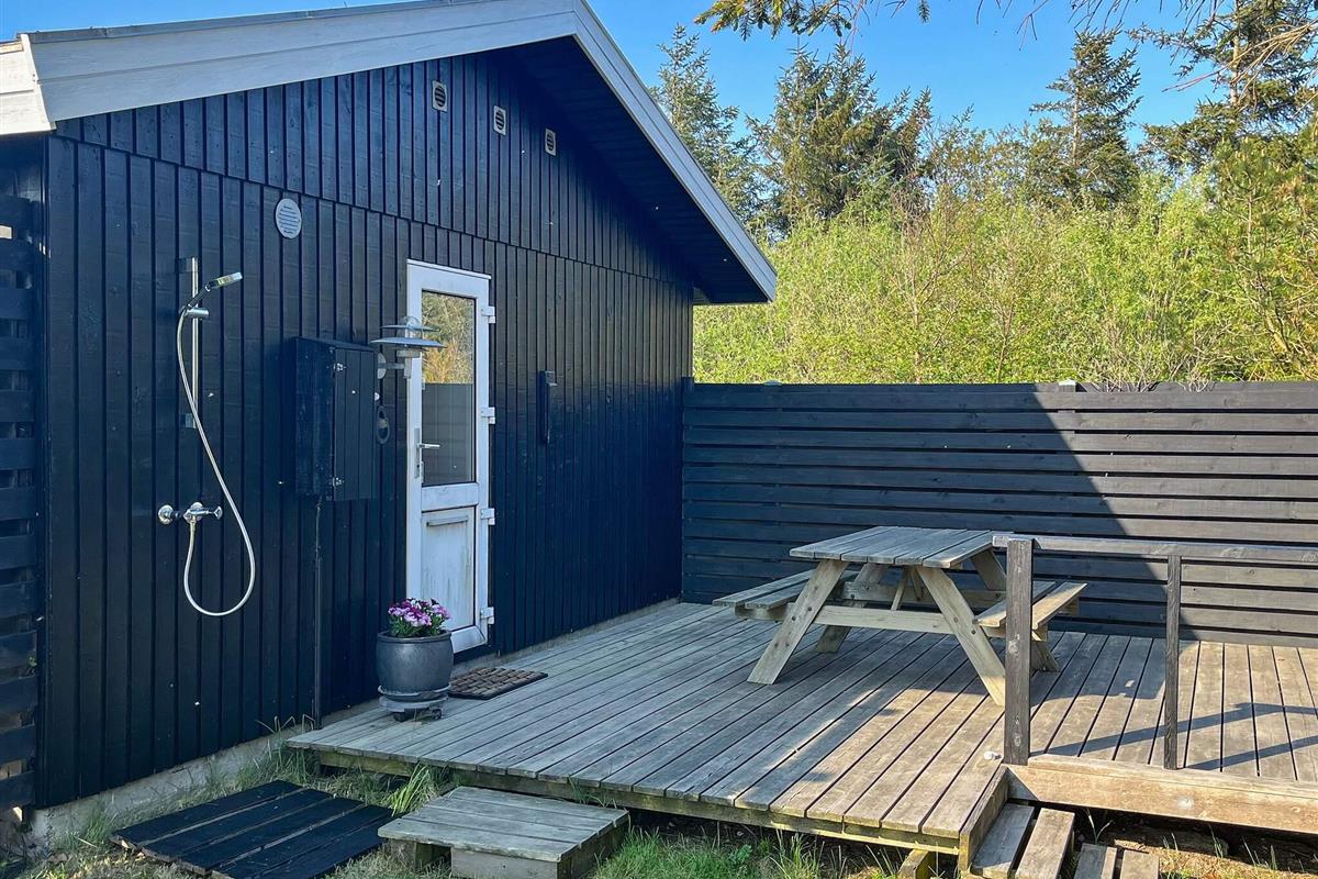 Das Haus verfügt über mehrere offene Terrassen mit guten Gartenmöbeln, Tisch- und Bankgarnituren, Sonnenliegen und einem Gasgrill, wo Sie Ihr Abendessen genießen können, während die Sonne über dem Limfjord untergeht. Es gibt auch einen geschlossenen Schuppen/eine überdachte Terrasse, die Schutz vor Wetter und Wind bietet.