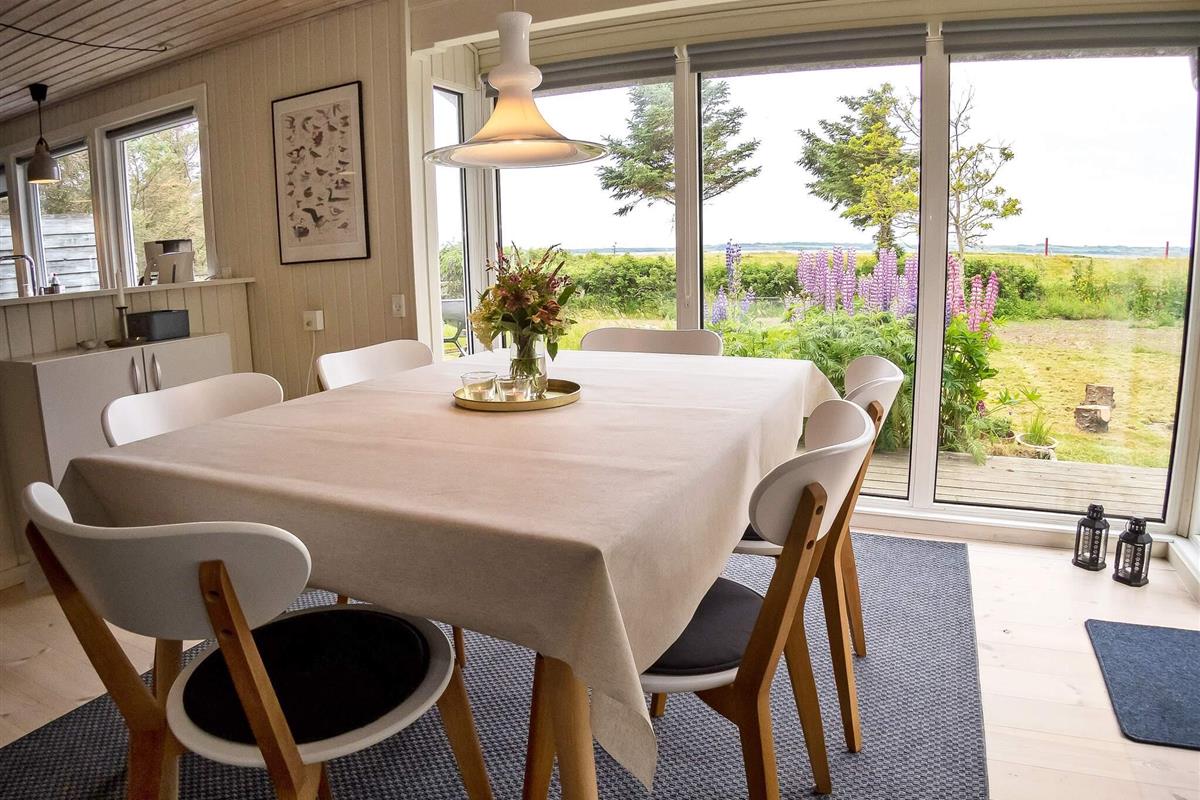 Der Garten des Ferienhauses bietet reichlich Gelegenheit, den Urlaub in Ruhe zu genießen und sich beim Ballspielen und Spielen auszutoben. Darüber hinaus gibt es auf dem 3.150 m² großen Grundstück mehrere gemütliche Ecken, die sich ideal zum Lesen eines guten Buches mit Blick auf die Wellen des Limfjords eignen.