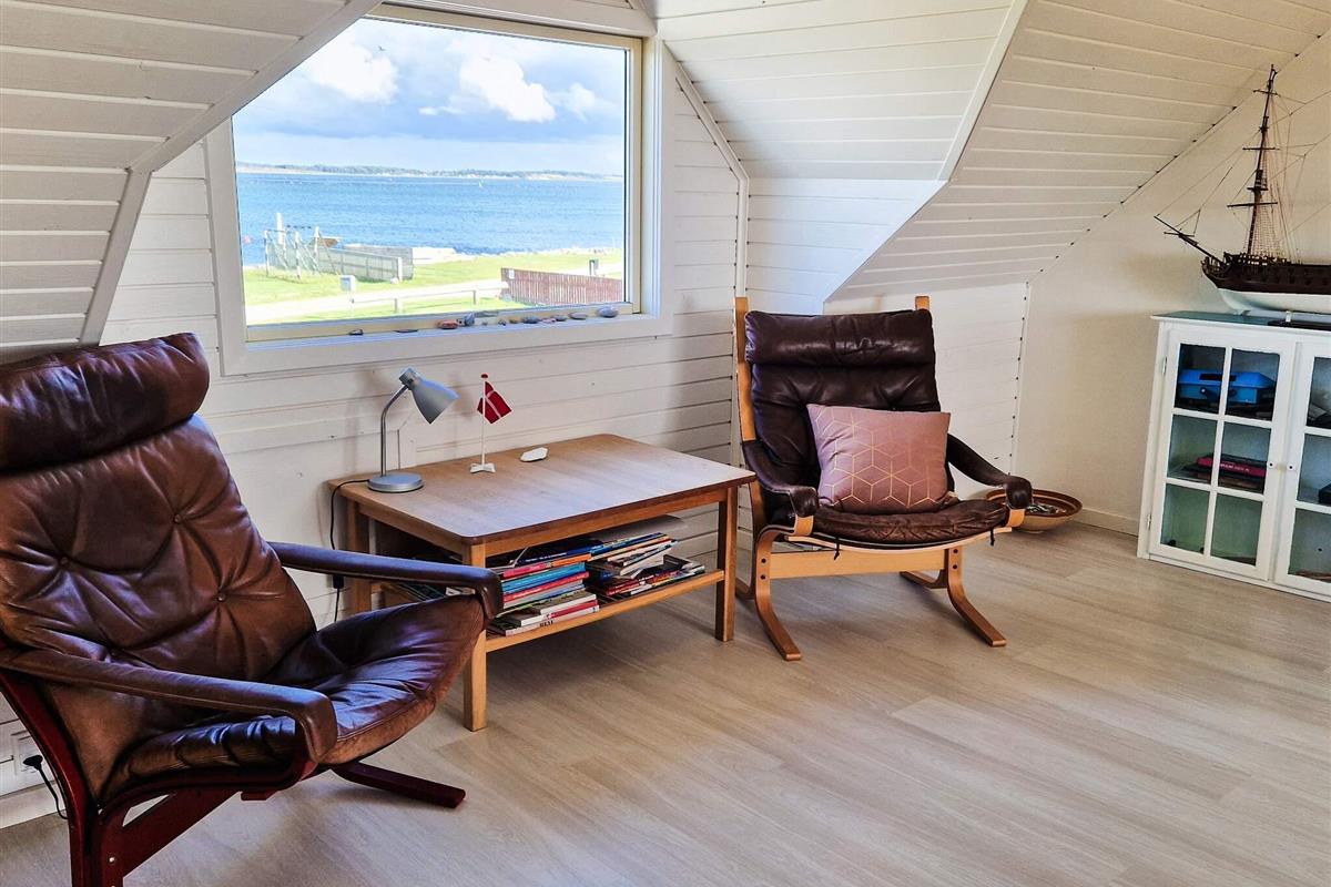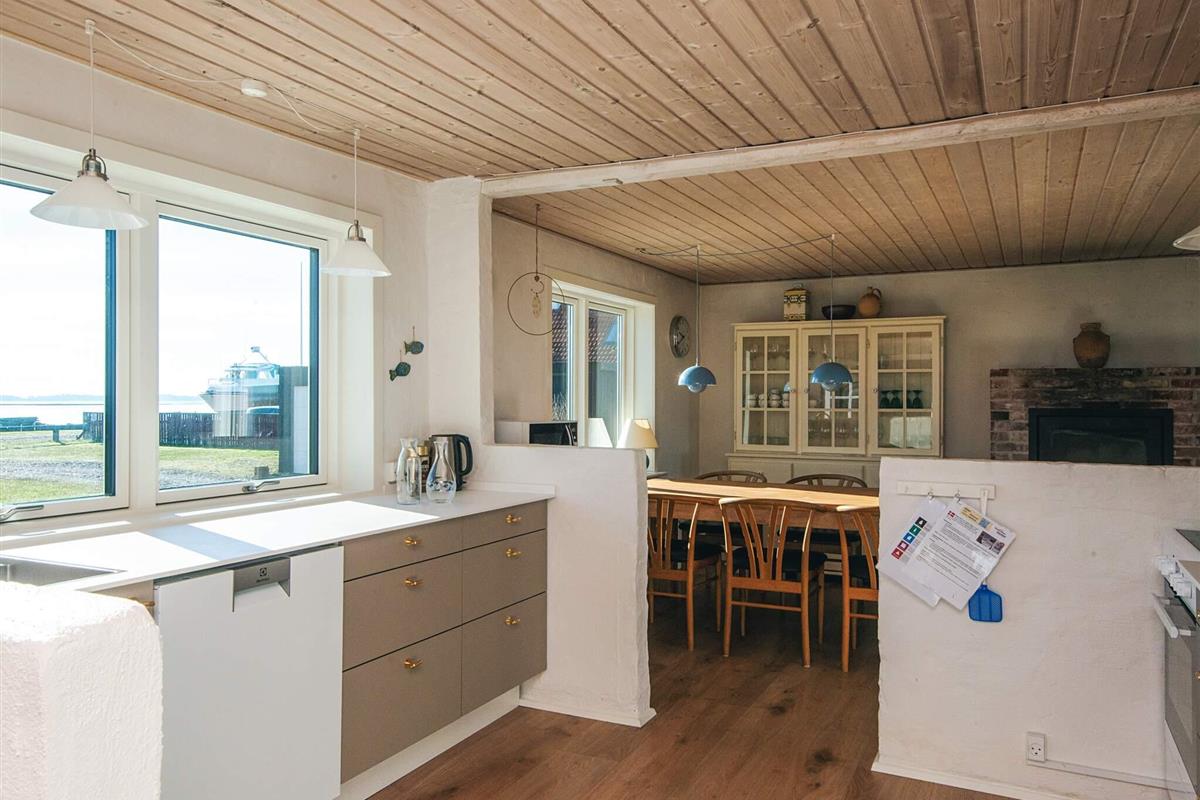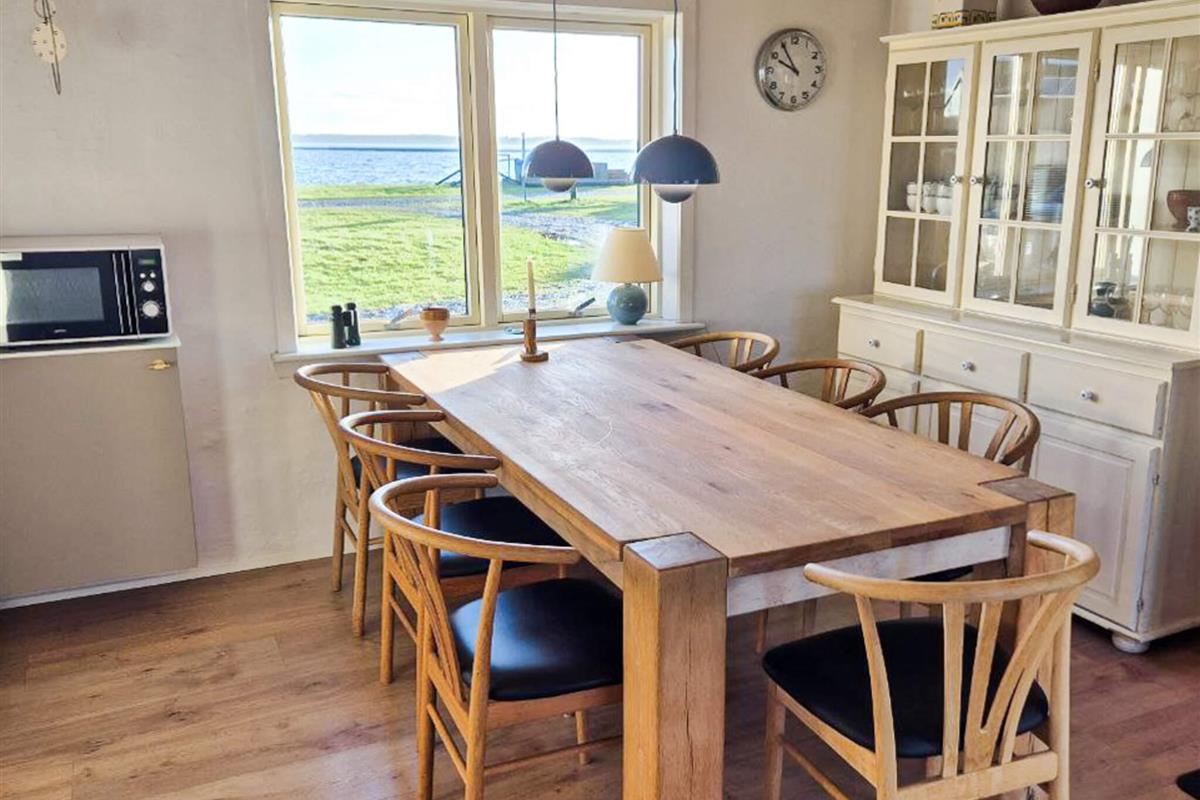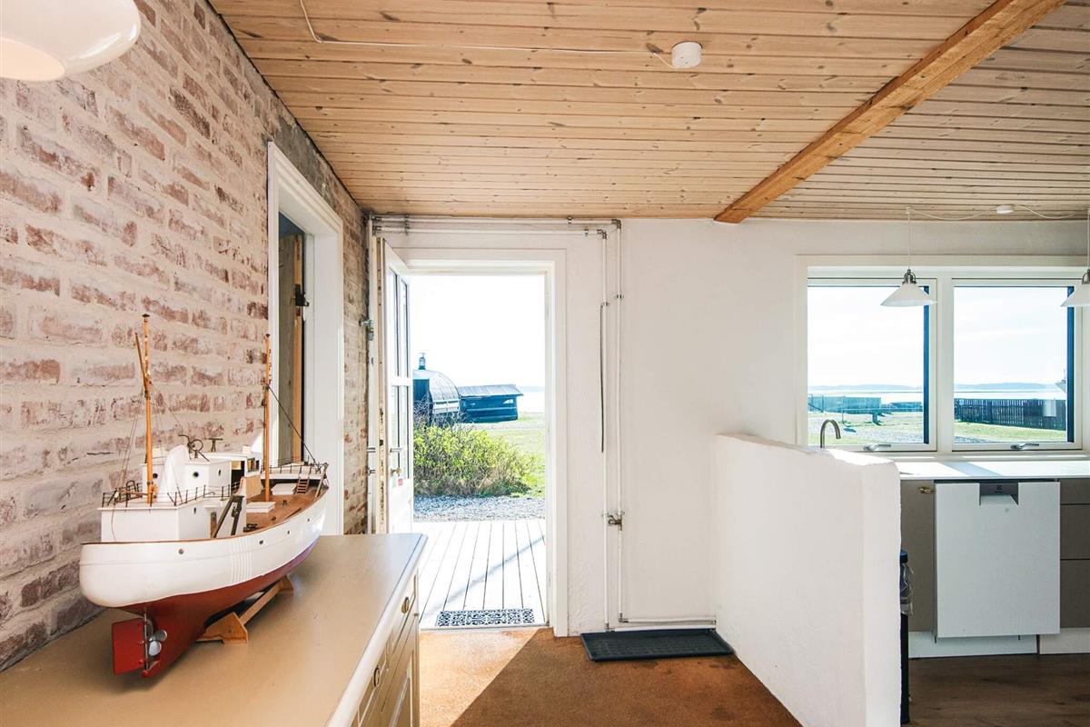 Dieses wunderschöne Ferienhaus am Limfjord bietet ein unglaubliches Erlebnis mit einem 360-Grad-Blick auf den Fjord und ist damit der perfekte Ort für alle, die sowohl Entspannung als auch Abenteuer suchen. Das Haus, das bis zu 8 Personen beherbergen kann, liegt auf einer Landzunge, so dass Sie von jedem Fenster aus einen atemberaubenden Blick auf das Wasser haben. Von hier aus können Sie stündlich die Öffnung der Oddesundbrücke beobachten und den Schiffsverkehr durch die Meerenge verfolgen.