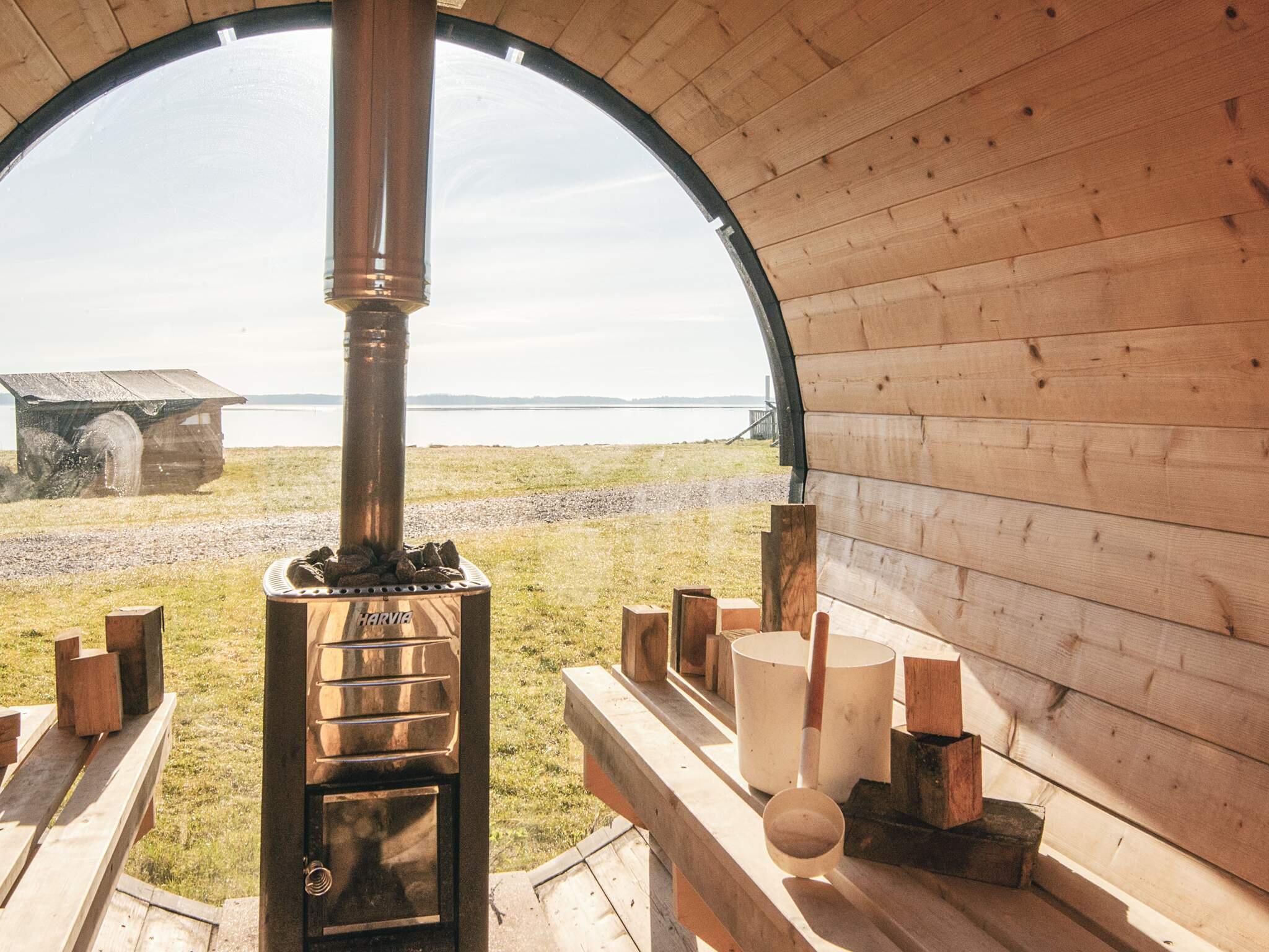 Wer sich gerne im Freien aufhält, wird das große Naturgrundstück (2040 m²) mit Terrasse und Liegestühlen genießen, von wo aus man den Panoramablick auf das Wasser genießen kann. Eine Garage mit Tischtennisplatte, Darts und Longboard sorgt für zusätzlichen Spaß. Das Haus stellt auch 3 Seekajaks zur Verfügung (die Benutzung erfolgt auf eigene Gefahr, Schwimmwesten sind in der Garage erhältlich).
