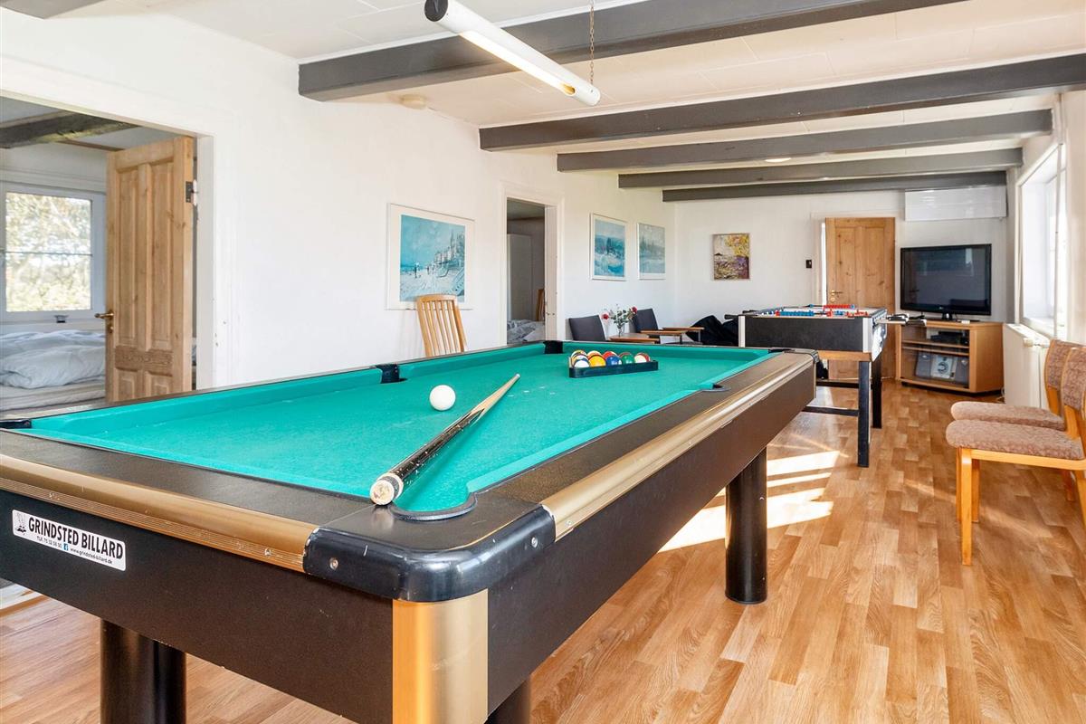 Dieses 300 m² große und geräumige Poolhaus liegt in einer sehr malerischen Gegend direkt am Fjord. Von dem 4.700 m² großen Naturgrundstück hat man Blick zum Wasser. Wenn Sie während Ihres Urlaubs etwas Aktivität suchen, bietet dieses Haus für alle etwas. Großer, geräumiger Aktivitätsraum mit Billardtisch, Tischfußball, Tischtennis und Darts. Draußen gibt es Fußballtore, Schaukeln und einen Sandkasten. An den sonnigen Urlaubstagen können Sie im nur 500 m entfernten Limfjord schwimmen gehen oder die Sonne auf der Terrasse genießen, die mit Gartenmöbeln und einem Grill ausgestattet ist.