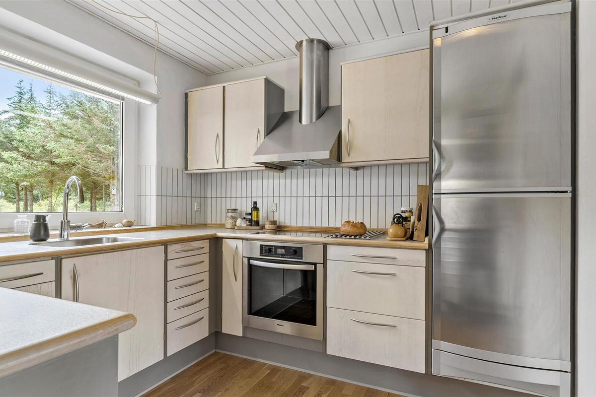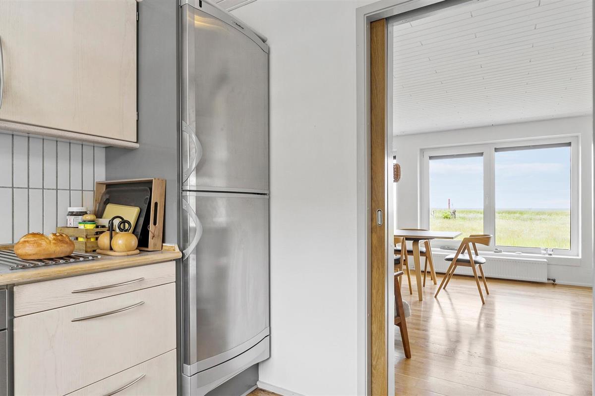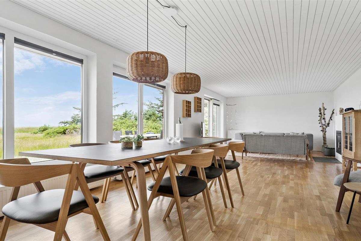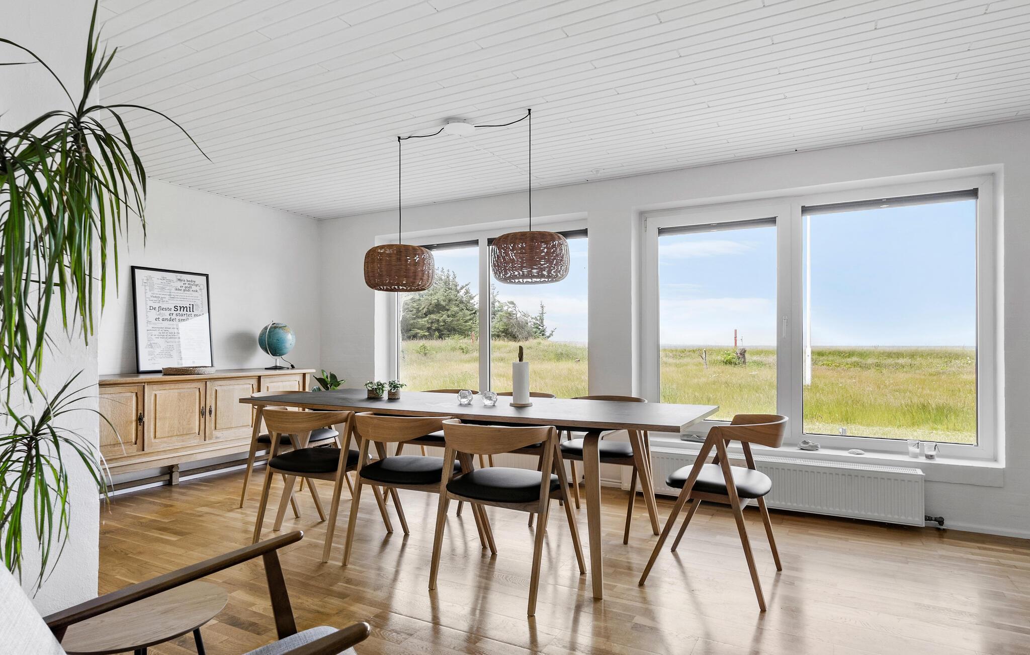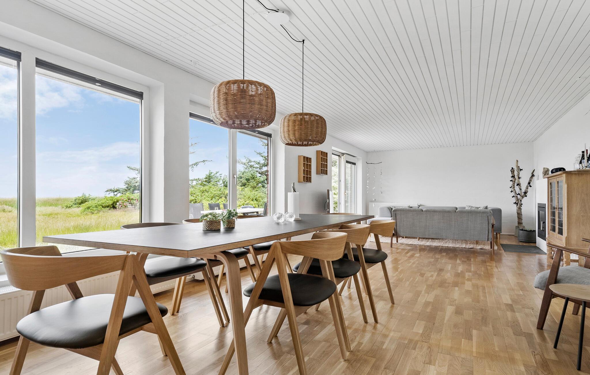 Je vakantiehuis, met ruimte voor een groot gezin, combineert comfort, natuurbeleving en een gezellige sfeer. Het aantrekkelijk ontworpen interieur creëert een warme en uitnodigende omgeving die uitnodigt om te ontspannen. Het terras is de ideale plek om te genieten van de rust van de natuur, of het nu een barbecue-avond is met familie en vrienden of ontspannende uren in de buitenlucht met uitzicht op de Nissum Bredning fjord. De goed uitgeruste keuken laat niets te wensen over en stelt je in staat om heerlijke maaltijden te bereiden, waar je vervolgens in alle rust van kunt genieten in de lichte en gezellige eethoek. Vanaf hier heb je ook een prachtig uitzicht op de fjord.