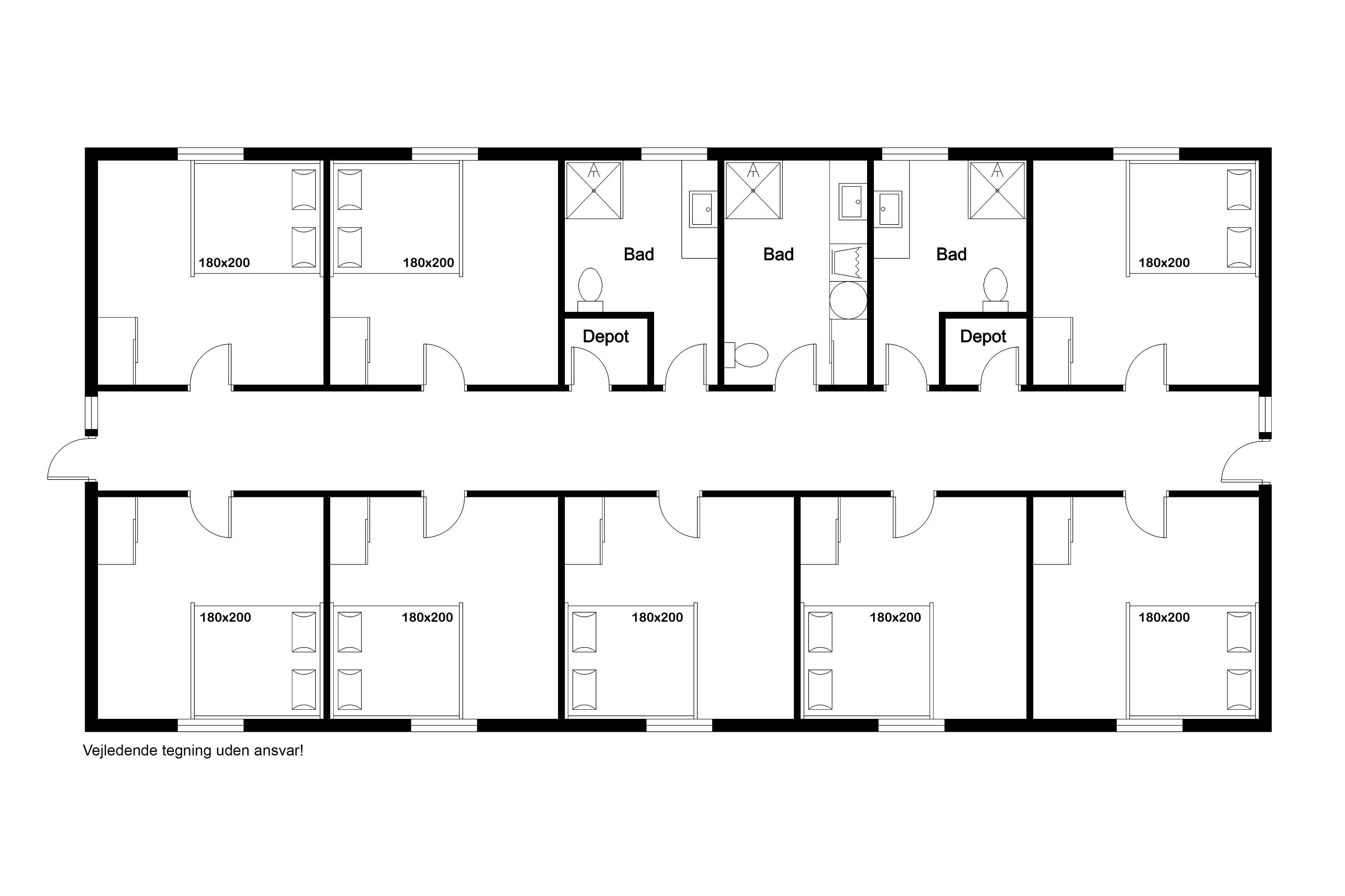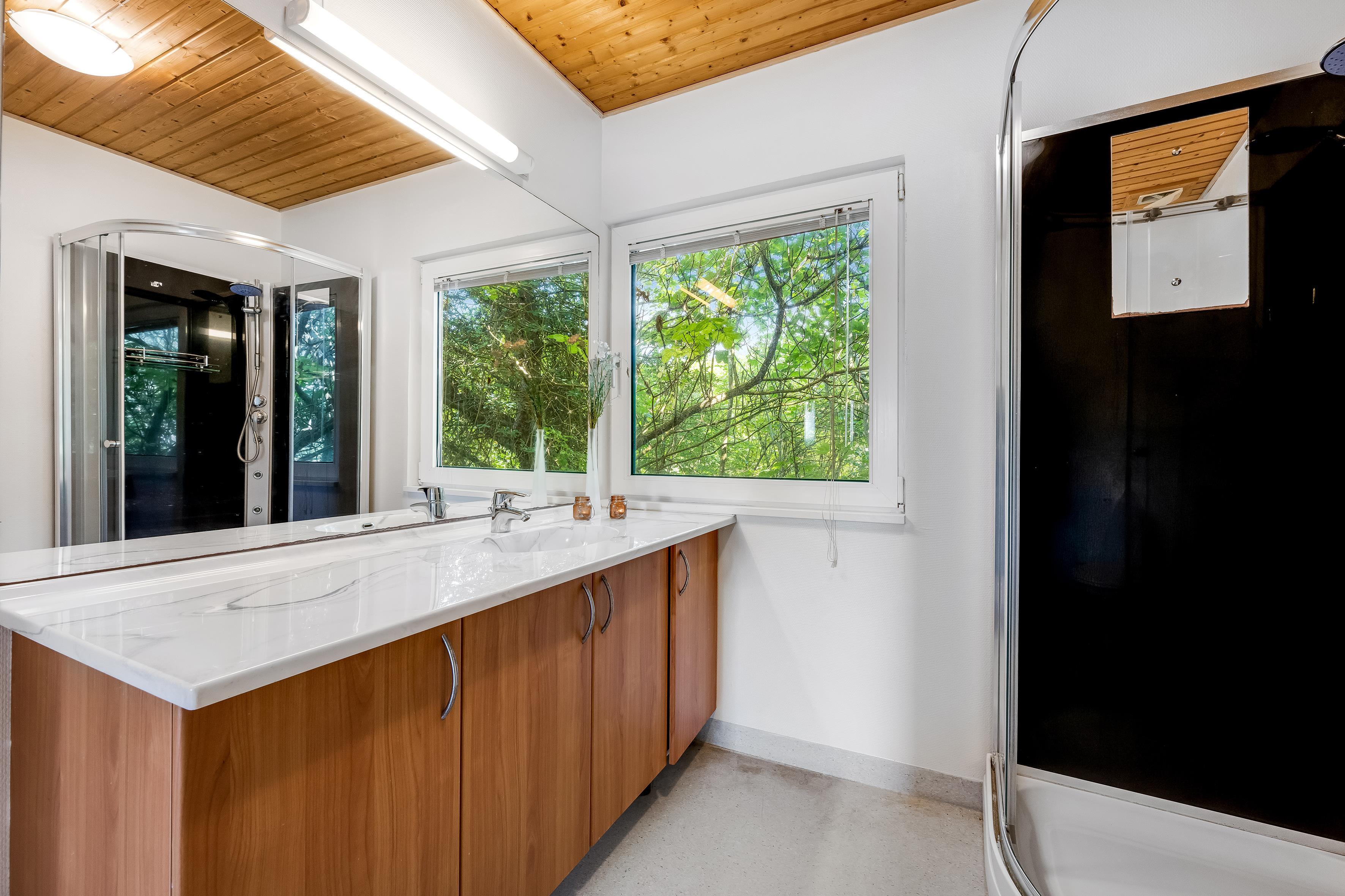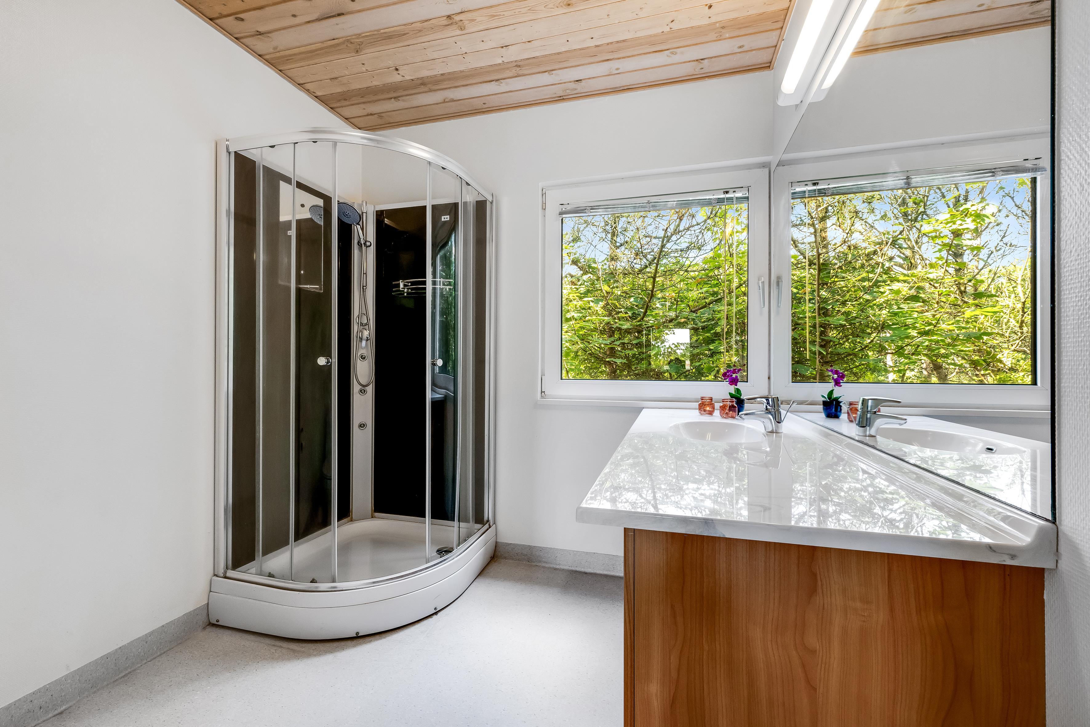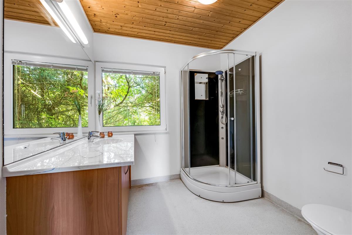 With an impressive house area of 700 square meters and a plot of 3477 square meters, there is plenty of room to accommodate up to 40 people. The house has 13 bedrooms, including 5 rooms with 1 double bed each, 6 rooms with 1 double bed each and 2 bunk beds, 1 room with 4 bunk beds and 1 room with 2 bunk beds, making it ideal for large groups. There are also 6 bathrooms and 2 guest toilets, so there is never a need to wait in line. For the little guests, both a cot and a high chair are available.