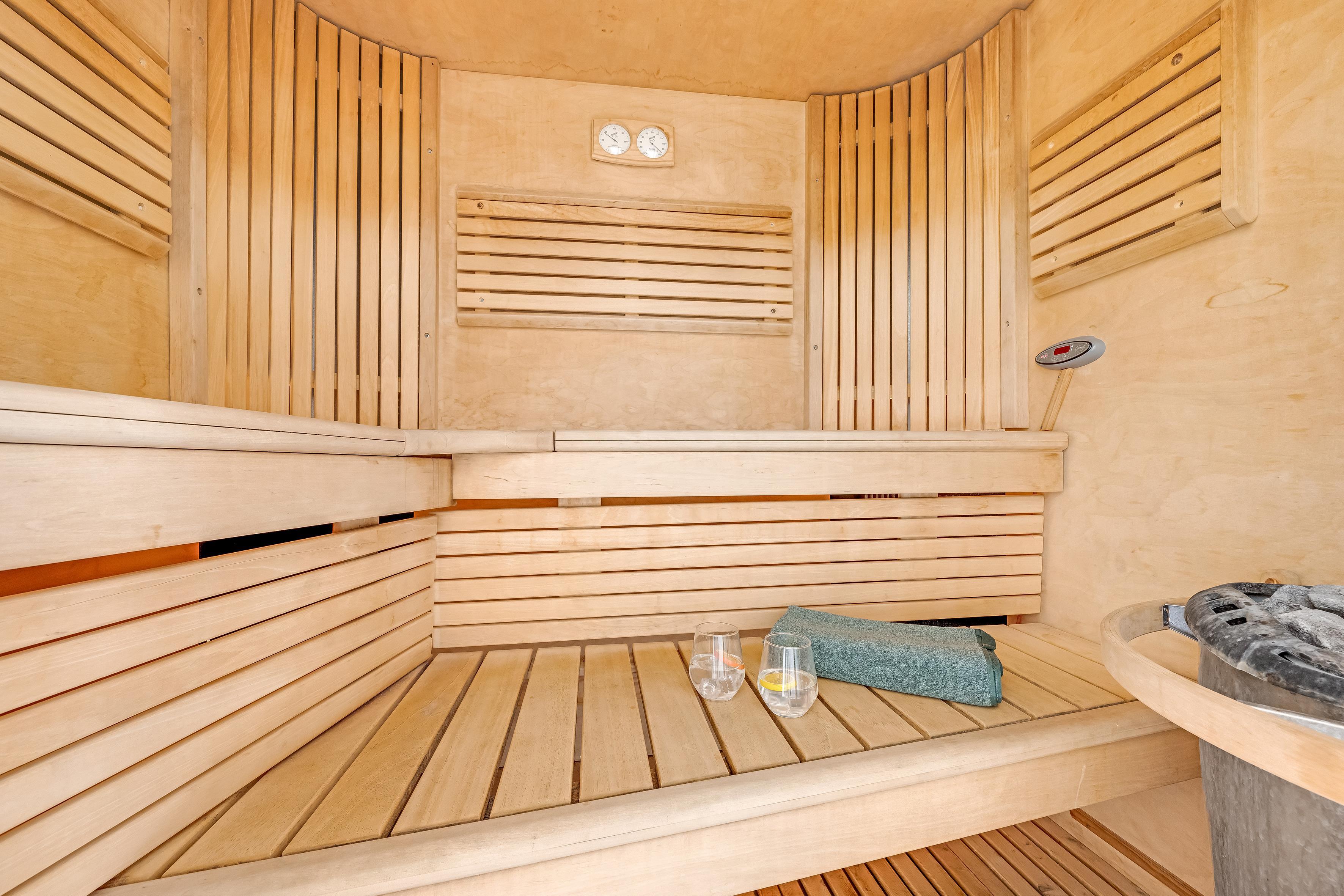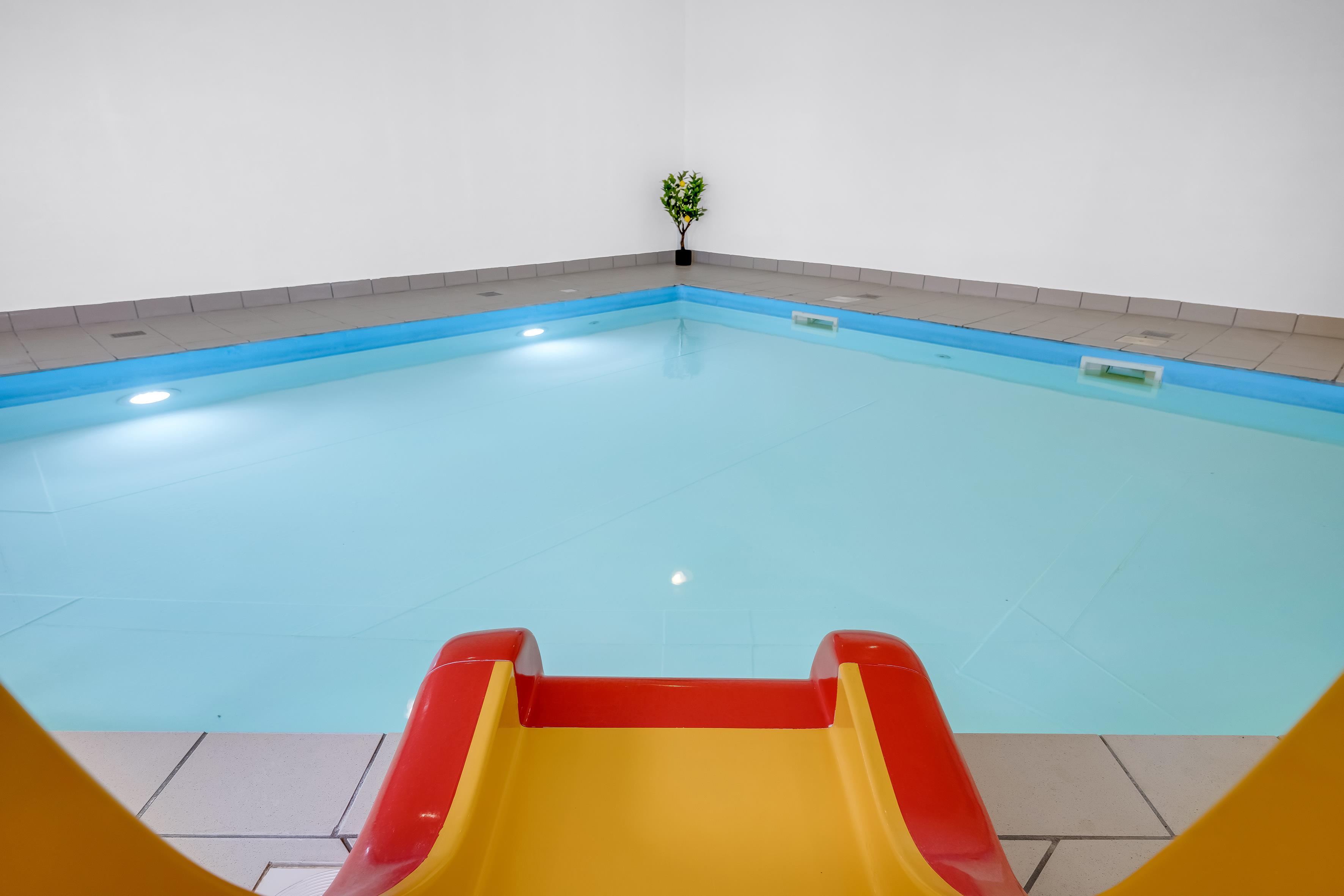 For entertainment, there are a number of fun activities. Here you will find a pool table, table tennis table and table football table that will keep everyone entertained for hours. In addition, there is an indoor sauna where you can relax after a long day of activities. The house also has a large pool area with a 45 square meter swimming pool and a 25 square meter children's pool with a slide, which is heated all year round.