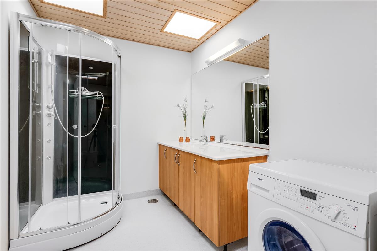 The indoor comfort is ensured by a heat pump that keeps the temperature comfortable all year round. The house is equipped with modern kitchen facilities, including a microwave, oven, ceramic hob, dishwasher, fridge and freezer with a capacity of 100 liters.