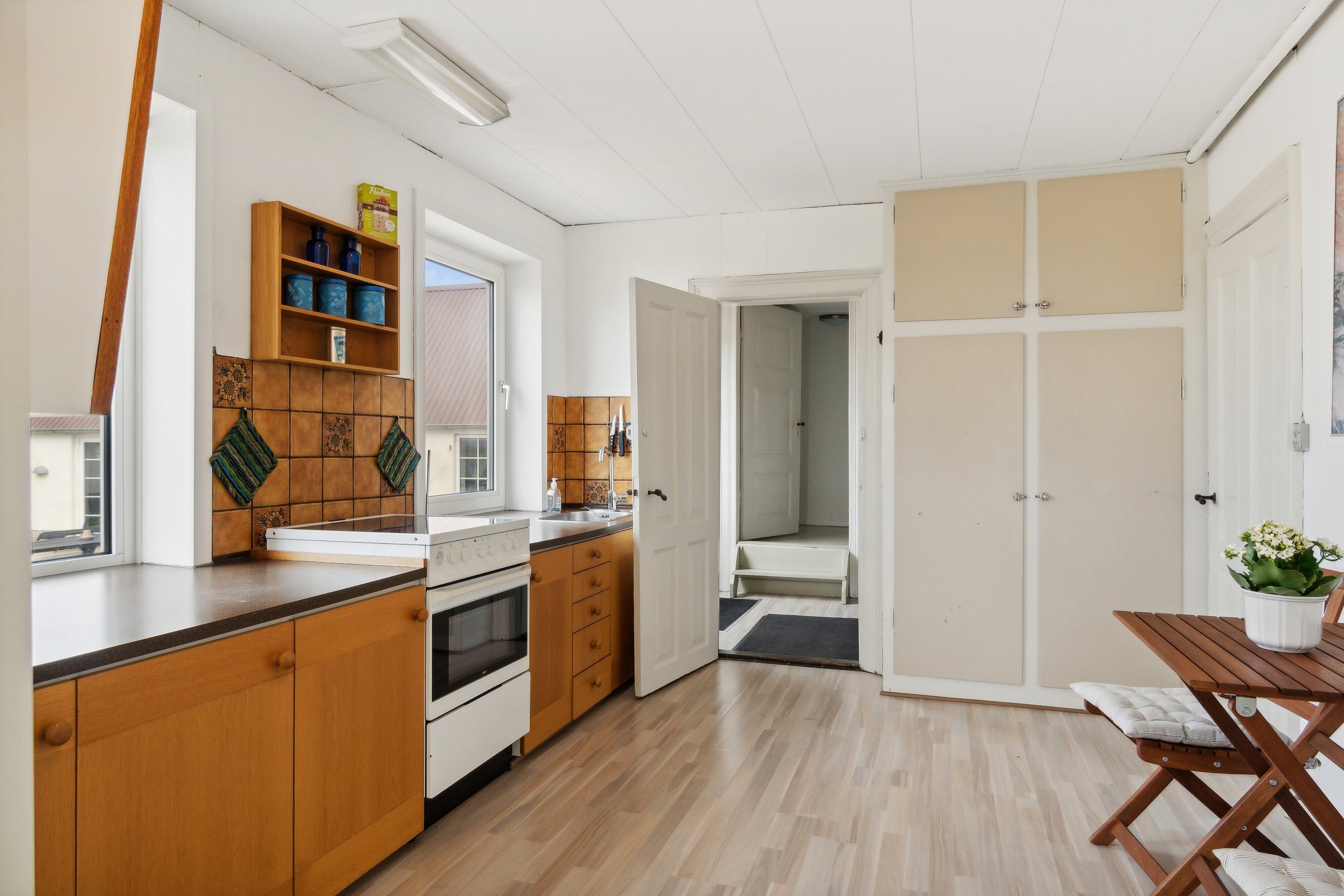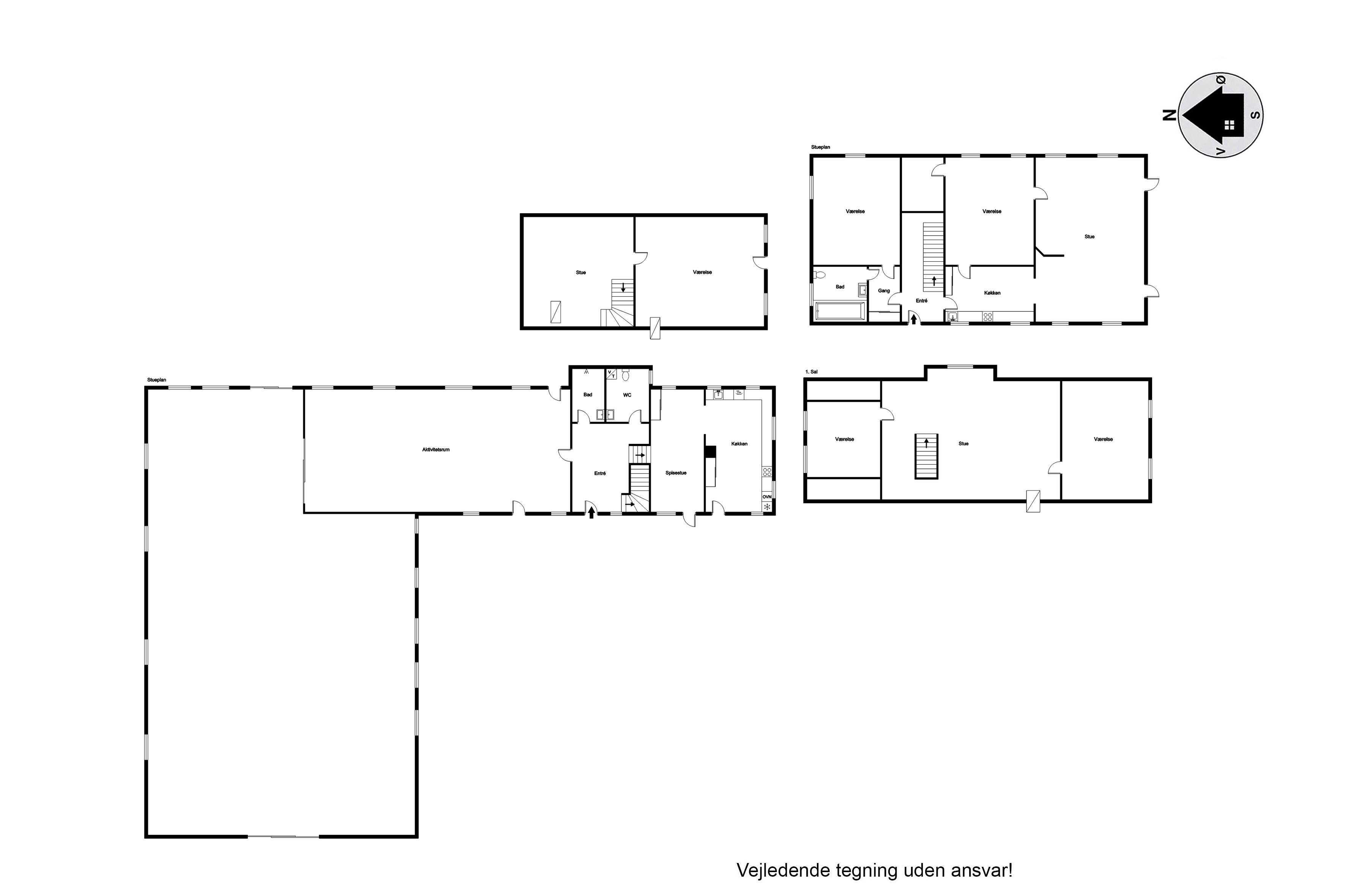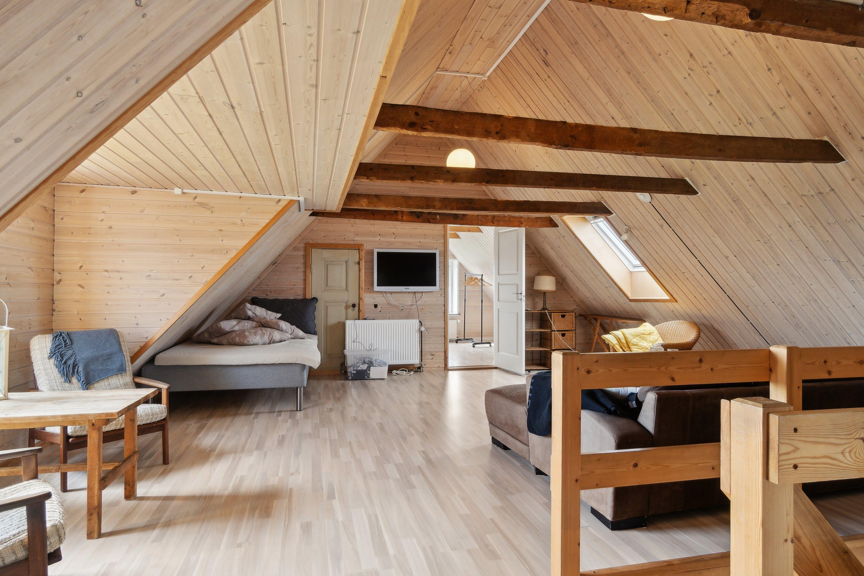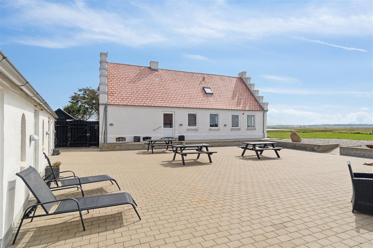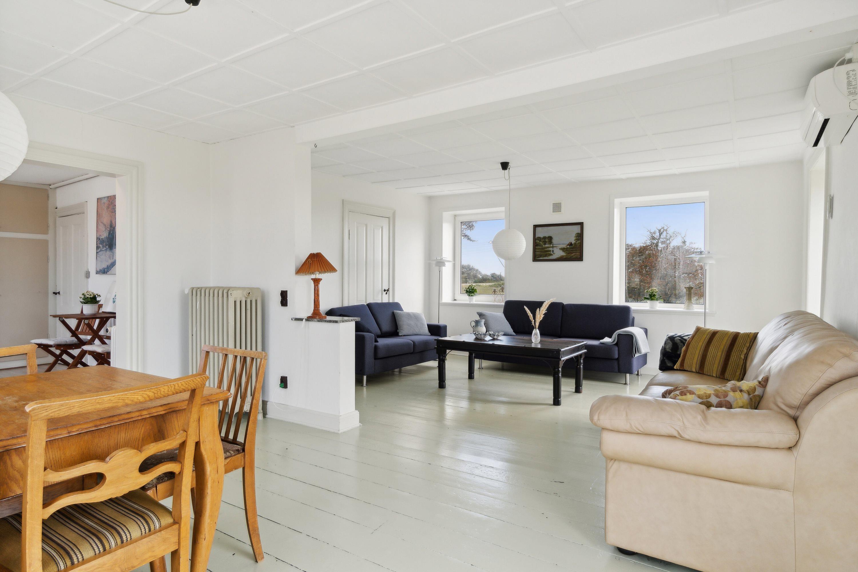 Indoors you will find 6 comfortable bedrooms, including three with double beds, one with a bunk bed, one with two single beds, as well as a family room with two double beds and four bunk beds, ensuring that there is room for everyone. There are two bathrooms, both equipped with a toilet and underfloor heating. There is a shower in one and a bathtub in the other, making it easy for everyone to get the necessary space and comfort. The house is also equipped with a heat pump and a wood-burning stove, so you can stay warm, regardless of the season.
