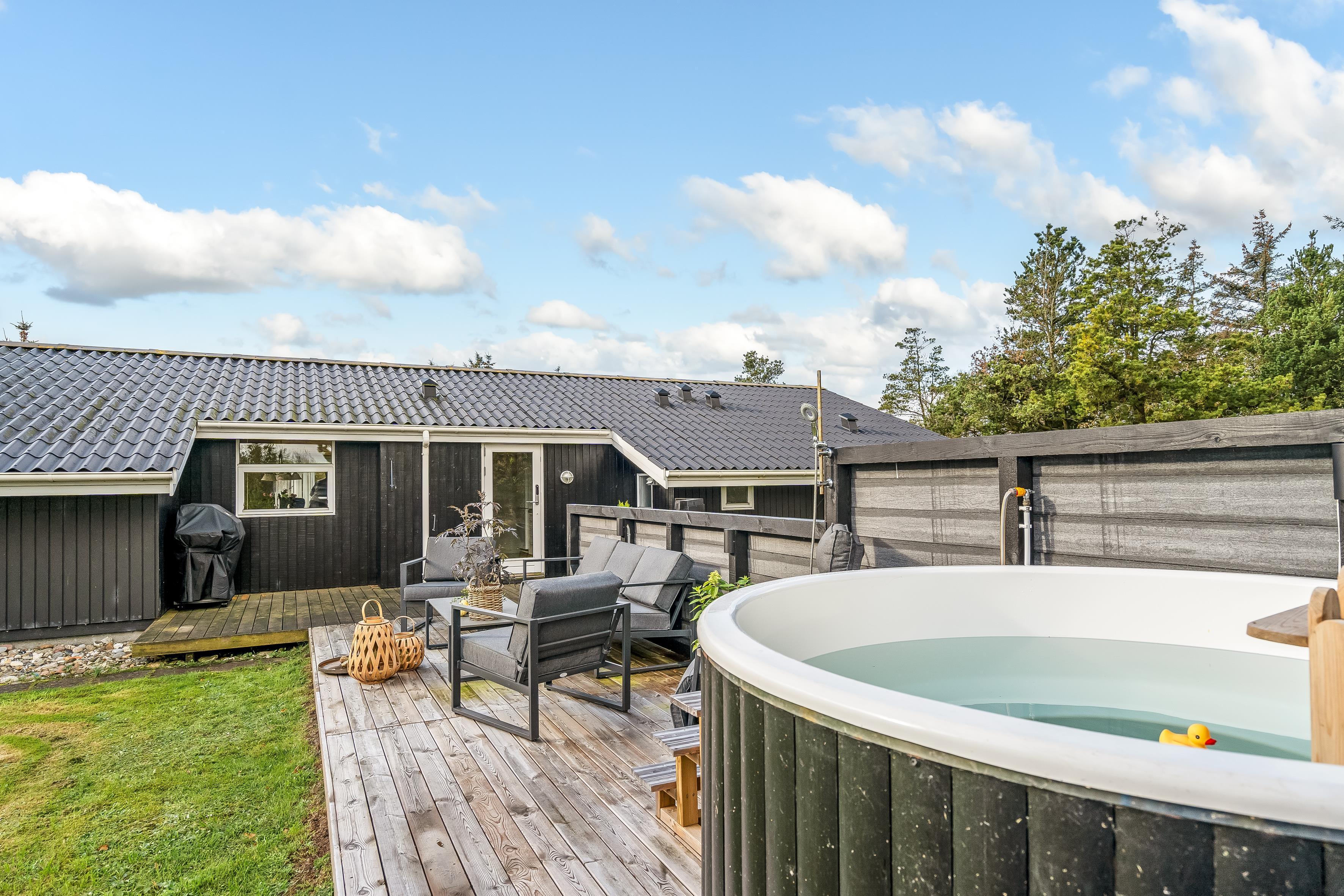 The kitchen is fully equipped with a fridge, induction cooktop, convection oven, microwave, and dishwasher, ensuring you have everything you need to prepare delicious meals. The bathroom is modern and has underfloor heating and a shower, and there is also an extra guest toilet. After a long day of excursions, you can relax in the indoor spa for two people or take a dip in the outdoor wilderness bath, which can accommodate six people.