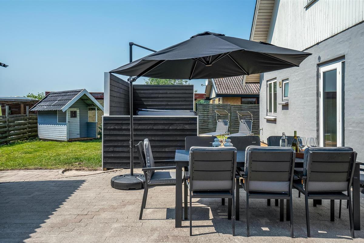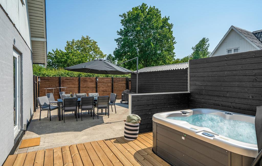Gezellig vakantiehuis nabij Odense Fjord met hot tub, activiteitenruimte en tuin voor een ontspannen verblijf.