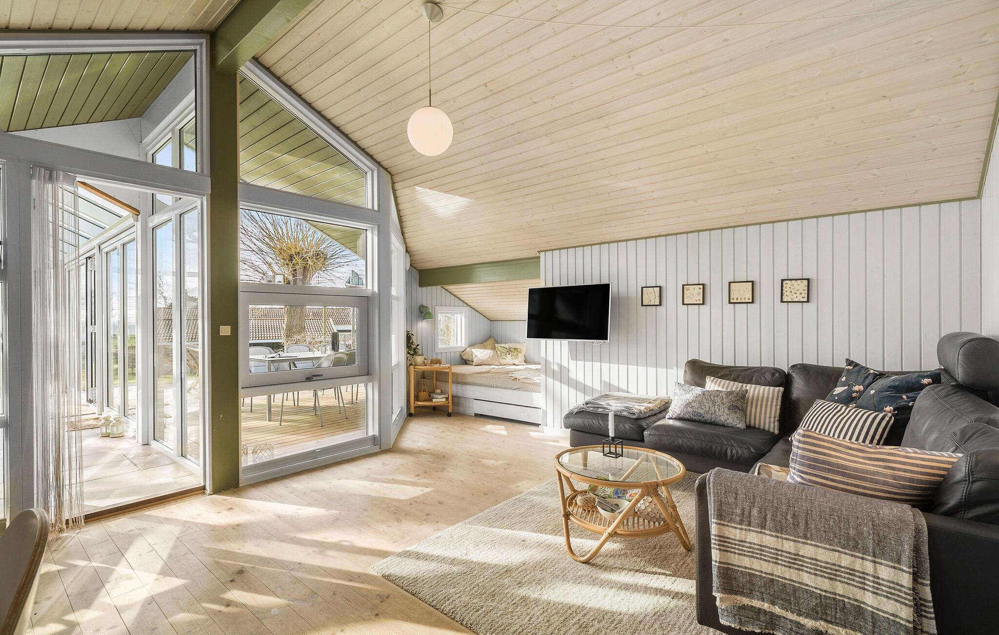 Op slechts een paar meter van het Odense Fjord, waar vissen bijzonder aantrekkelijk is, heet dit uitnodigende vakantiehuis met een grote serre je welkom. Geniet van het goed uitgeruste huis en voel je hier meteen thuis. Ontdek de kamers, warm jezelf op voor de houtkachel of maak van de serre je favoriete kamer, van waaruit je over de zee kunt uitkijken en de tuin in kunt stappen. Voel de zonnestralen op je huid en geniet van de idyllische omgeving. Daag jezelf uit voor spelletjes op het gazon en plan je volgende activiteiten. Als je met een groot gezin of een familie van vrienden reist, kun je ook het naburige huis boeken, afhankelijk van de beschikbaarheid.