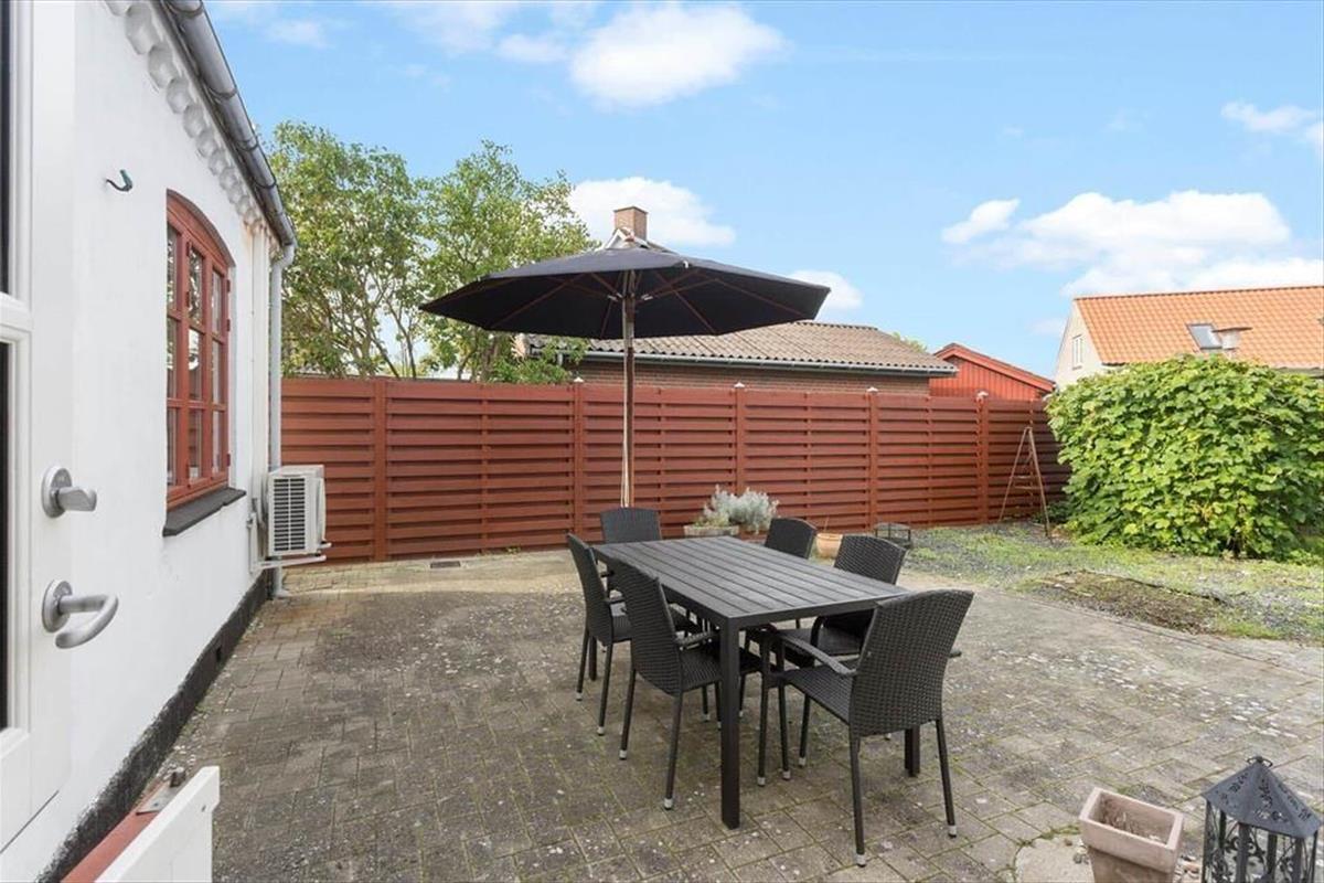 Das Ferienhaus verfügt über einen schönen, geschlossenen Hof mit einer großen Terrassenfläche, die zu Entspannung und gemütlichen Mahlzeiten unter freiem Himmel einlädt. Hier können Sie in aller Ruhe bei einer Tasse Kaffee sitzen, während die Kinder sicher im geschlossenen Garten spielen. Auf der Terrasse können Sie grillen und lange Sommerabende gemeinsam genießen. Wenn die Sonne scheint, ist es herrlich, draußen zu entspannen und das Leben in Ihrem eigenen Tempo zu genießen, während die Vögel um Sie herum zwitschern.